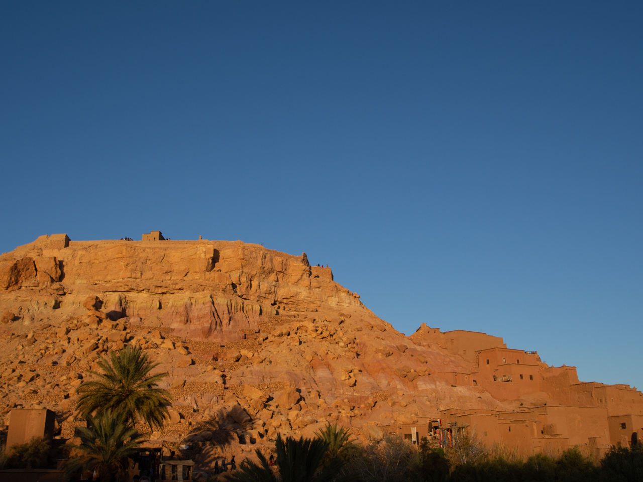 Encore une belle journée sur les routes du Maroc, qui a commencé dans les dunes du désert de sable et qui fini dans une pension sur la route de l’Océan, après la visite d’Ait Benhaddou, ça a été intense.