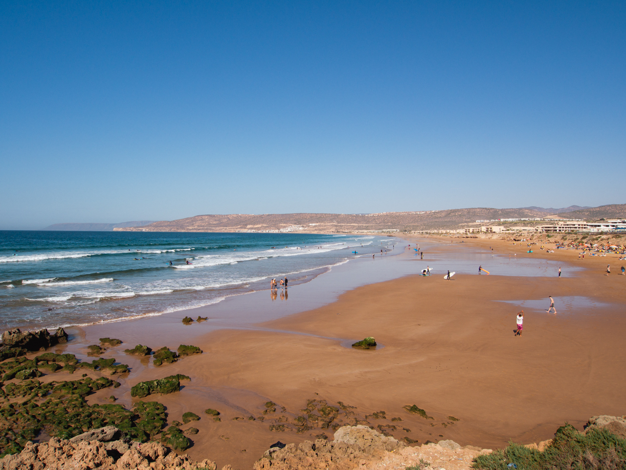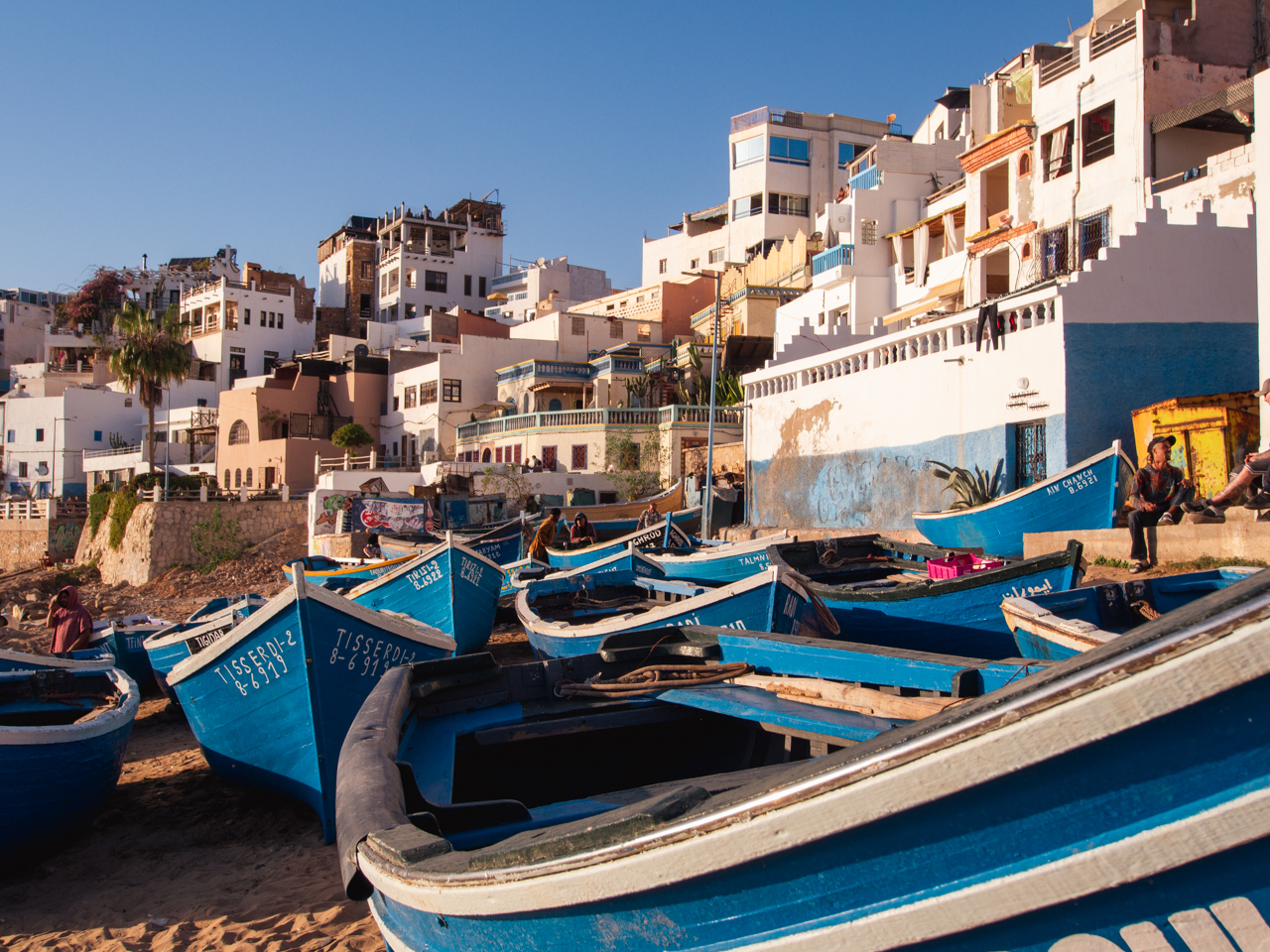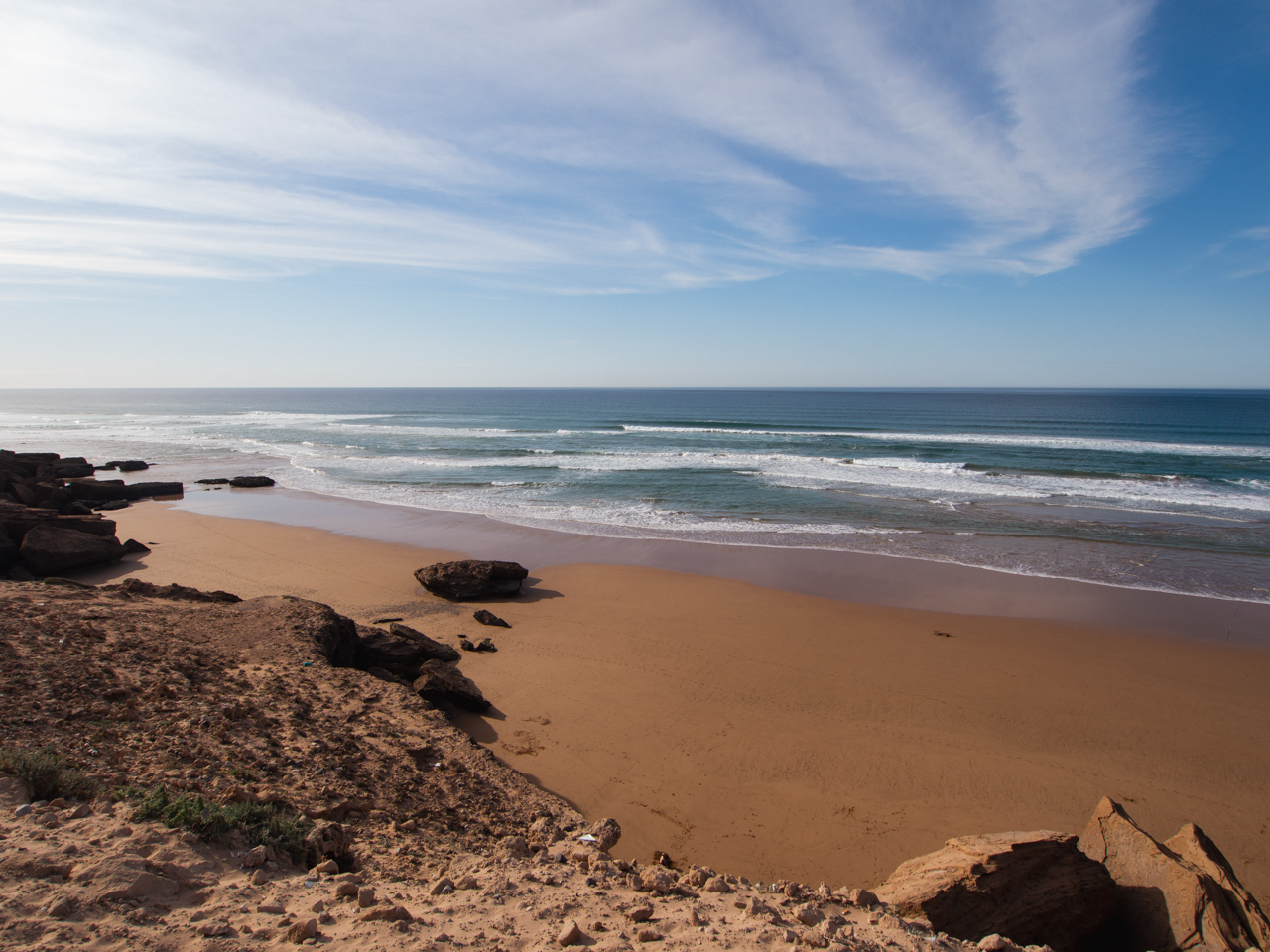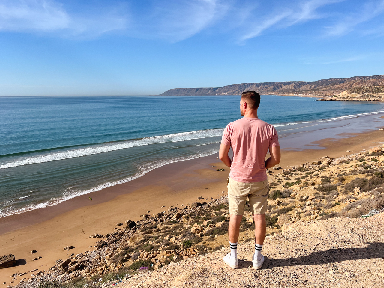 Nous finissons notre séjour marocain en découvrant la côte océanique au Nord d’Agadir. Quel contraste avec les endroits que nous avons visité. Cette région est tournée vers l’océan, avec de petits villages de pécheurs et d’immenses plages presque sauvages appréciées des surfeurs. On y trouve même un désert de dune qui vient se jeter dans l’immensité bleue. Une autre facette du Maroc, plus relax et douce, qui mérite quelques jours.
