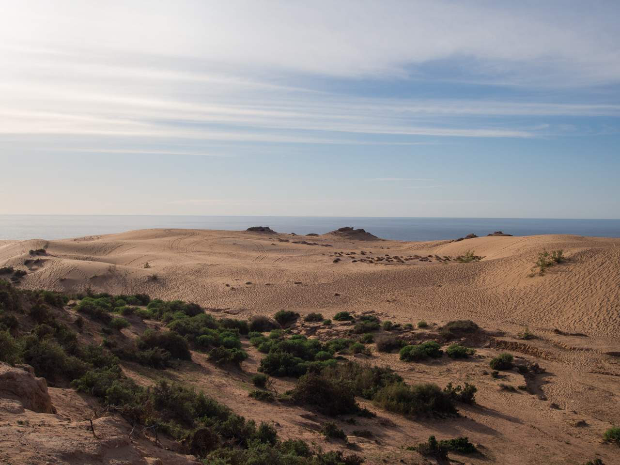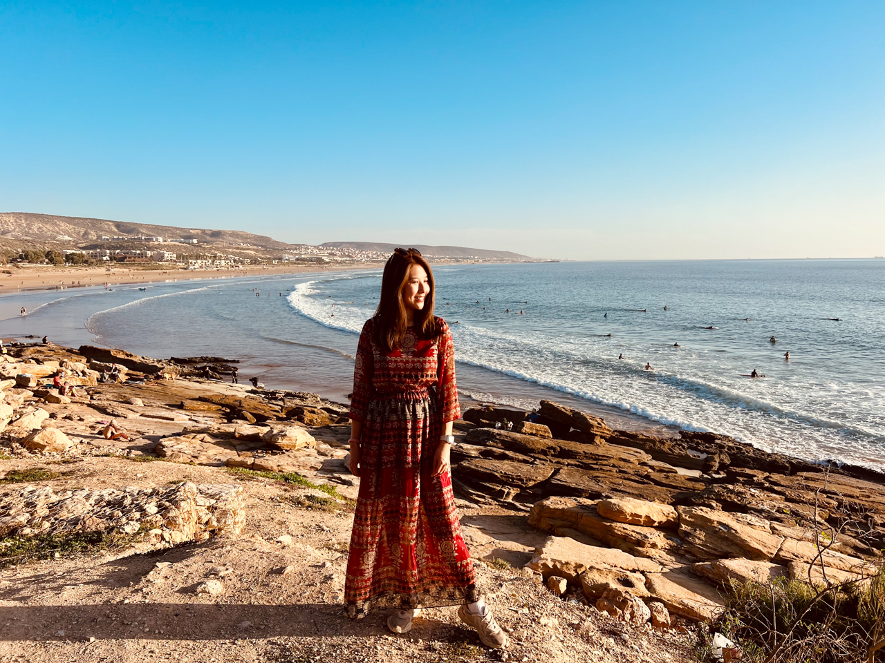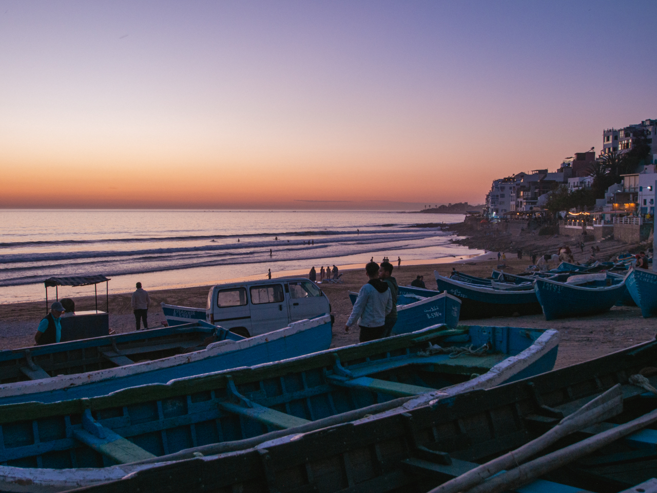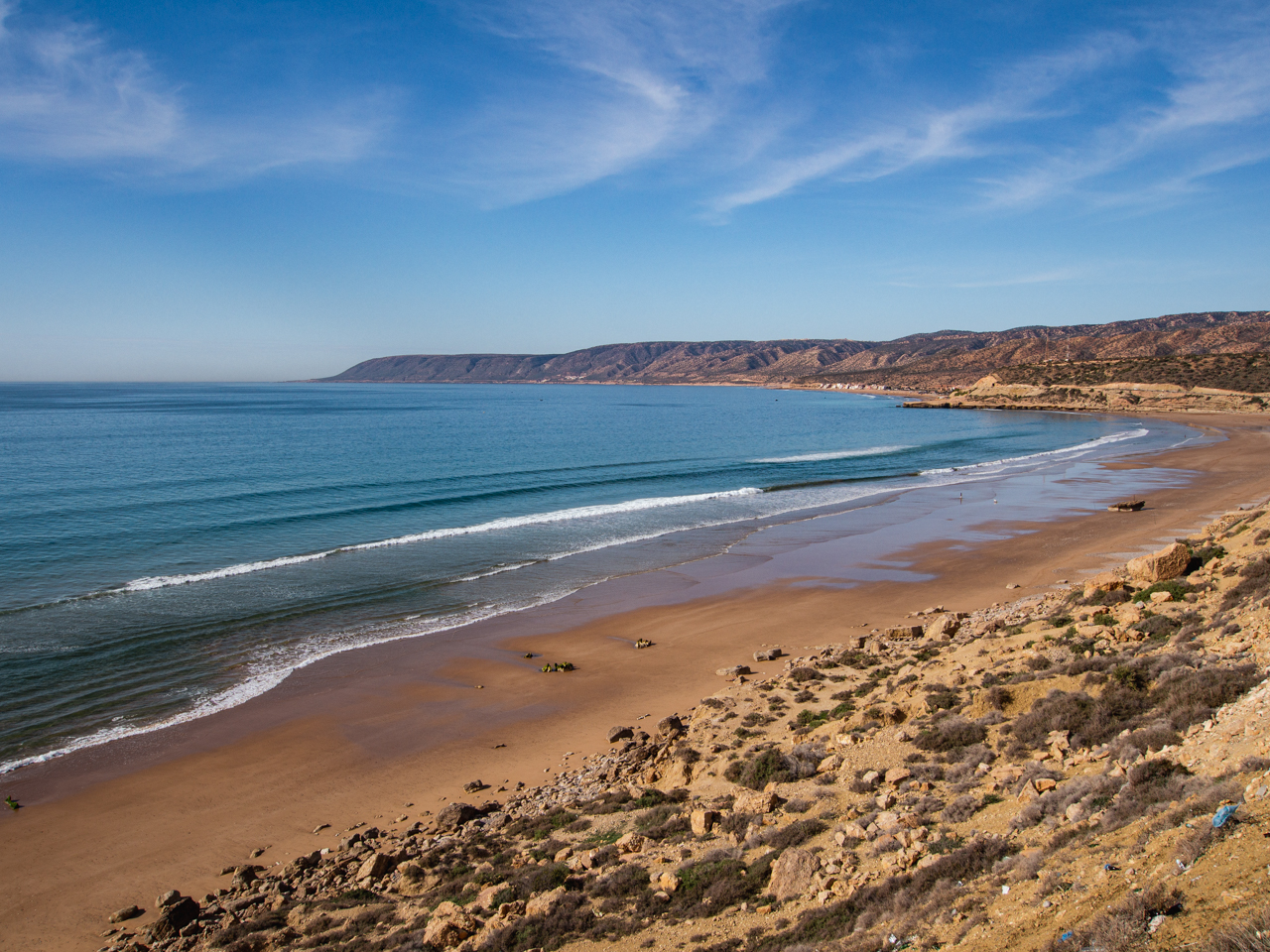 Nous finissons notre séjour marocain en découvrant la côte océanique au Nord d’Agadir. Quel contraste avec les endroits que nous avons visité. Cette région est tournée vers l’océan, avec de petits villages de pécheurs et d’immenses plages presque sauvages appréciées des surfeurs. On y trouve même un désert de dune qui vient se jeter dans l’immensité bleue. Une autre facette du Maroc, plus relax et douce, qui mérite quelques jours.