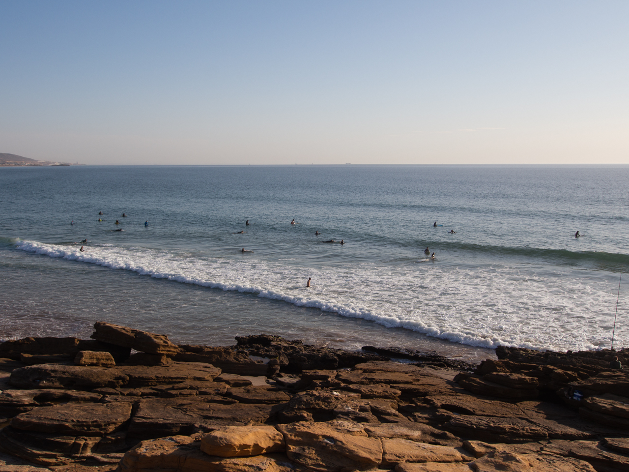Après avoir fait le check-in de la chambre, on part marcher sur la plage. Il fait 26°C, on est fin Décembre, on est pas mal du tout. La plage est immense, l’eau est froide mais les surfeurs en combinaison sont nombreux à braver les vagues. Ils sont courageux. De gros rochers se dévoilent à marée basse, on sent bien les embruns, l’air n’est plus sec comme toute la semaine, ça aussi ça change.