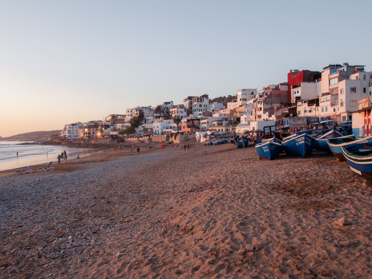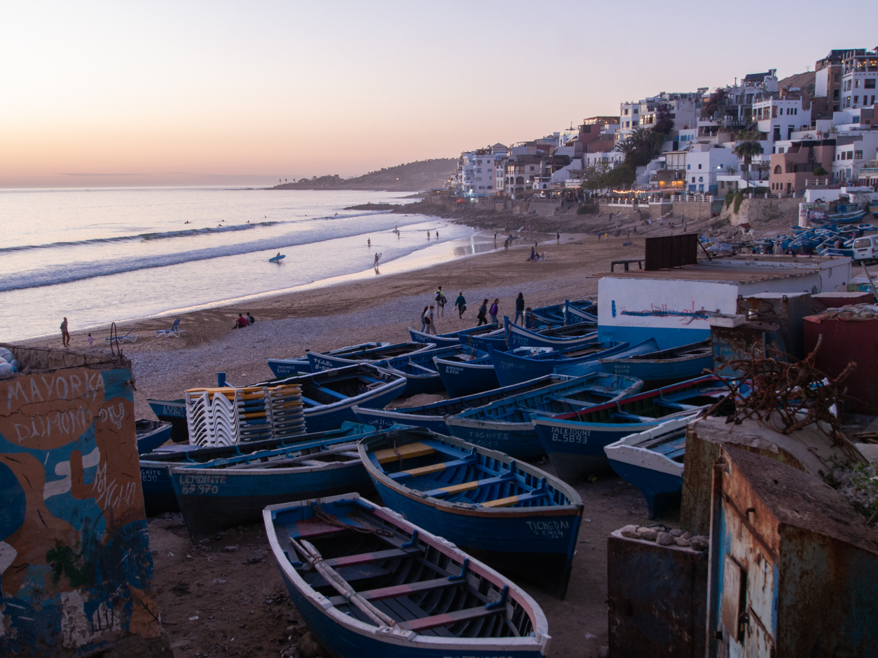 On rejoint le centre village de Taghazout, qui est à l’origine un village de pêcheurs. Malgré l’afflux de touristes et certaines critiques négatives que j’avais lu ici ou là, je trouve que l’alliance entrée pêcheurs et surfeurs fonctionne bien.