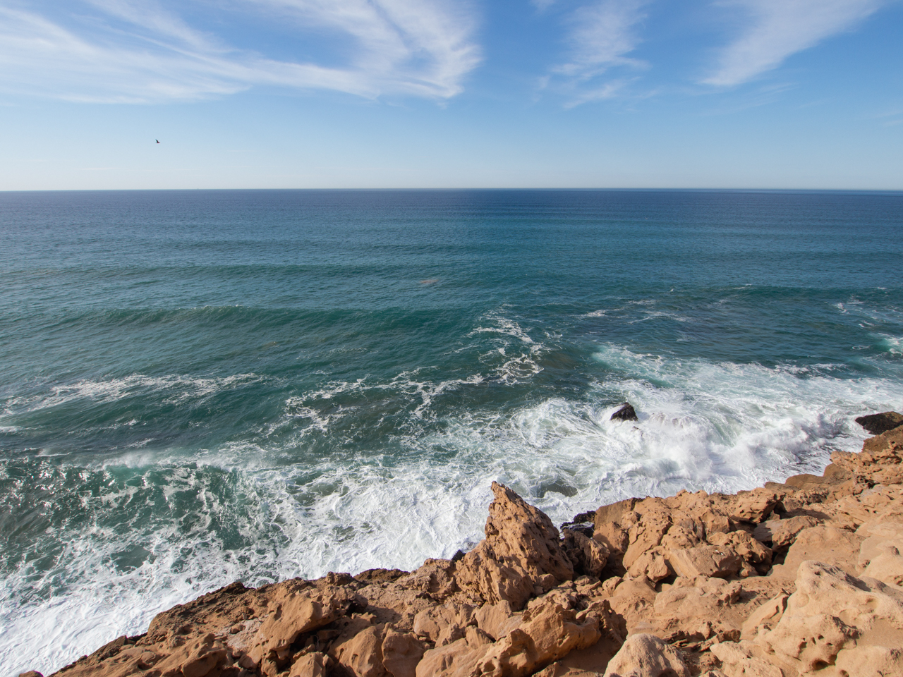 On alterne les immenses plages et les falaises où les vagues viennent s’écraser avec fracas où l’eau est magnifiquement bleue.