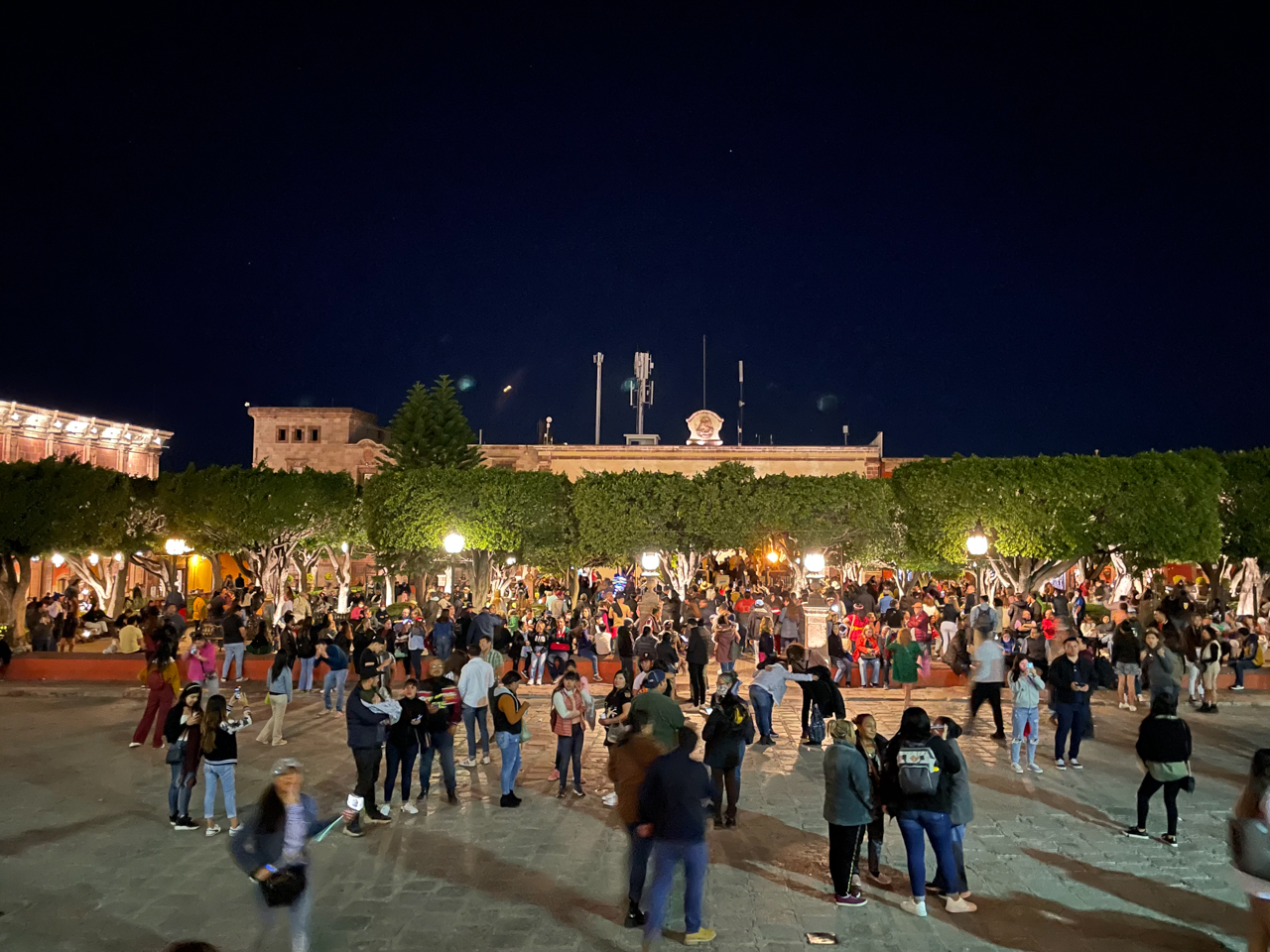 Les Mexicains sont ils infatigables ? En tout cas, c’est comme cela tous les jours, j’ai l’impression, à la nuit tombée, c’est le moment où les festivités commencent, il y a un monde fou sur la place principale, de la musique à fond et les gens qui s’amusent.