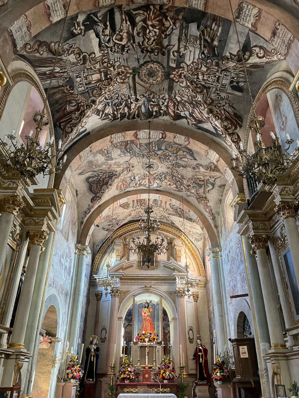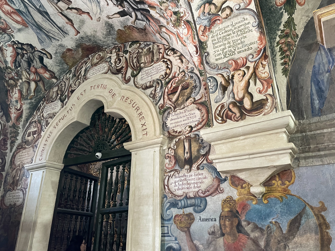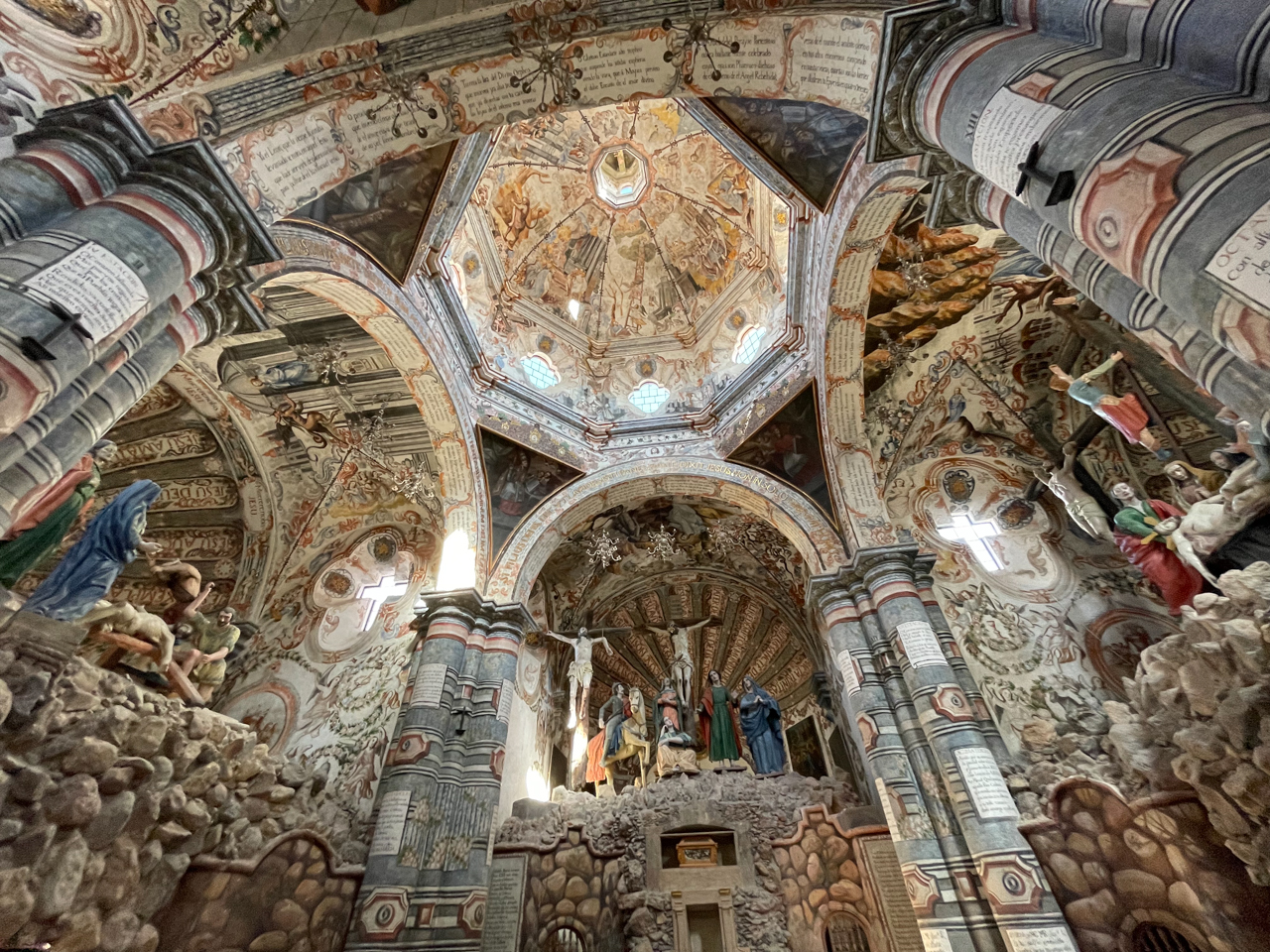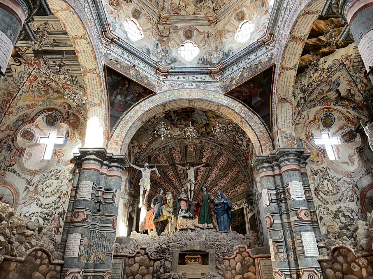 En fait, ce sanctuaire est appelée surnommée la chapelle Sixtine du Mexique pour les magnifiques fresques peintes sur ses murs intérieurs. C’est vraiment extraordinaire.