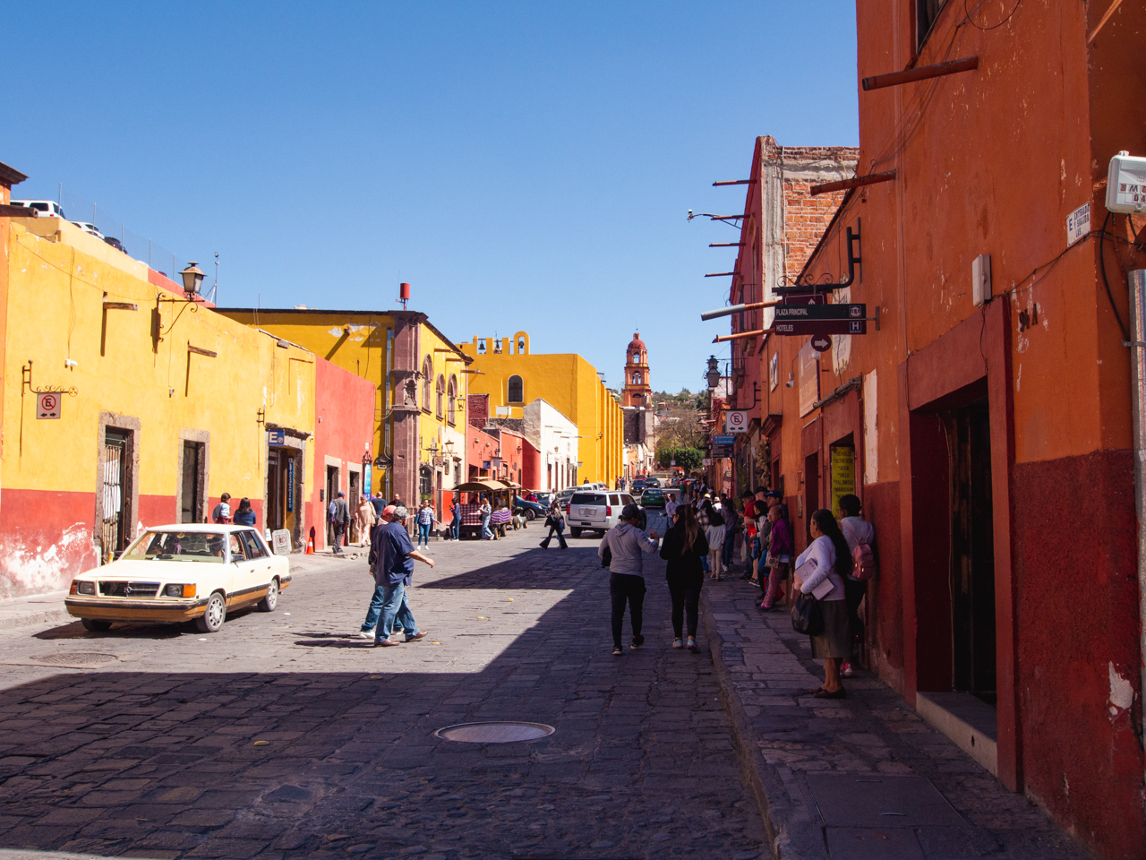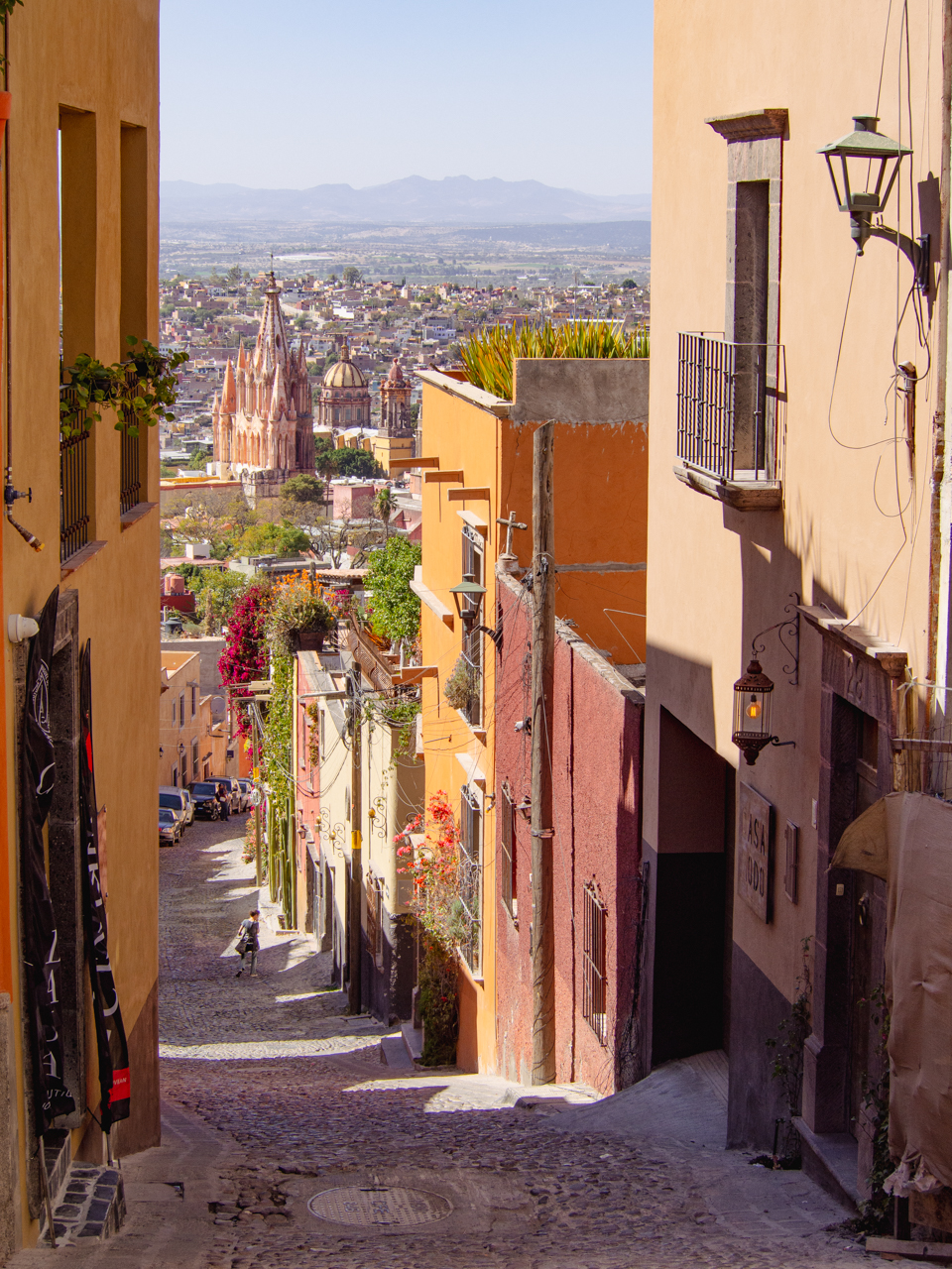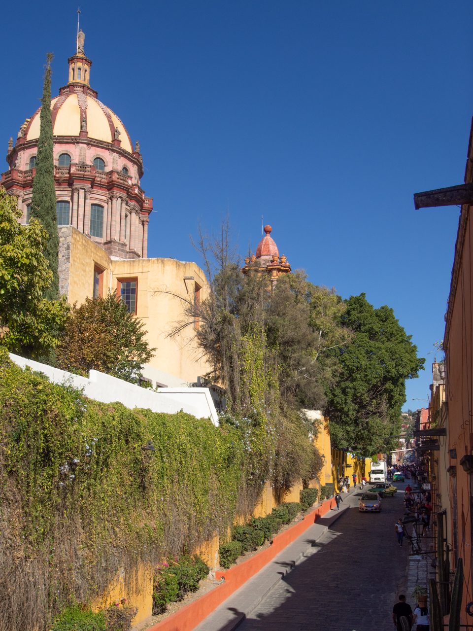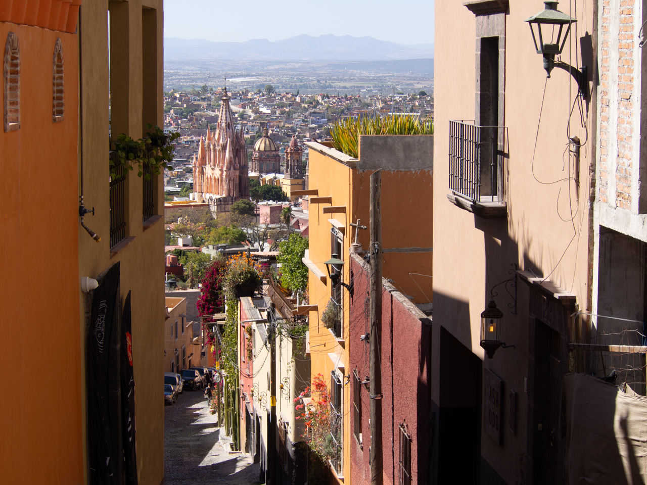 Je laisse la voiture se reposer pendant mon séjour à San Miguel et je continue à pieds. La ville recèle de nombreuses ruelles toutes plus belles les unes que les autres. C’est vraiment superbe, une explosion de couleurs. La ville qui a une histoire de plus de 400 ans a été un centré économique très important de Nouvelle Espagne, sur la route des mines d’argent.