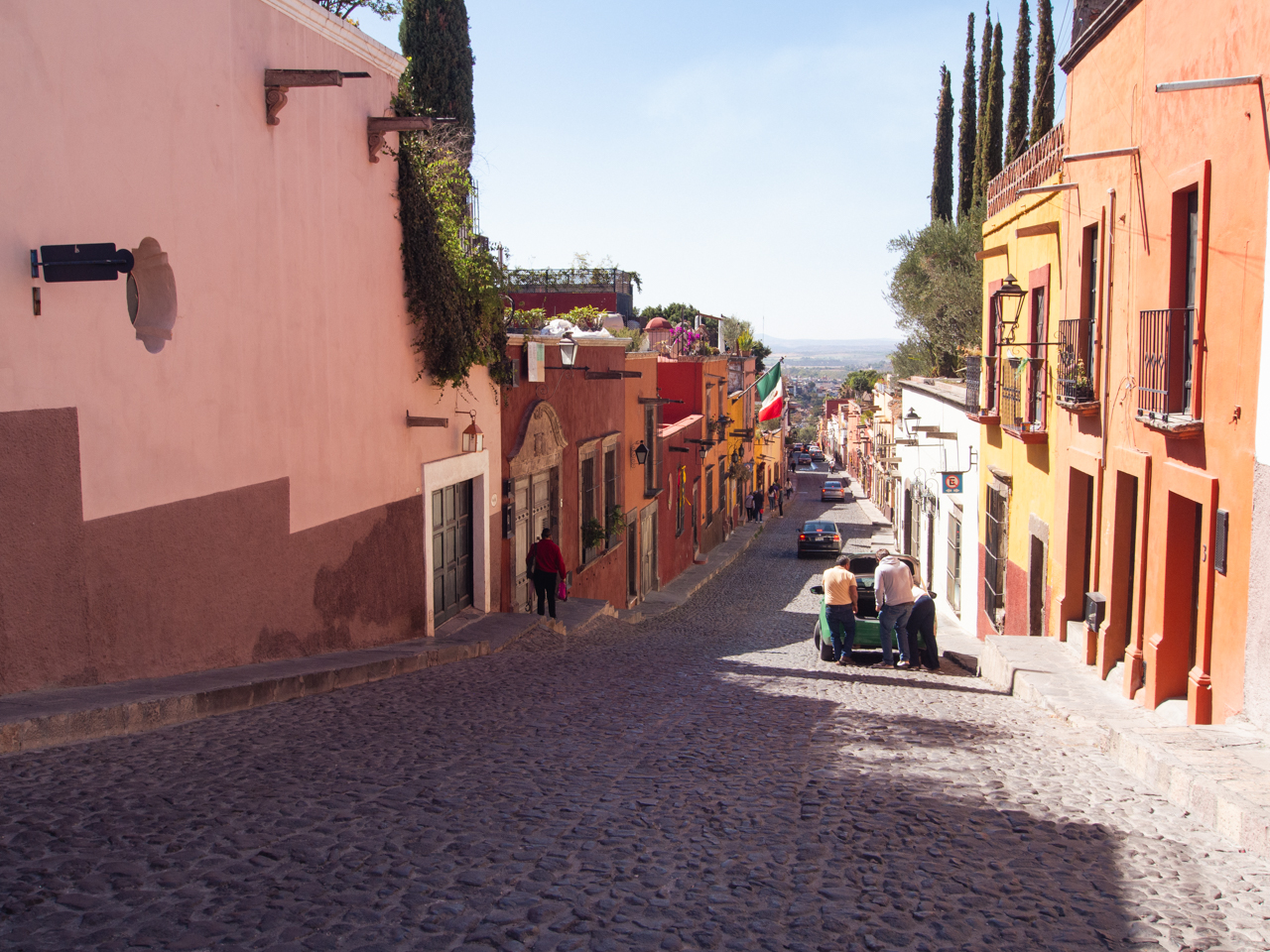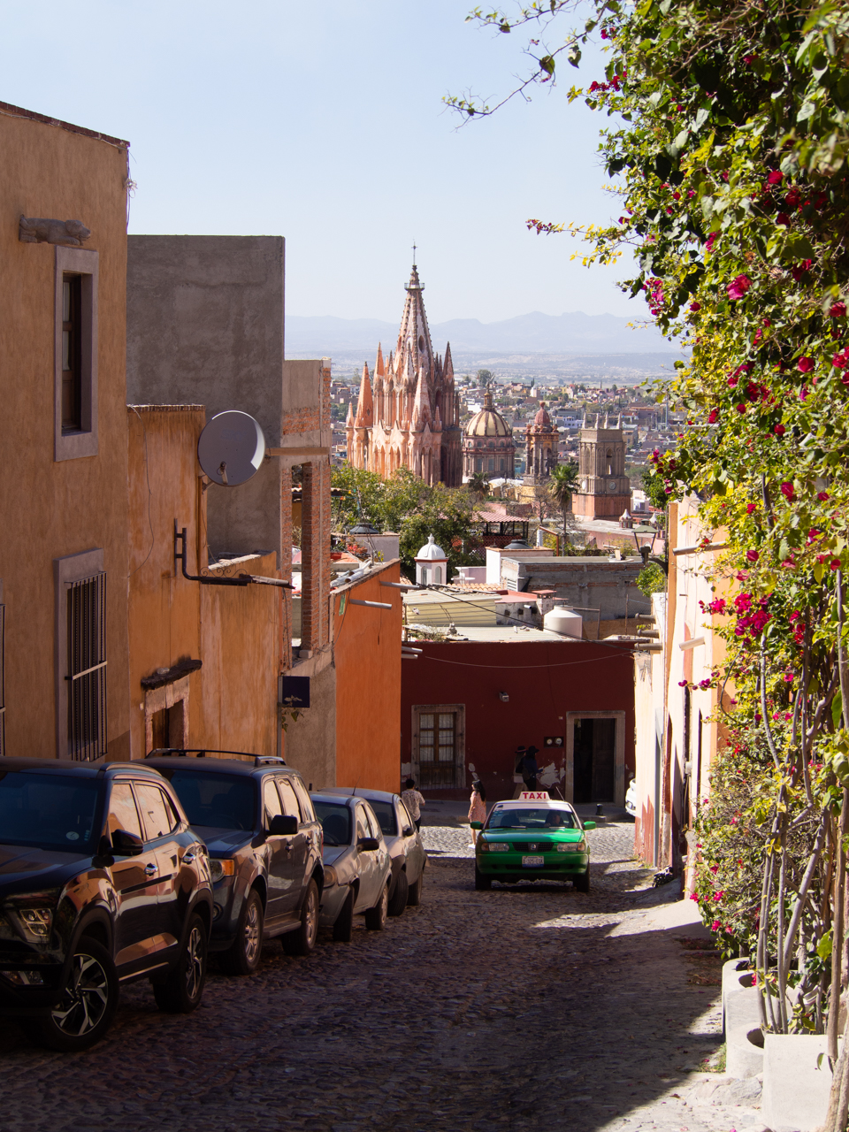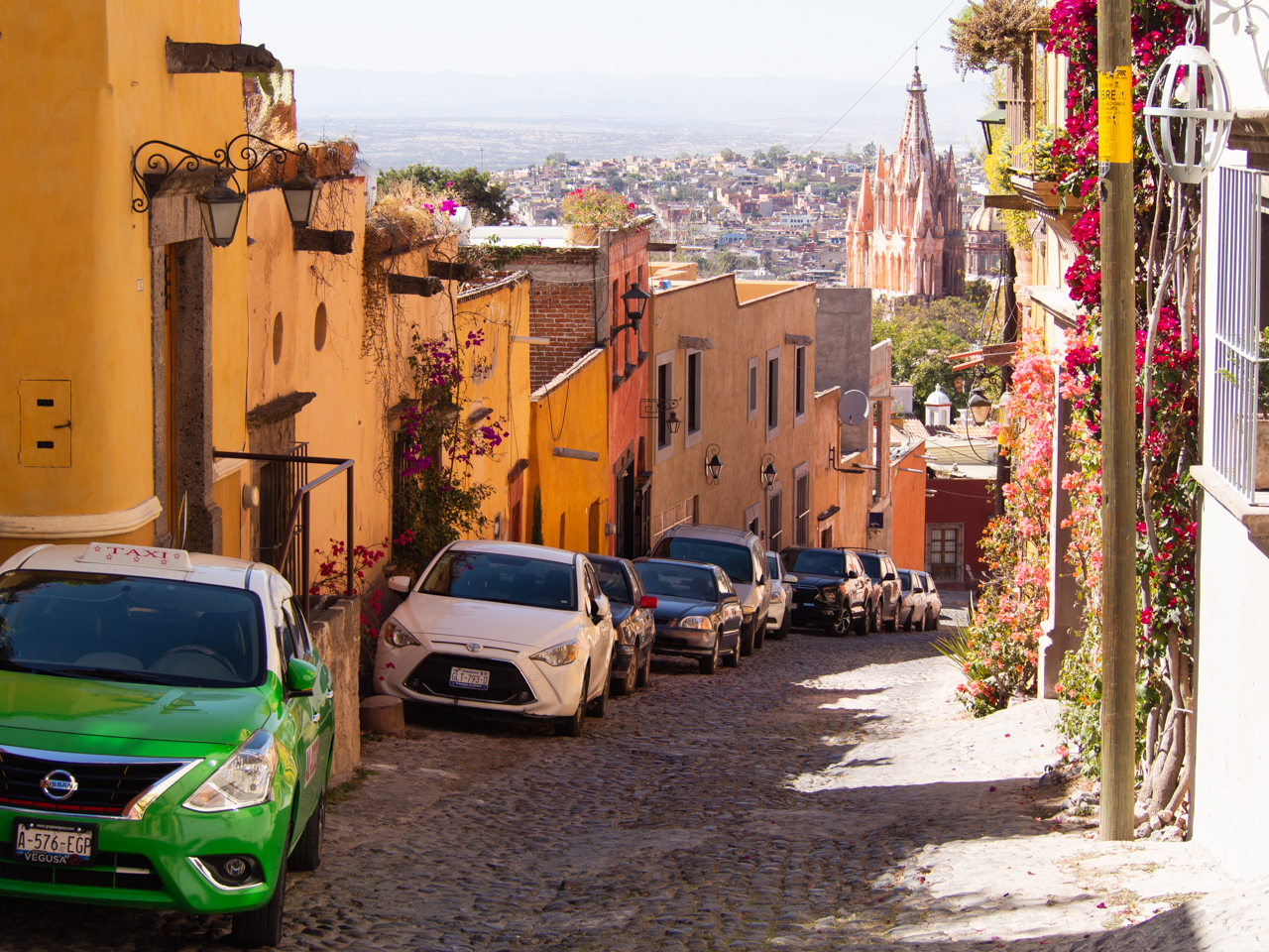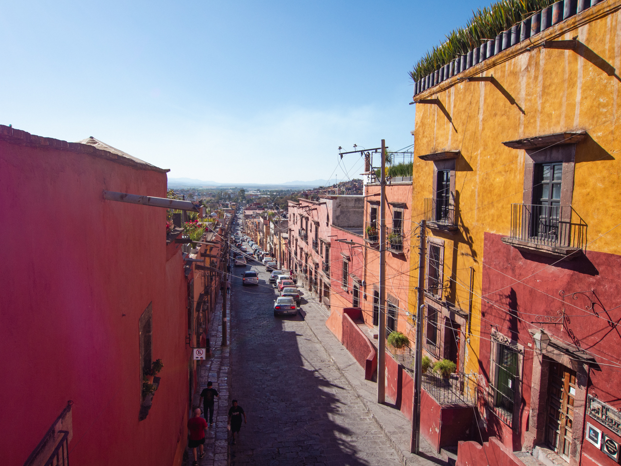 Je laisse la voiture se reposer pendant mon séjour à San Miguel et je continue à pieds. La ville recèle de nombreuses ruelles toutes plus belles les unes que les autres. C’est vraiment superbe, une explosion de couleurs. La ville qui a une histoire de plus de 400 ans a été un centré économique très important de Nouvelle Espagne, sur la route des mines d’argent.