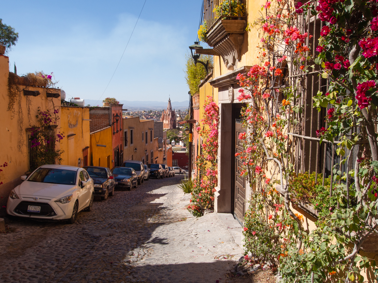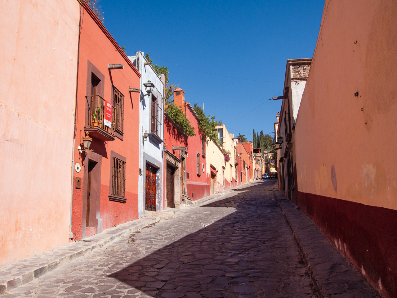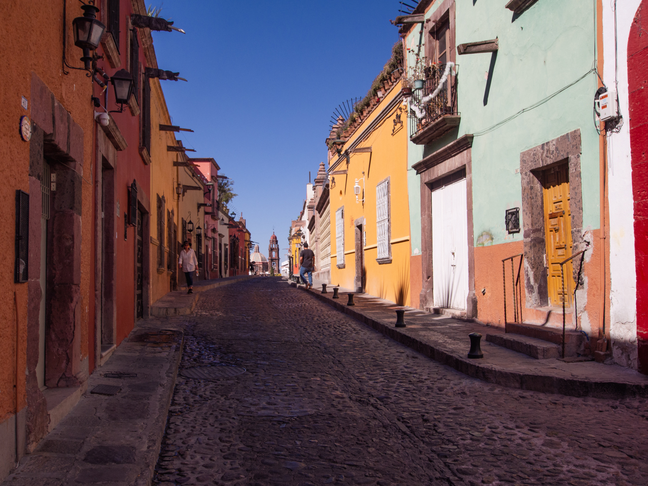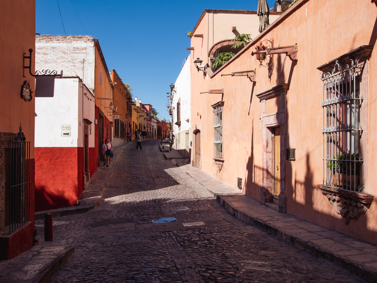 Je laisse la voiture se reposer pendant mon séjour à San Miguel et je continue à pieds. La ville recèle de nombreuses ruelles toutes plus belles les unes que les autres. C’est vraiment superbe, une explosion de couleurs. La ville qui a une histoire de plus de 400 ans a été un centré économique très important de Nouvelle Espagne, sur la route des mines d’argent.