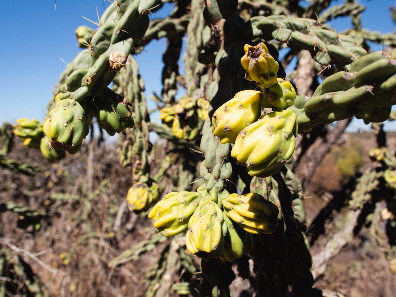 On découvre de nombreuses espèces de cactus le long du chemin.