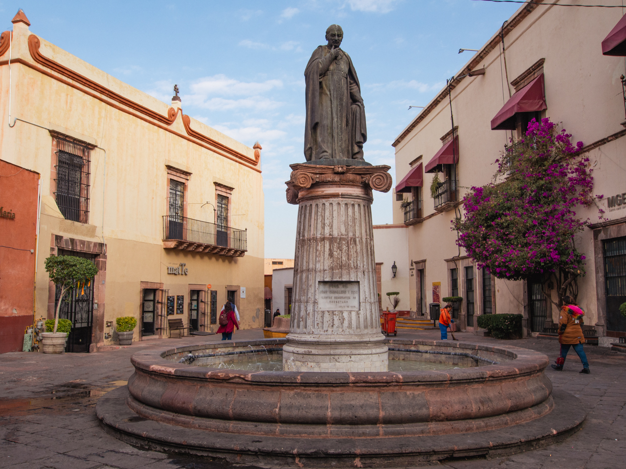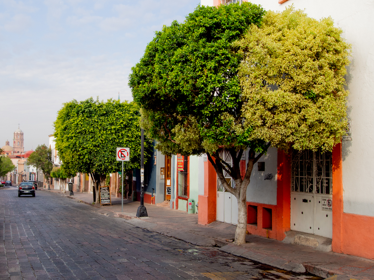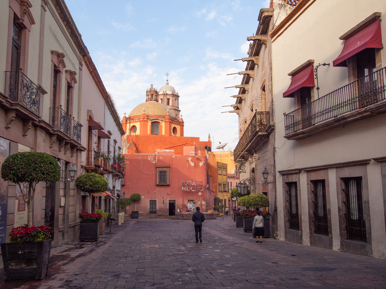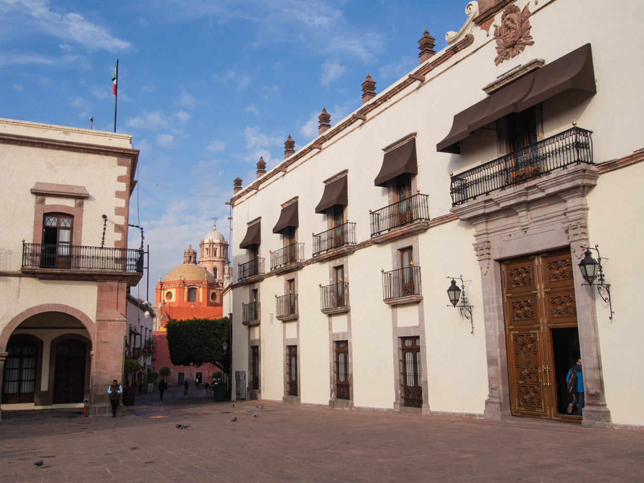 La ville de Queretaro est en fait divisée en deux parties, l’ancienne ville pré hispanique dont le plan de rue est plus bigarrée, puis la ville coloniale au plan en damier caractéristique du Nouveau Monde. C’est cette double origine et le développement culturel de la ville grâce à l’exploitation des mines d’argent qui ont incité l’UNESCO à ajouter Santiago de Querétaro à la liste du patrimoine mondial de l’humanité.