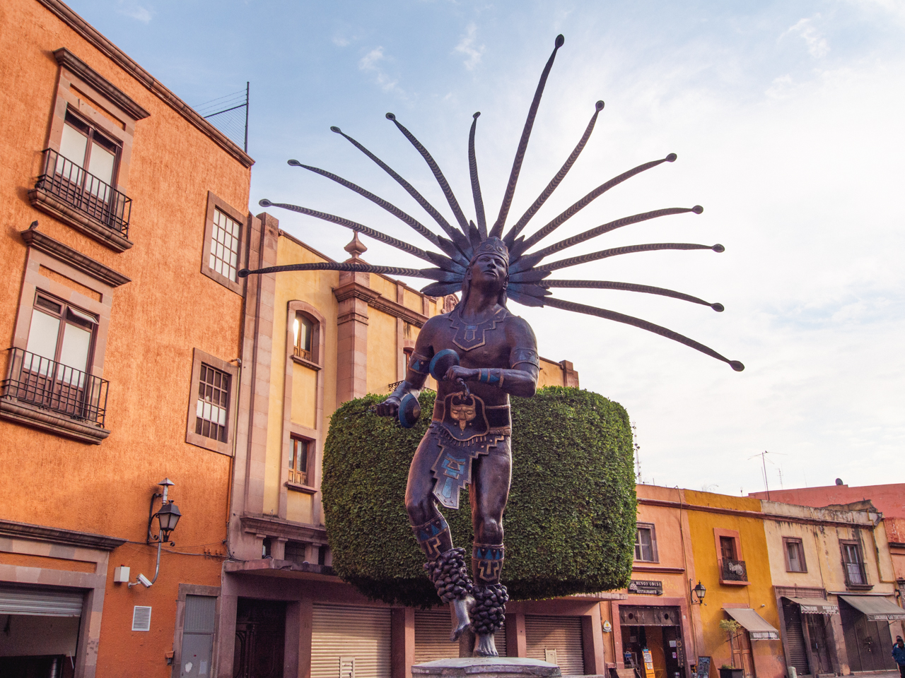 Il y a plusieurs statues disséminées dans la ville, elle raconte cette double origine de la ville entre culture méso-américaine et colonialisme hispanique. Cette statue raconte une histoire troublante, le 25 Juillet 1531, les espagnols alliés aux Otomi combattaient contre les Chichimecas, ces derniers étaient en train de gagner lorsqu’une éclipse solaire les interrompaient. Les Espagnols profitèrent de ce phénomène pour se présenter comme des représentants de Dieu ce qui a réussi à convaincre leurs opposants qui se sont convertis.