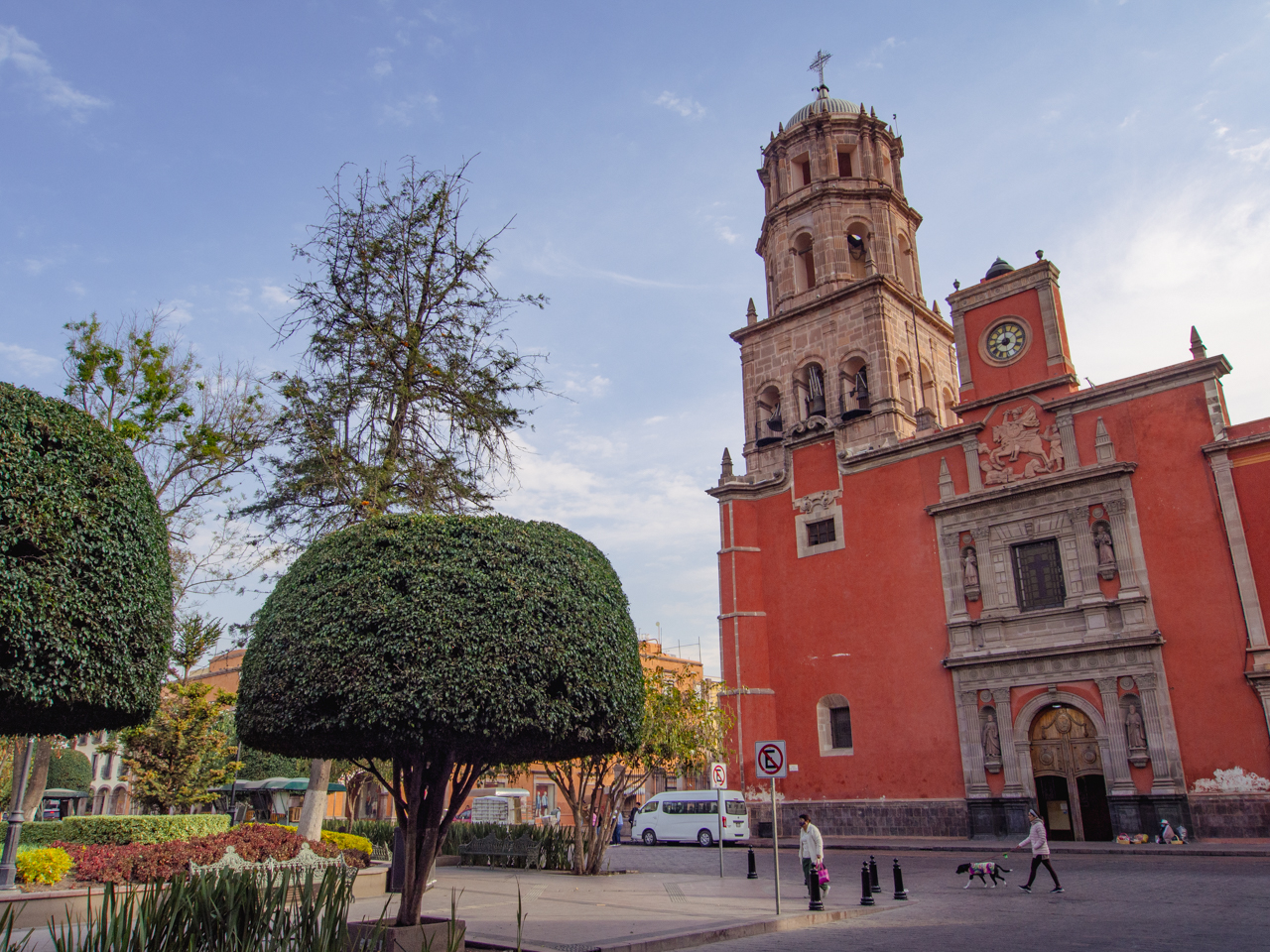 Le Templo de San Francisco est une autre très grande église de la ville. Sa façade est d’un style baroque rouge ocre surmonté par un imposant clocher en pierre. Je n’ai pas pu aller au musée régional de Queretaro qui se situe juste à côté mais que je recommande car il y a une superbe cour typique à découvrir au milieu.