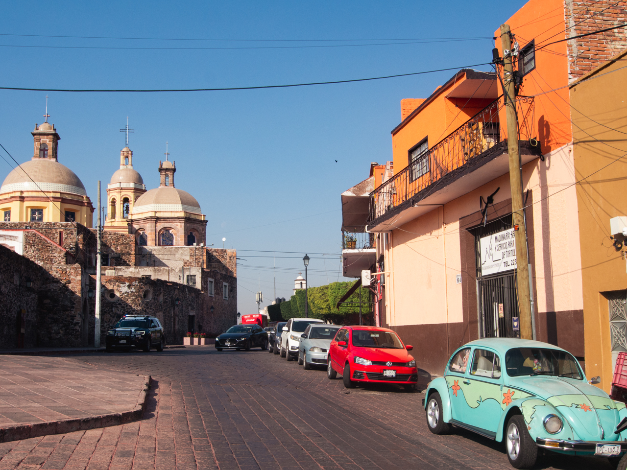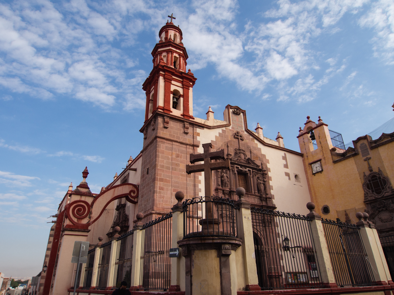 Il y a aussi de grands édifices religieux à Queretaro, le Templo de la cruz construite au XVe siècle domine la ville depuis la colline.