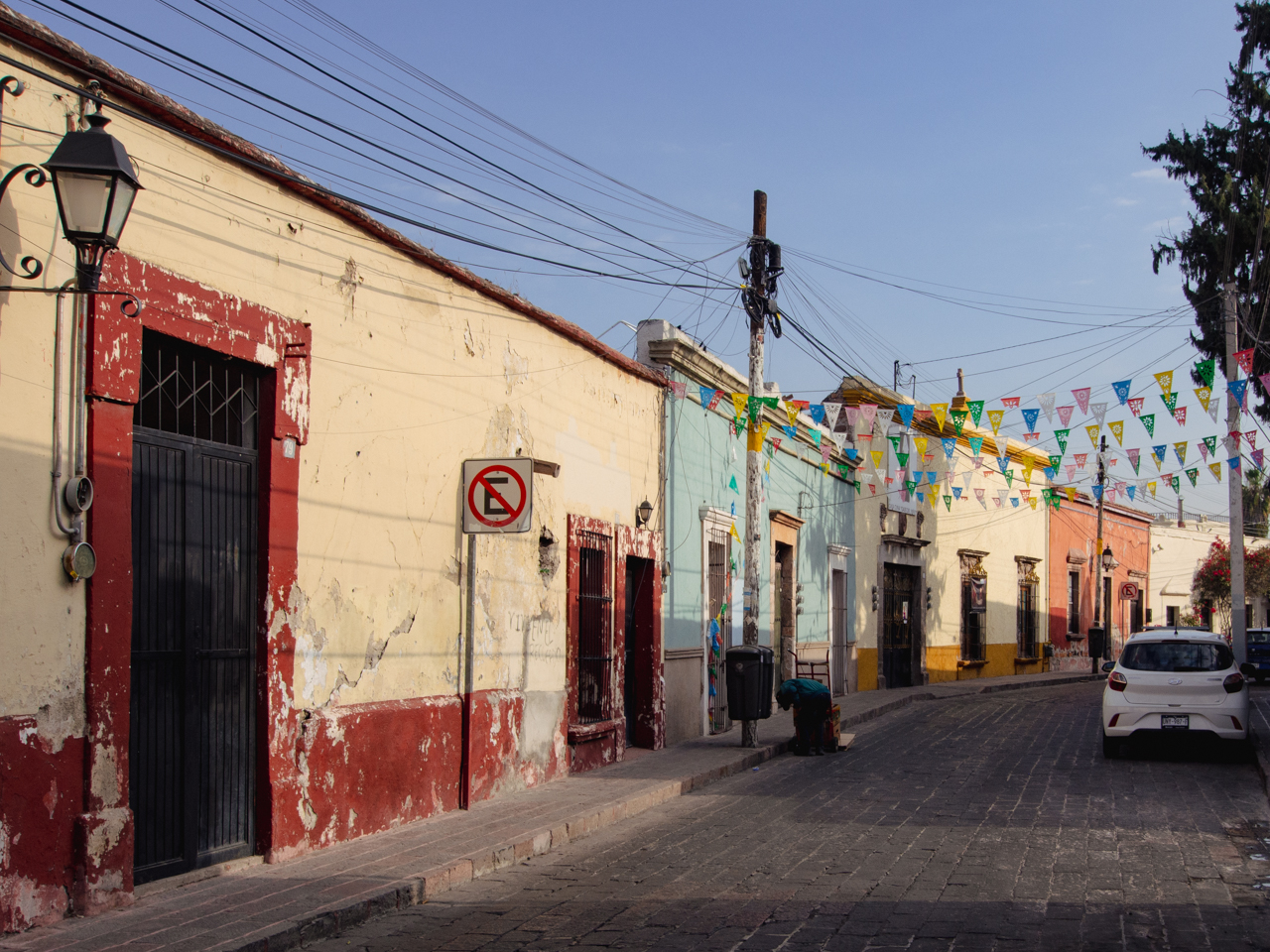 Il y a tellement de places et coins adorables dans ce centre ville que l’on s’y perdrait. Encore une fois, je peux comprendre l’attrait des nord américains pour le Mexique, on retrouve ici ce qui manque dans la plupart des villes aux USA et au Canada. Un centre historique, des places vivantes arborés avec des cafés, une bonne atmosphère, le Mexique est vraiment attachant. Je continue ma balade le long des ruelles sans fil conducteur, l’ambiance est adorable ici.