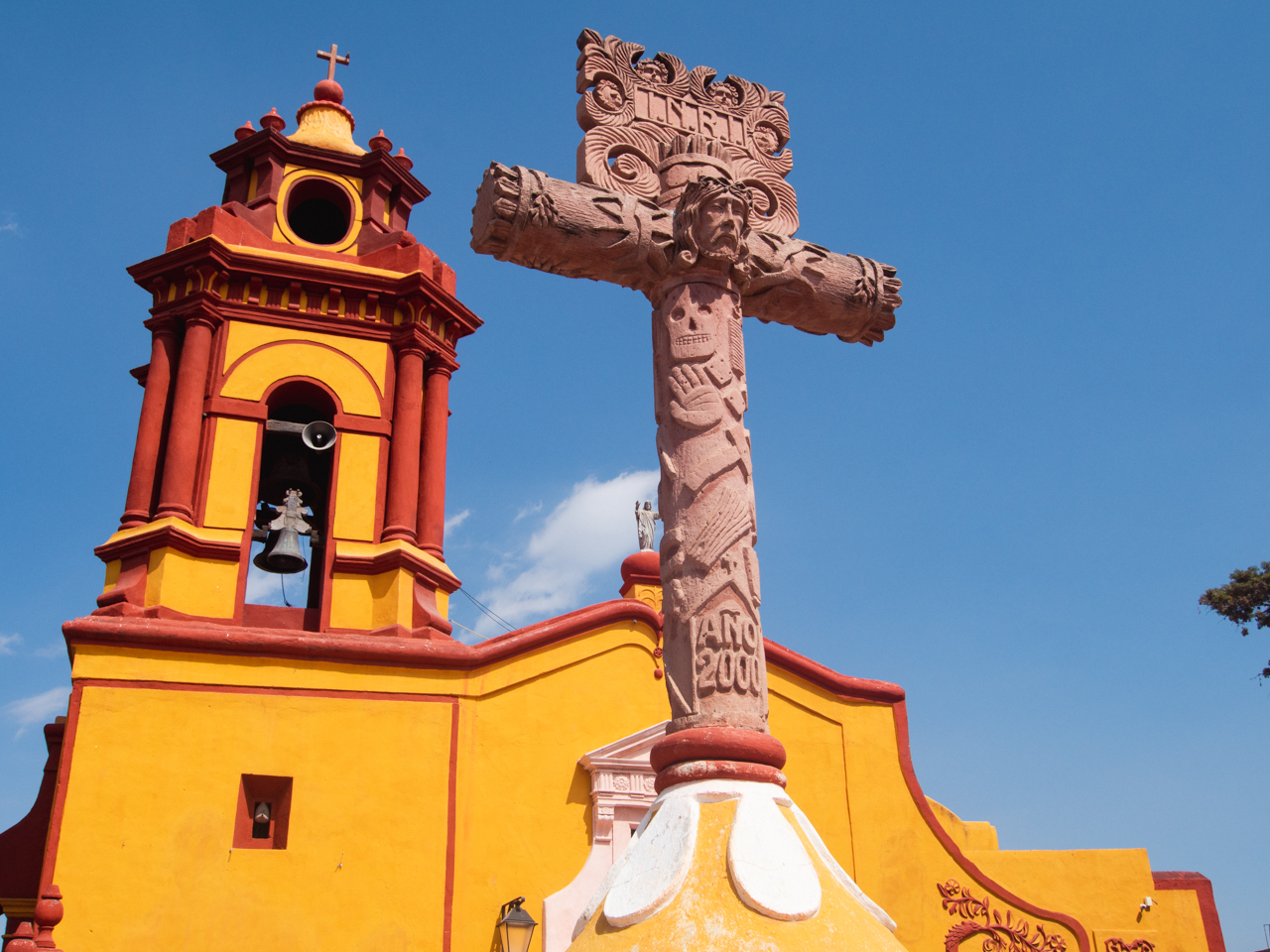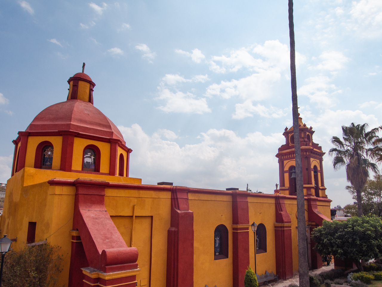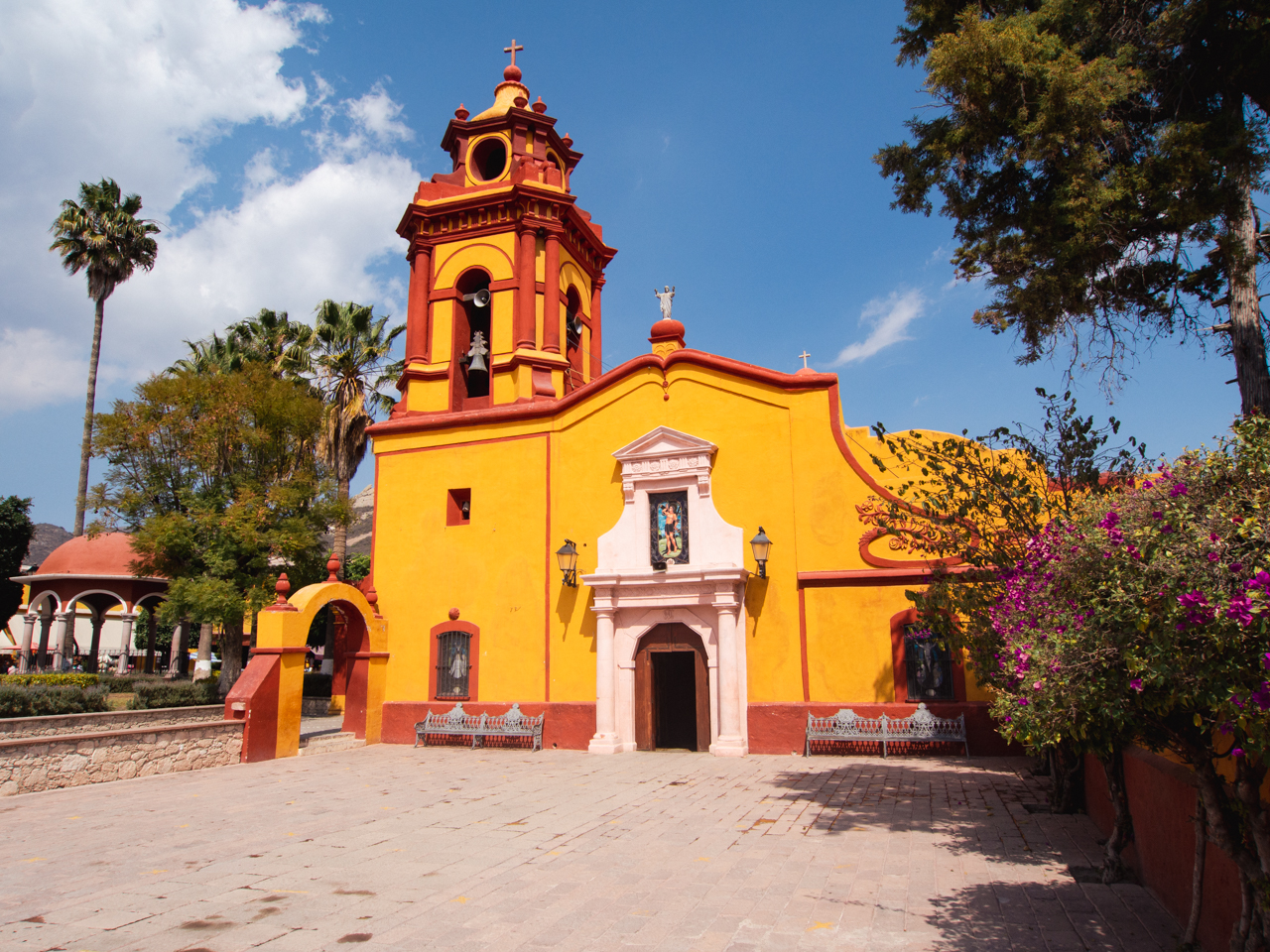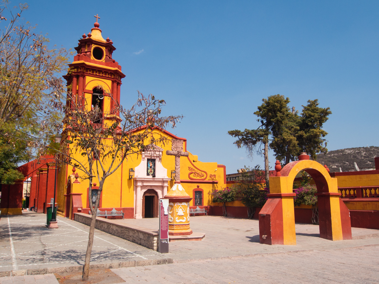 L’autre monument du village est l’église de Saint Sebastian's Temple in Bernal avec sa façade jaune et rouge.