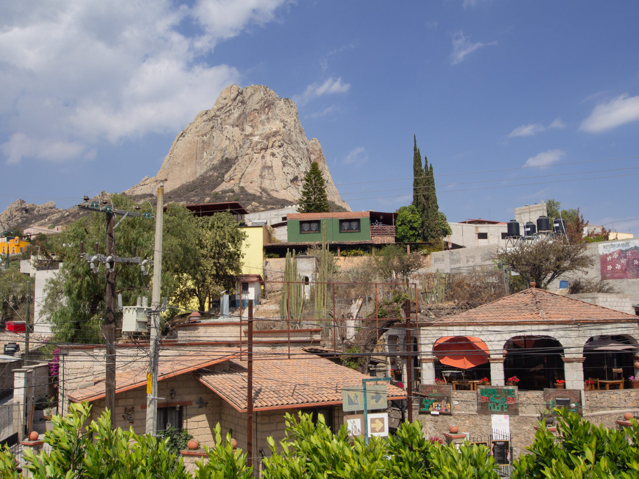 Mais l’idéal est je pense de trouver une restaurant avec une terrasse qui donne une vue sur un monument naturel unique ici, le monolithe de Bernal. Ave 433 mètres, ce monolithe est le troisième plus grand du monde après Gibraltar et Rio de Janeiro. Il dépasse au dessus des toits du village.
