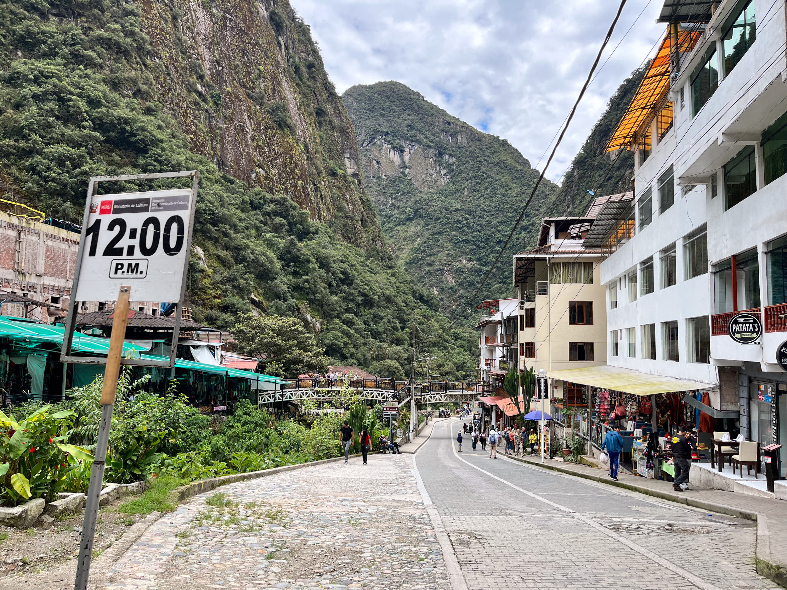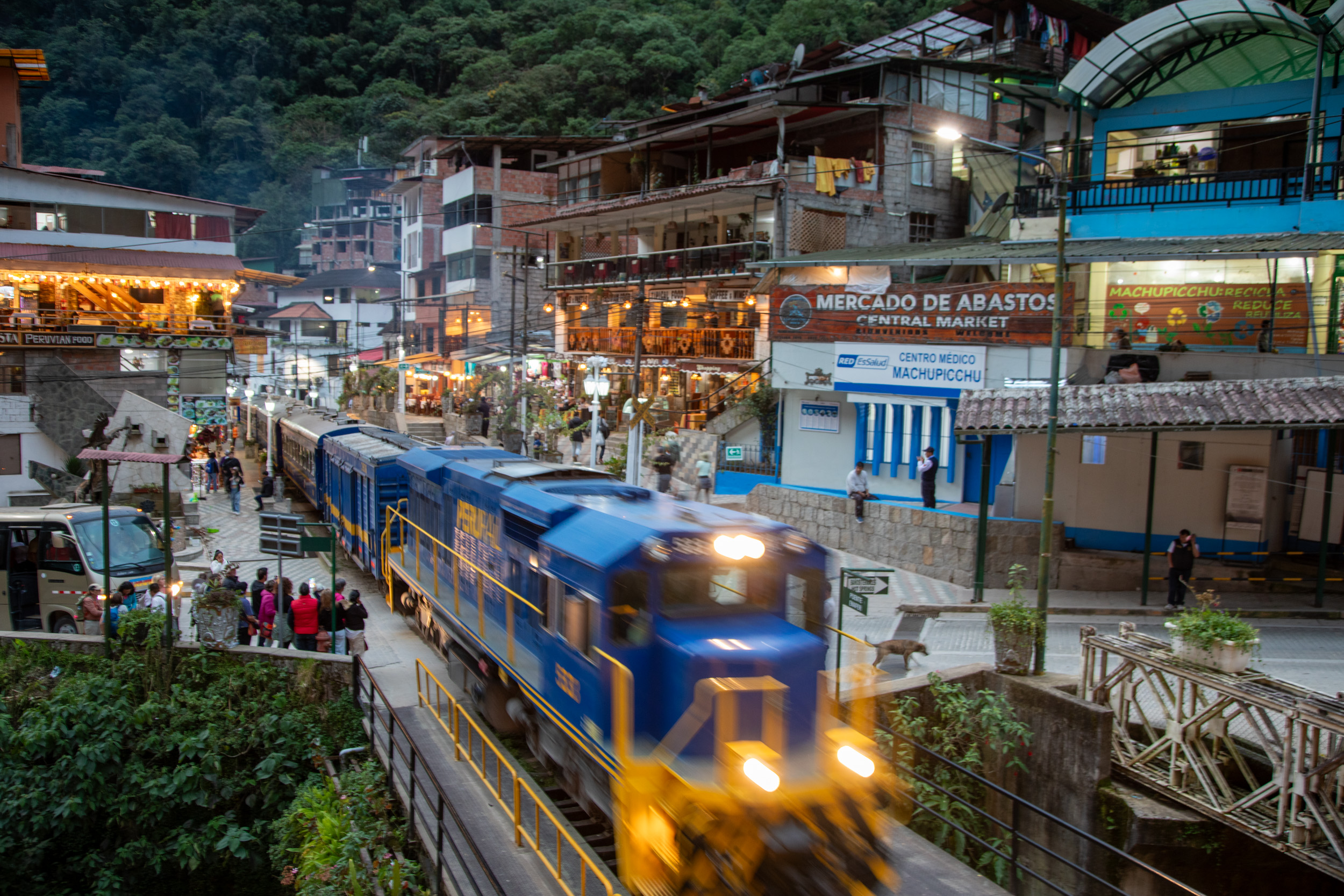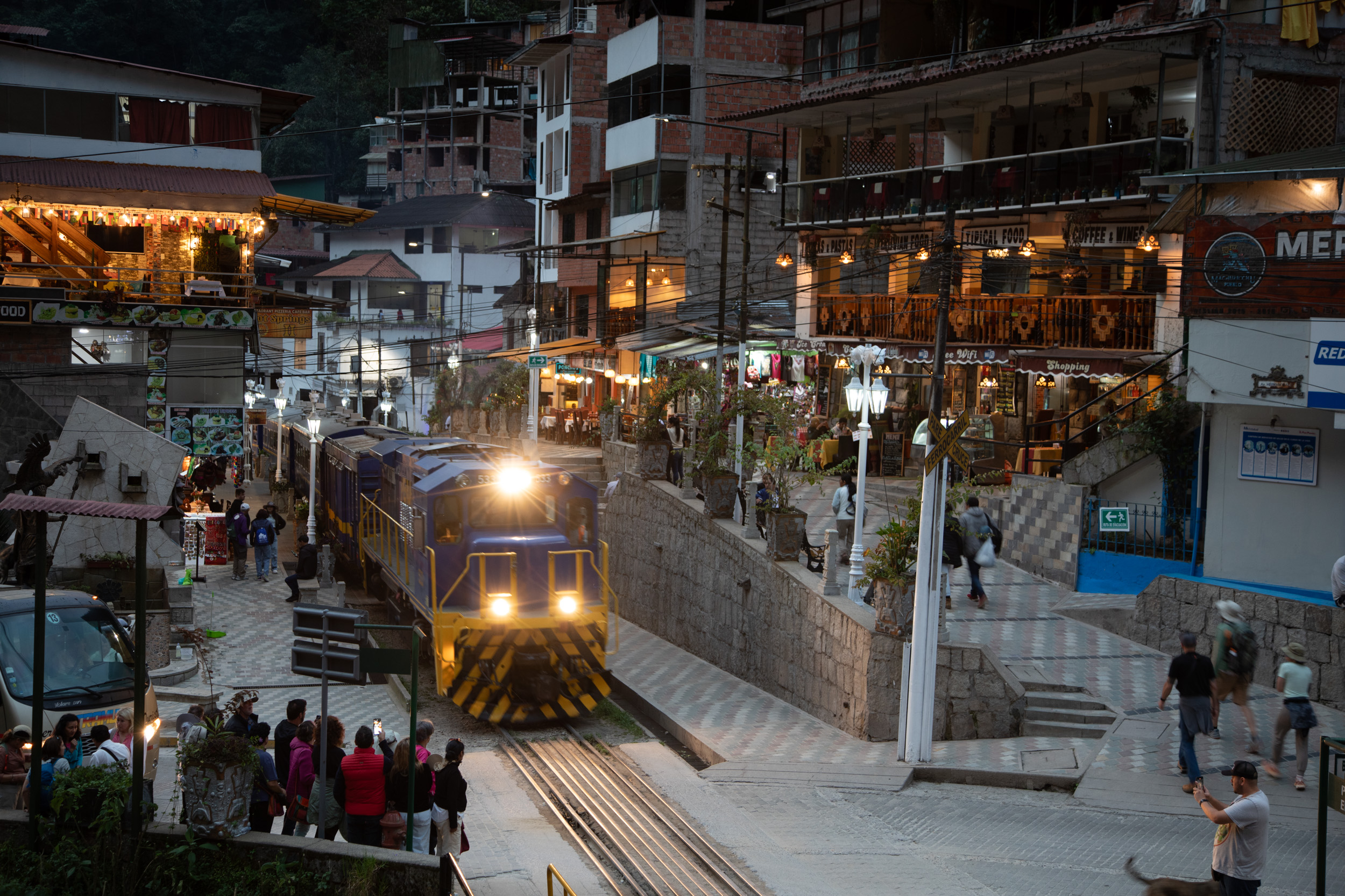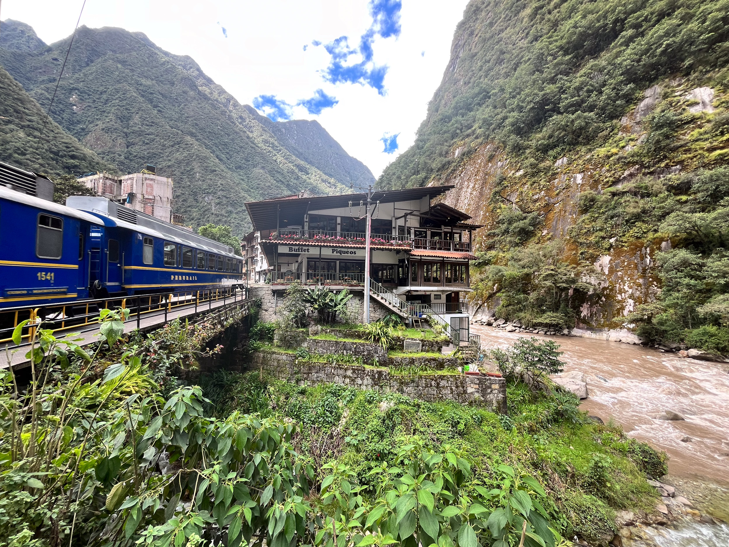 On arrive finalement en gare de Aguas Calientes, aussi nommé Machu Picchu Pueblo. La ville est bordée par le fleuve Urubamba et est encaissée au coeur de montagnes très hautes, on imagine que tout en haut d’une de ces montagnes, se trouve le monument historique.