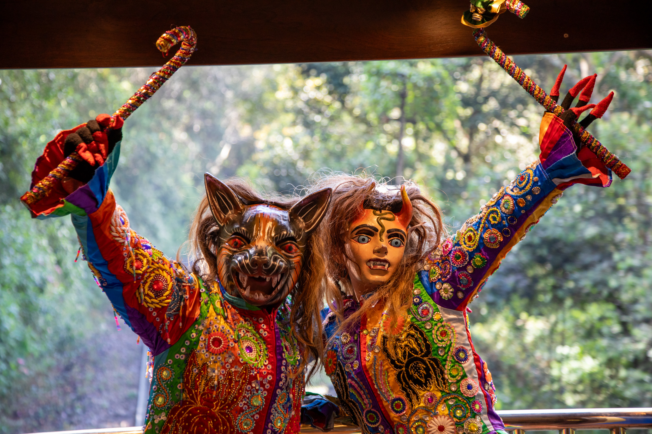Les passagers du Vistadome sont installés dans les quatre derniers wagons du train Perurail. On est appelé wagon par wagon pour rejoindre le dernier wagon où se trouve un joli salon en bois, des musiciens et des artistes masqués.