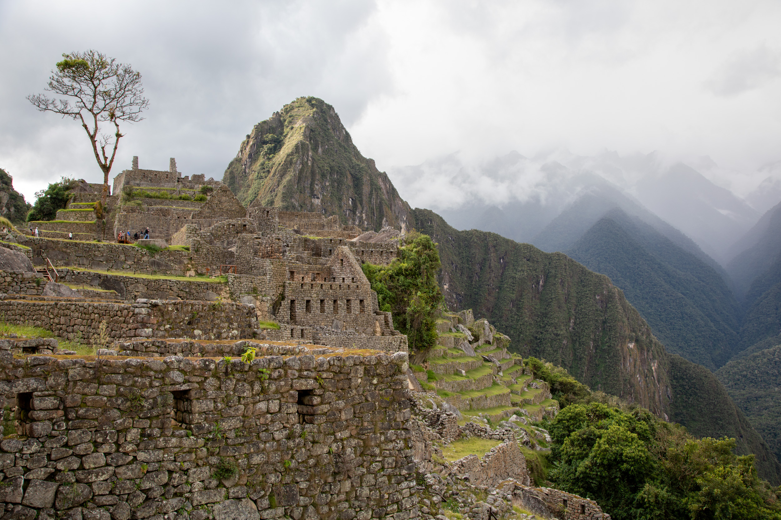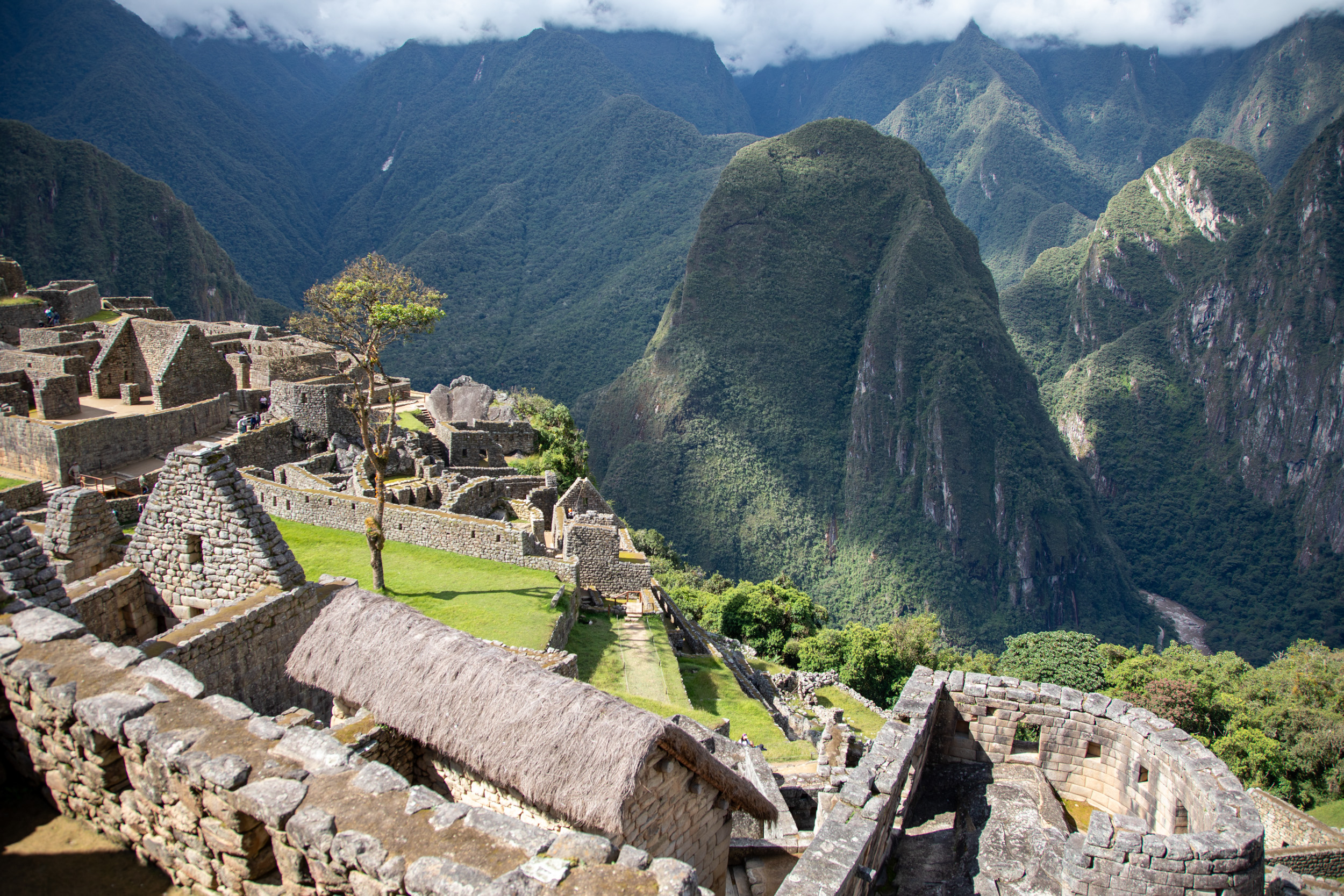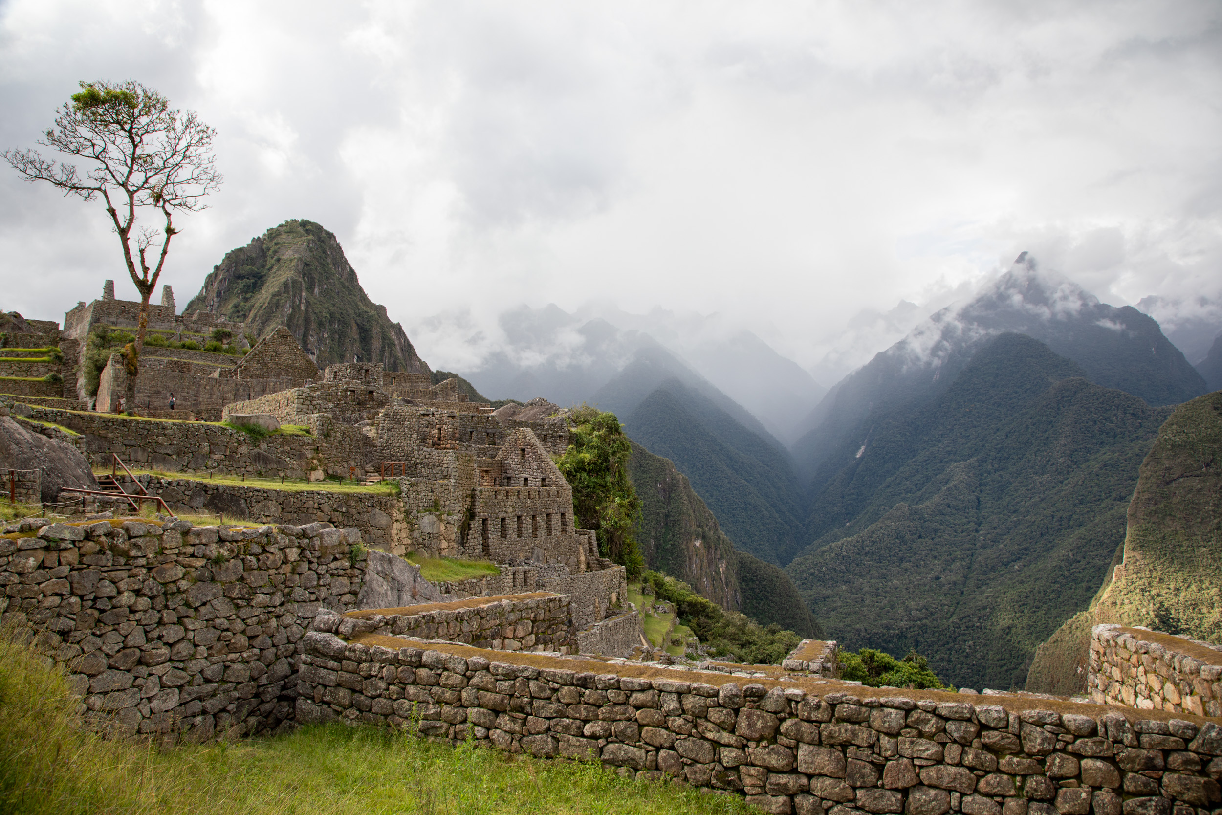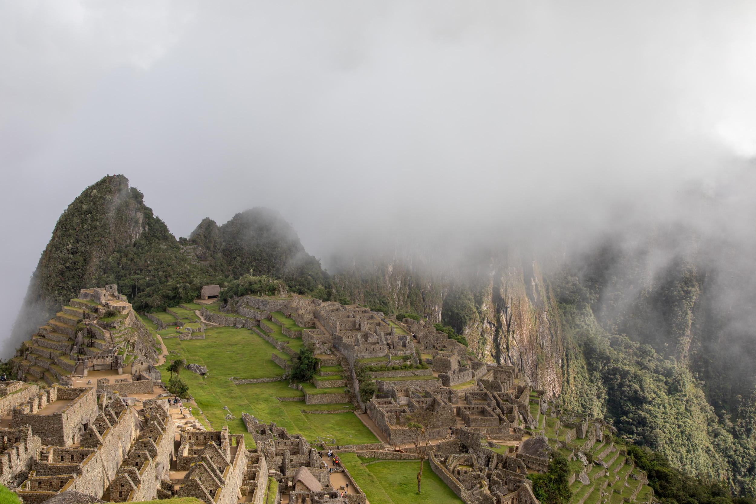 Un énorme effort de restauration a été entamé après la redécouverte de la cité perdue par l’américain Hiram Bingham en 1911, il y a donc un peu plus de cent ans seulement. Il a fallu déterrer les vestiges, enlever les arbres, restaurer les pierres. C’est aussi un travail quotidien des ouvriers du parc, que l’on voit ici et là avec des échelles pour enlever la mousse qui vient tous les jours recouvrir les pierres de la citadelle. On entre maintenant dans la cité inca par une porte en pierre. Il faut imaginer que la construction du Machu Picchu s’est fait sans utiliser d’outils en métal, de mortier ou de roue, c’est une prouesse d’ingénierie qui a en plus été réalisée à une telle altitude, sur un terrain aussi difficile.