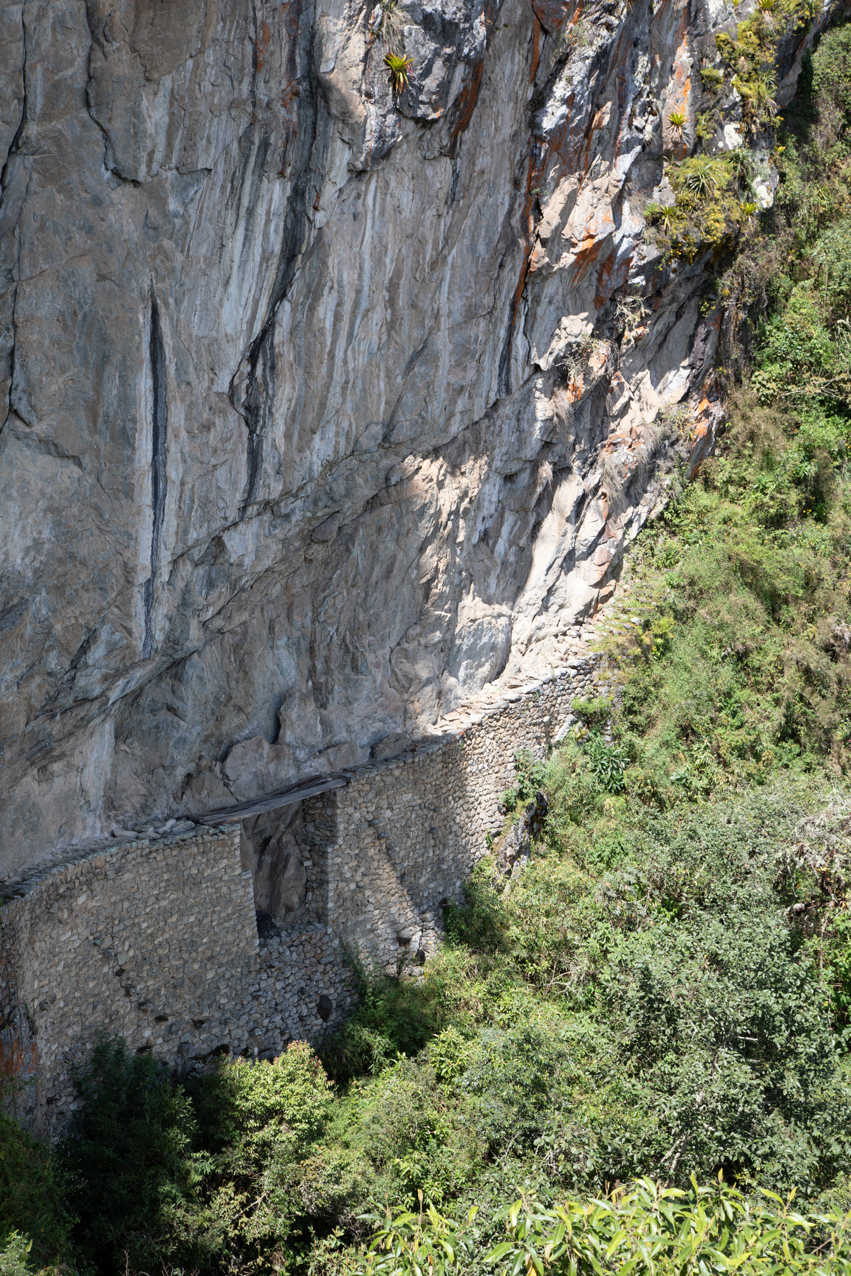 On continue la découverte du site avec l’extension vers le pont inca, à une vingtaine de minute du promontoire. On surplombe la falaise, c’est un chemin qui n’est pas large et pas très sécurisé, en aucun cas adapté aux enfants, mais la vue en vaut la chandelle. On a une très belle vue sur la vallée de l’Urubamba.