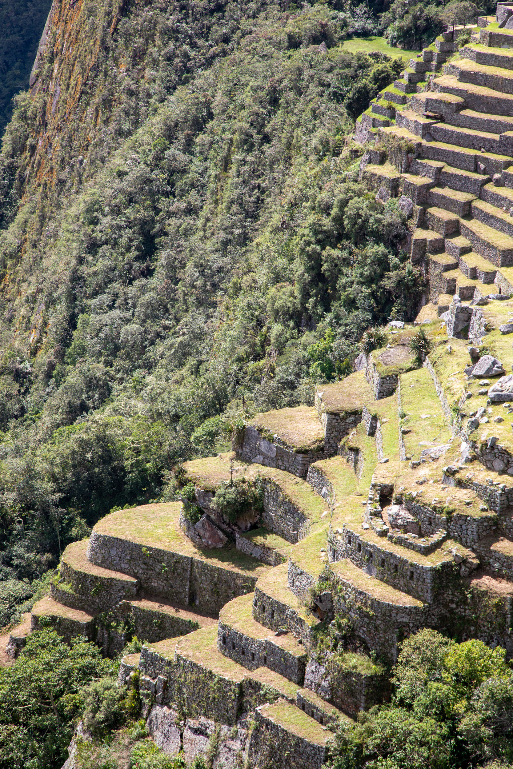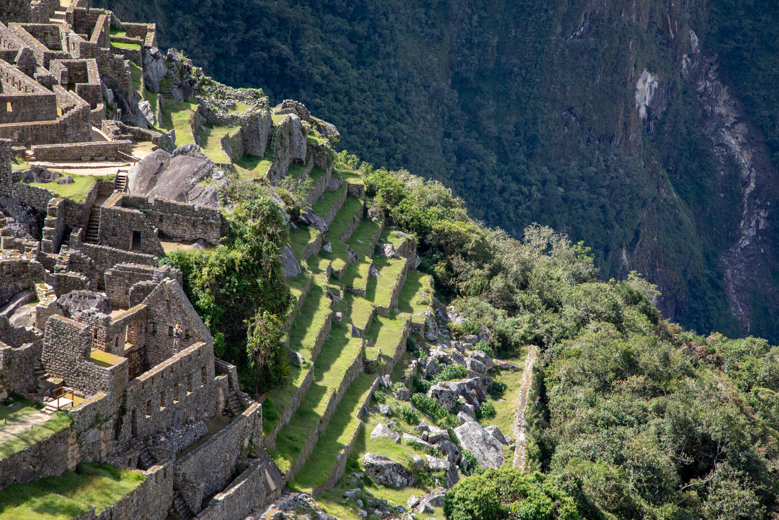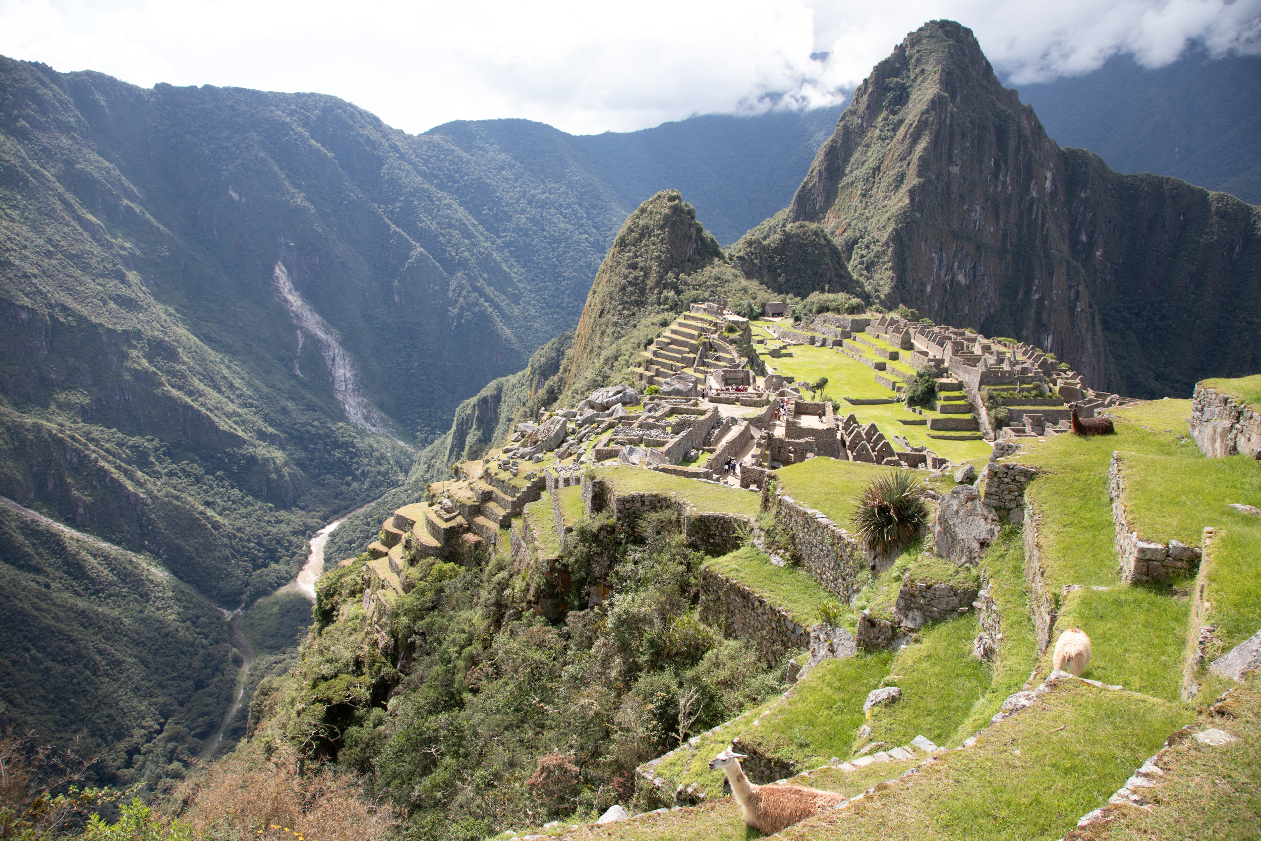 On trouve encore des lamas qui broutent l’herbe des terrasses agricoles. Ces lamas sont retournés à la vie sauvage après avoir été amenés sur le site il y a une cinquantaine d’années. Maintenant ils font leur vie tranquillement et sont une attraction du Machu Picchu. On retrouve à l’arrière du site une zone de recherche agronome, comme à Moray dans la vallée sacrée, avec des terrasses qui permettent de tester la meilleure façon de faire pousser chaque type de plantes.