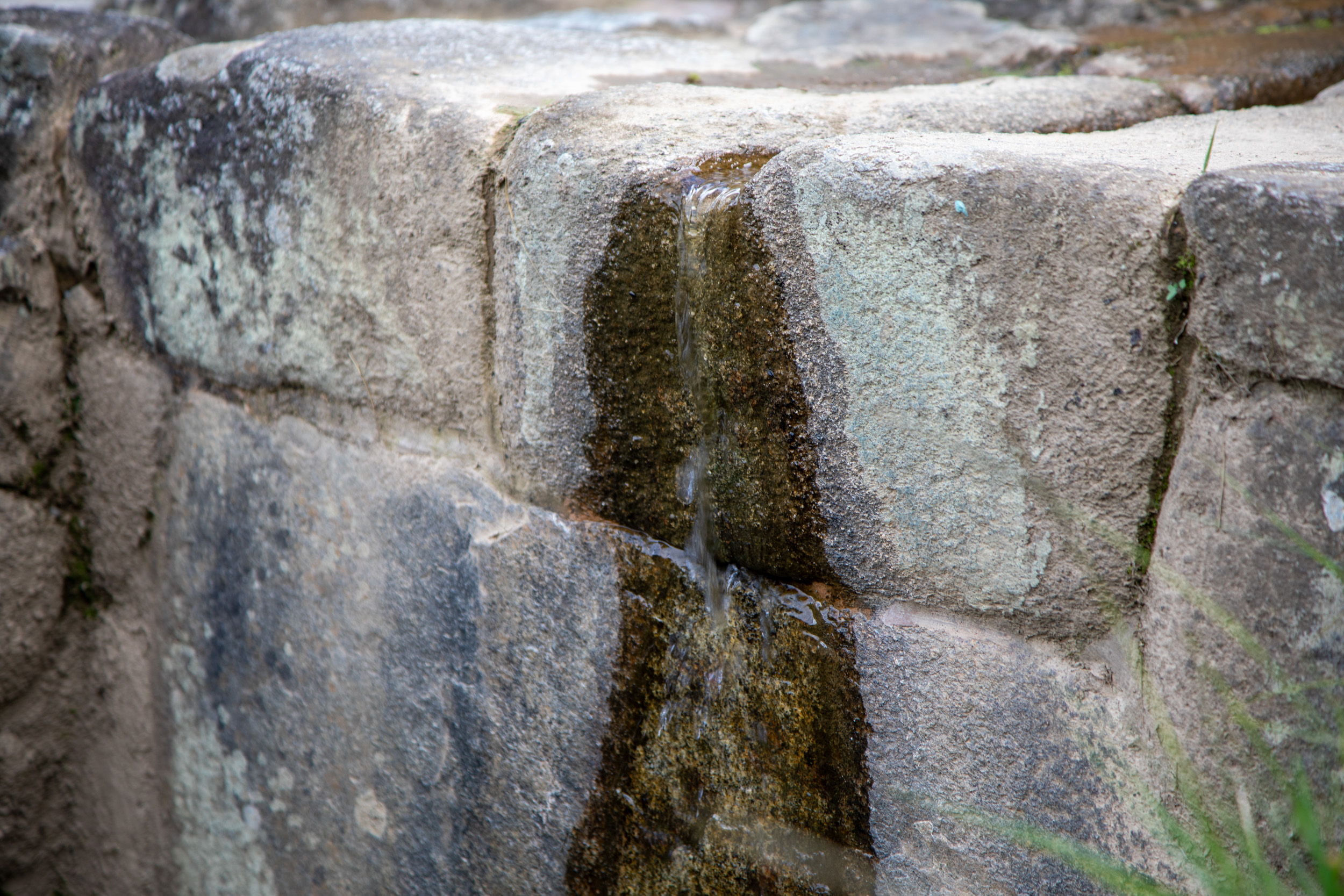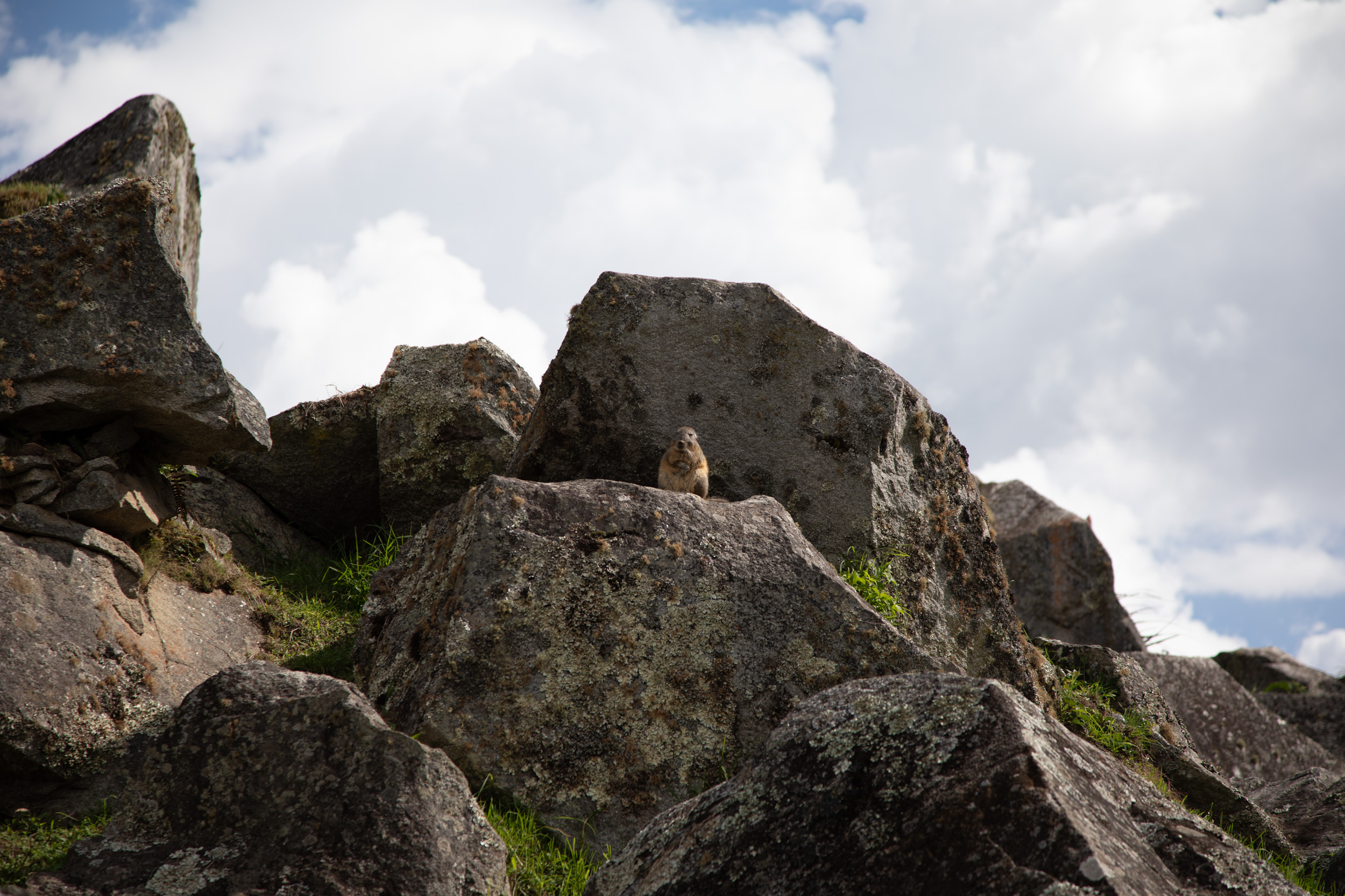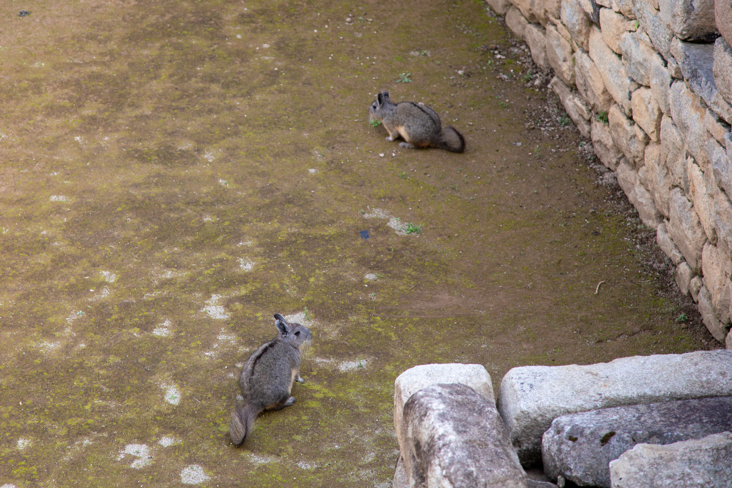 Les pierres qui ont servi à la construction semblent venir de la montagne, elles n’ont pas été amenées d’une carrière comme dans d’autres sites de la Vallée Sacrée. Il y a une zone avec d’immenses blocs de roches qui devaient servir à continuer la construction. Un lapin nous observe depuis un des rochers.