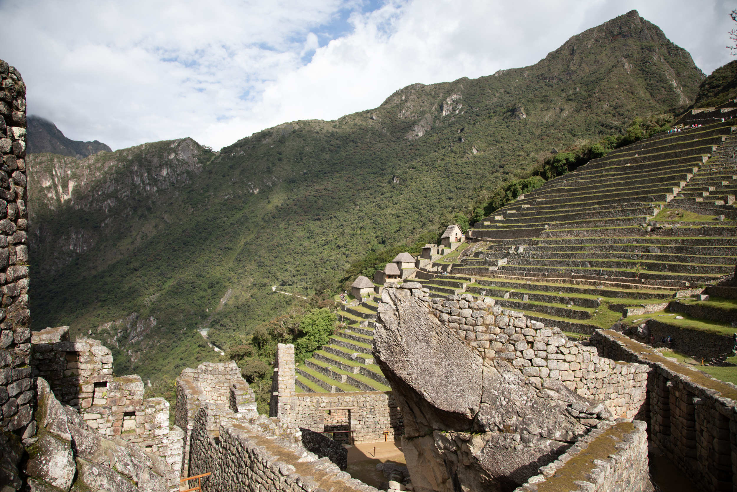 On s’approche de l’entrée de la citadelle perdue, les maisons en pierre abritait les nobles incas qui faisaient vivre cette cité. Étonnamment, la cité de Machu Picchu a été construite que quelques dizaines d’années avant l’arrivée des Espagnols, elle n’a pas été utilisée longtemps. Elle a aussi servie de base de repli pour les incas qui fuyaient la guerre. Malheureusement, c’est aussi ce qui a provoqué sa chute.