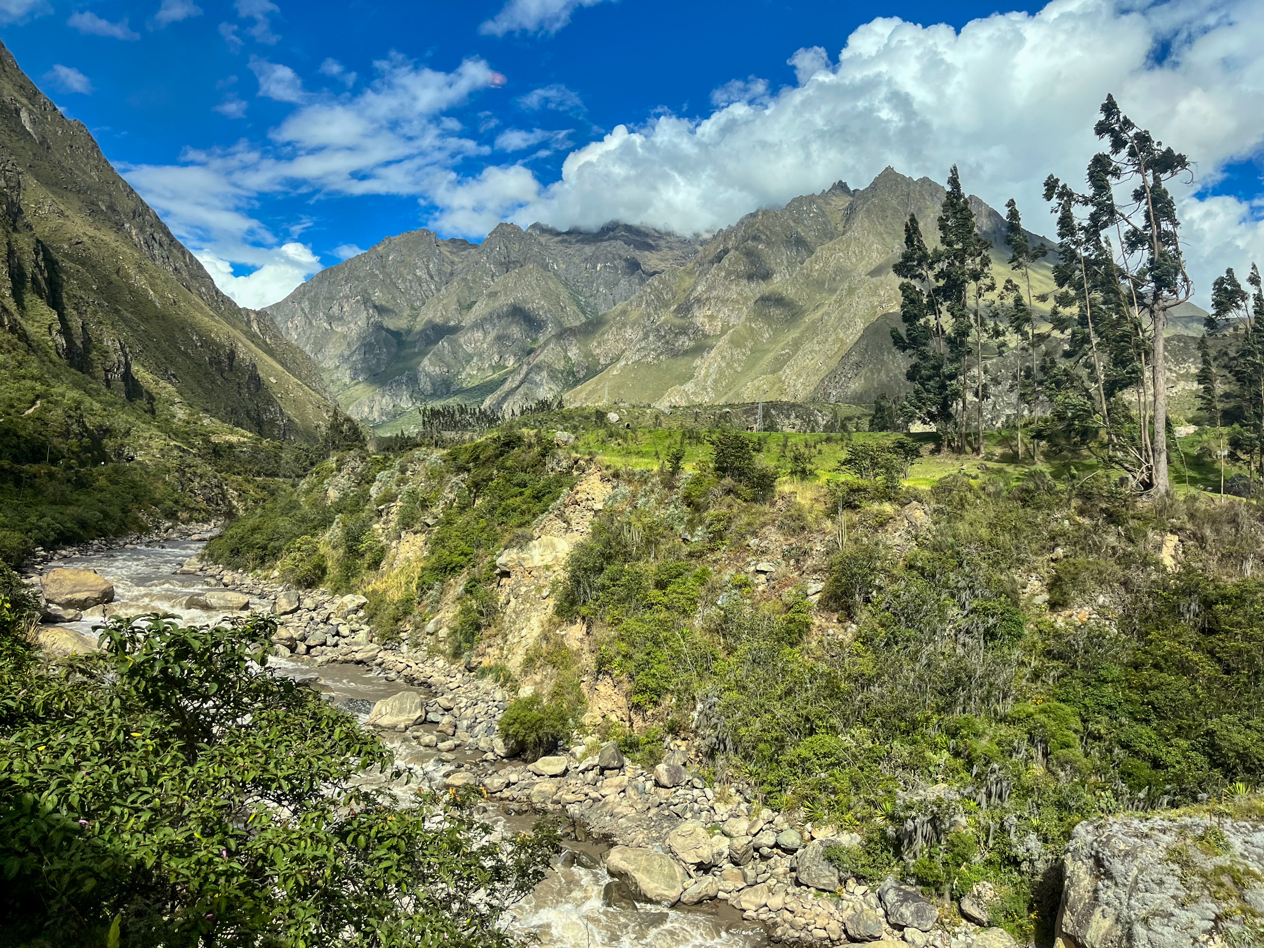 La vue sur le fleuve Urubamba est très belle aussi, le fleuve coule avec fureur dans un rugissement permanent. Il y a beaucoup d’oiseaux qui volent autour des arbres .