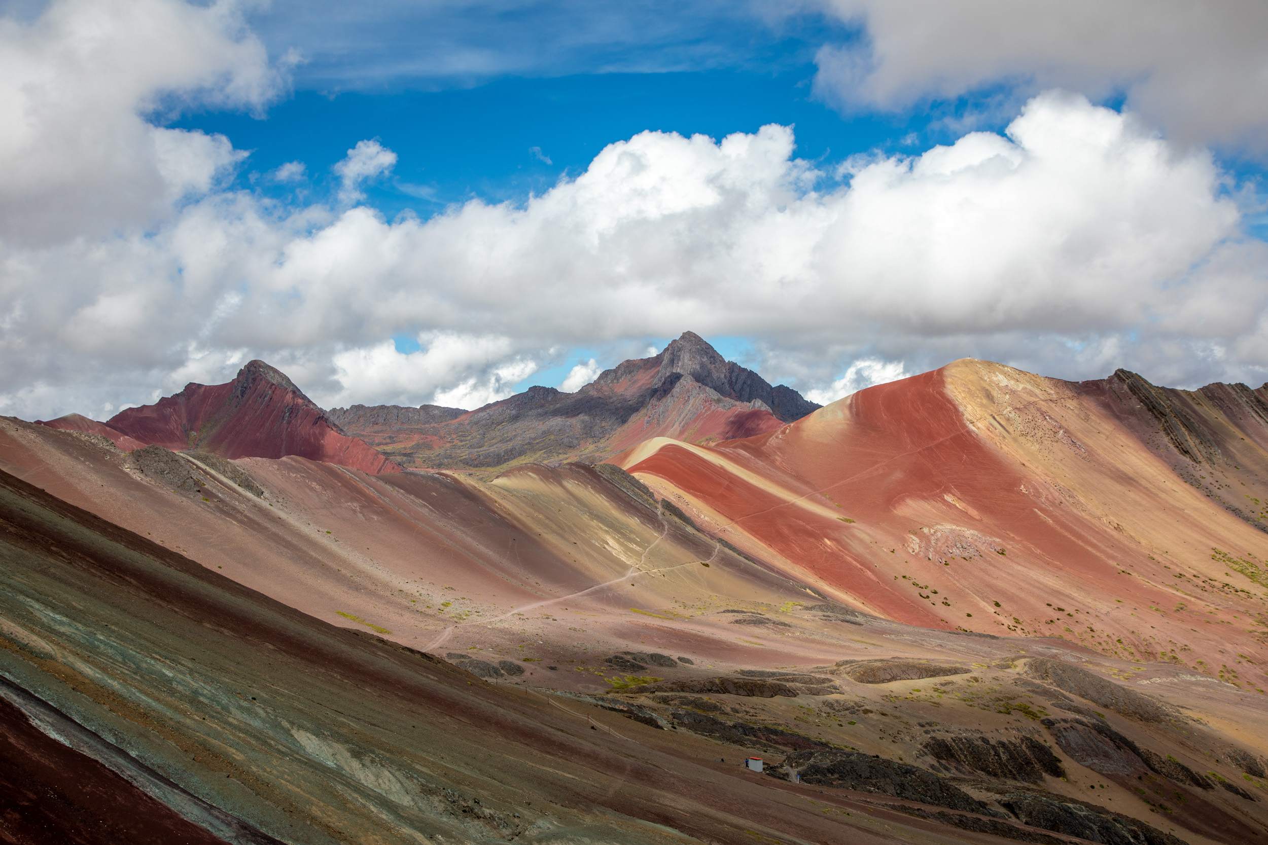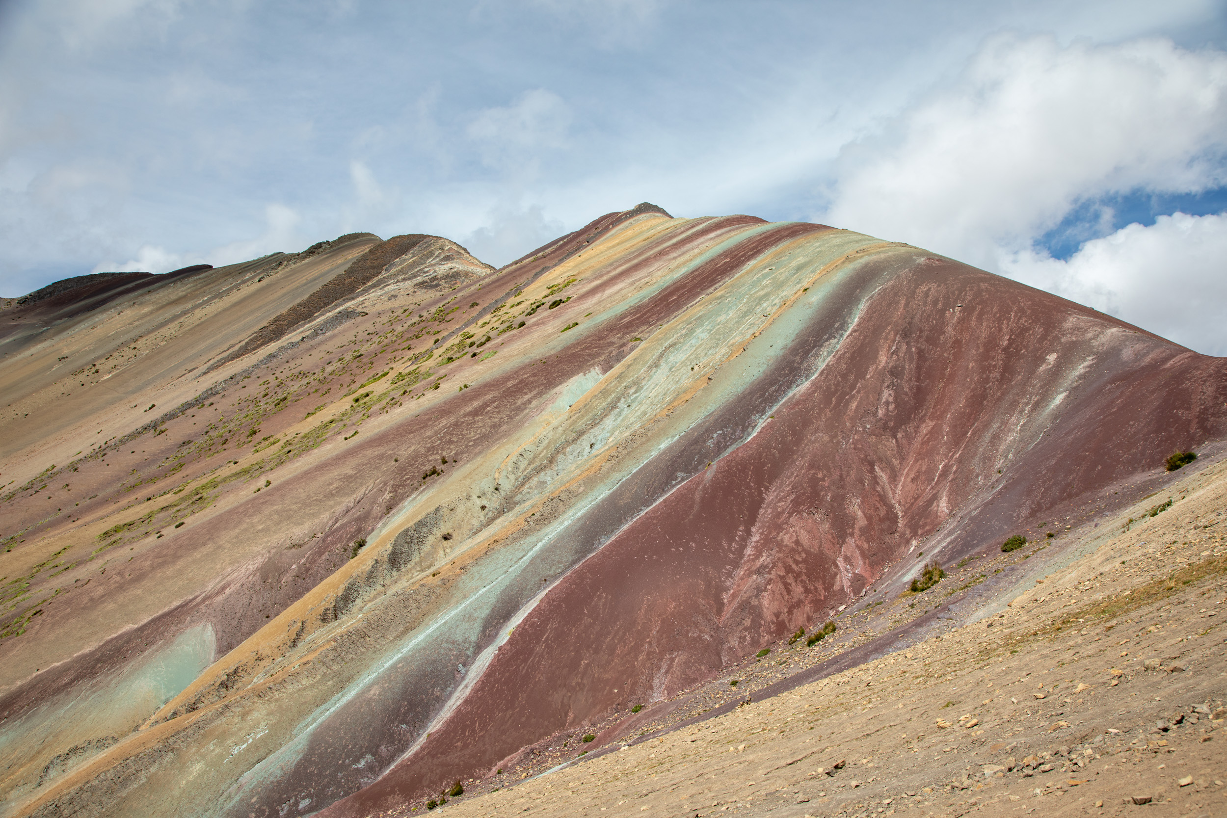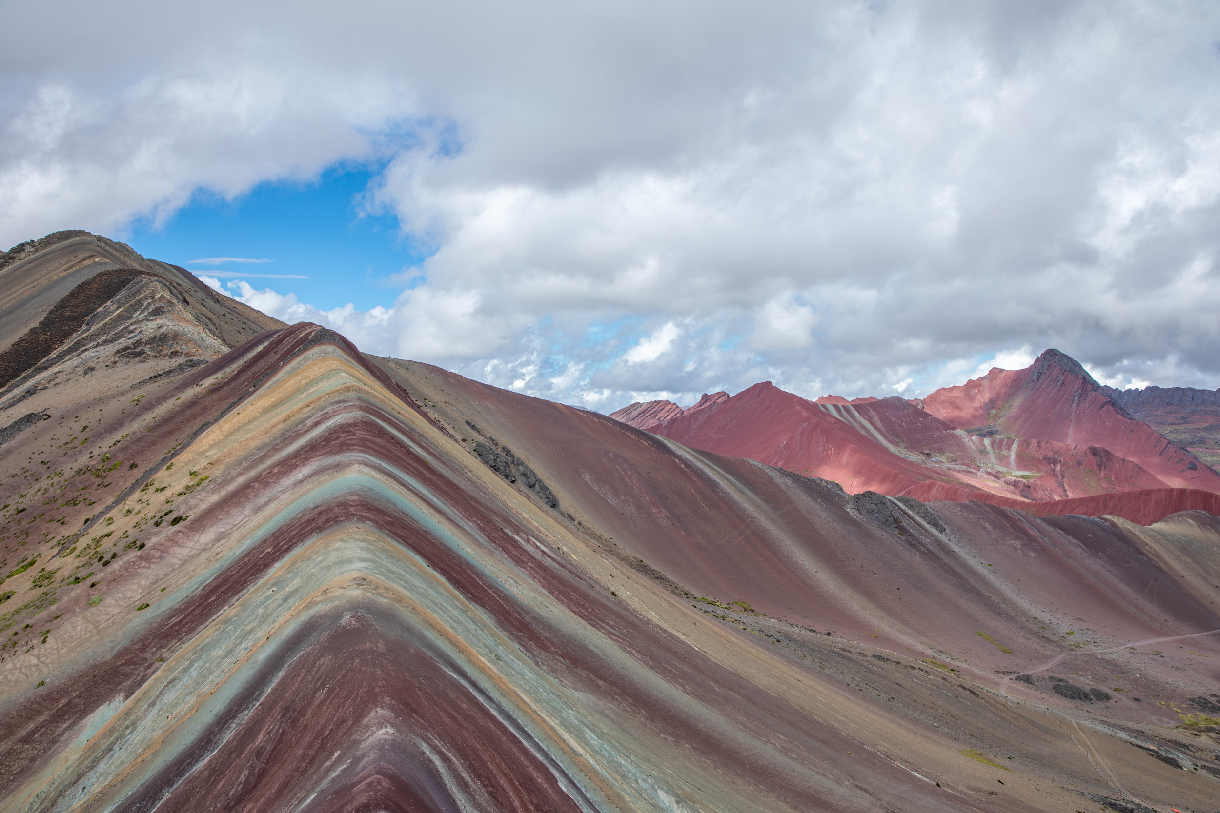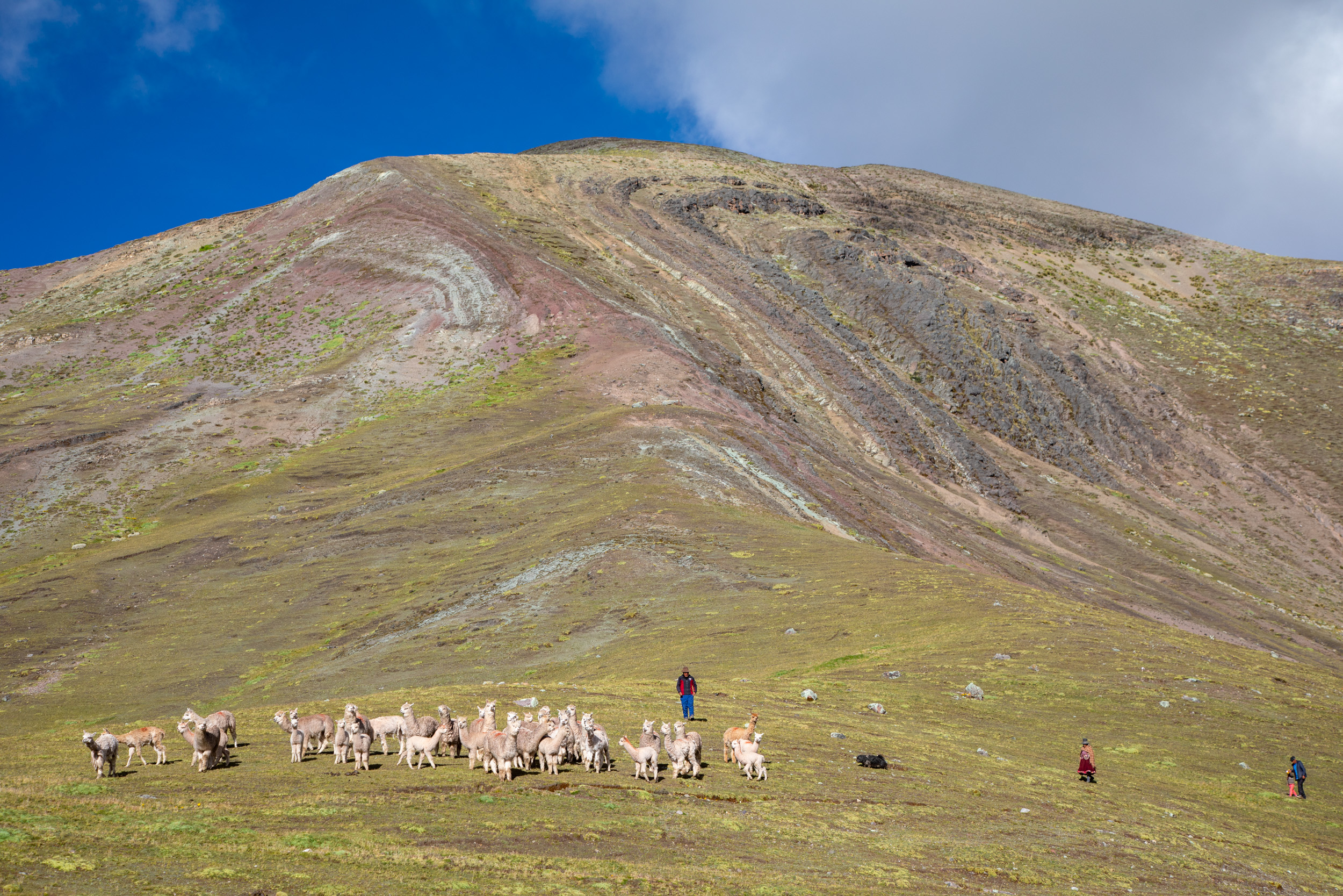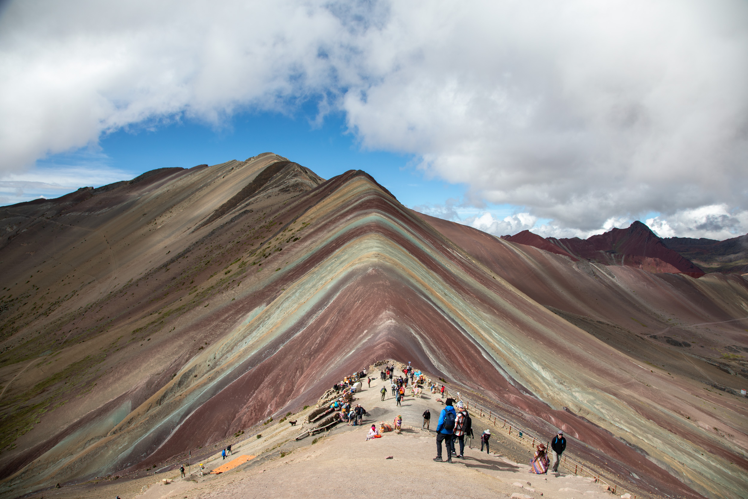 Il y a moins de dix ans, le réchauffement climatique et la fonte des glaciers de la montagne de Vinicunca dans la région de Cusco ont fait apparaitre un décor étonnant sous la neige, la terre de la montagne se découvrait et laisser apparaitre toutes ses couleurs. C’est devenu une des attractions les plus populaires, et c’est tout à fait compréhensible, le paysage est extraordinaire, l’altitude s’approche des 5000 mètres, on est entouré de montagnes aux neiges éternelles, la terre est rouge, il y a des bergers avec des troupeaux de lamas.