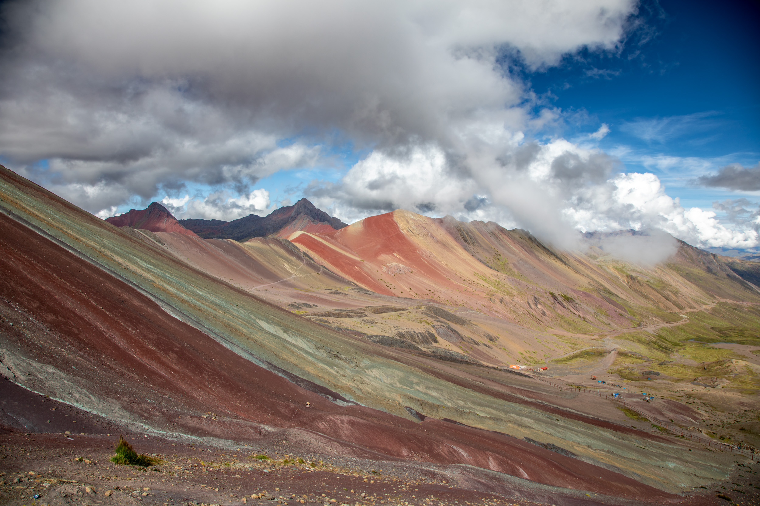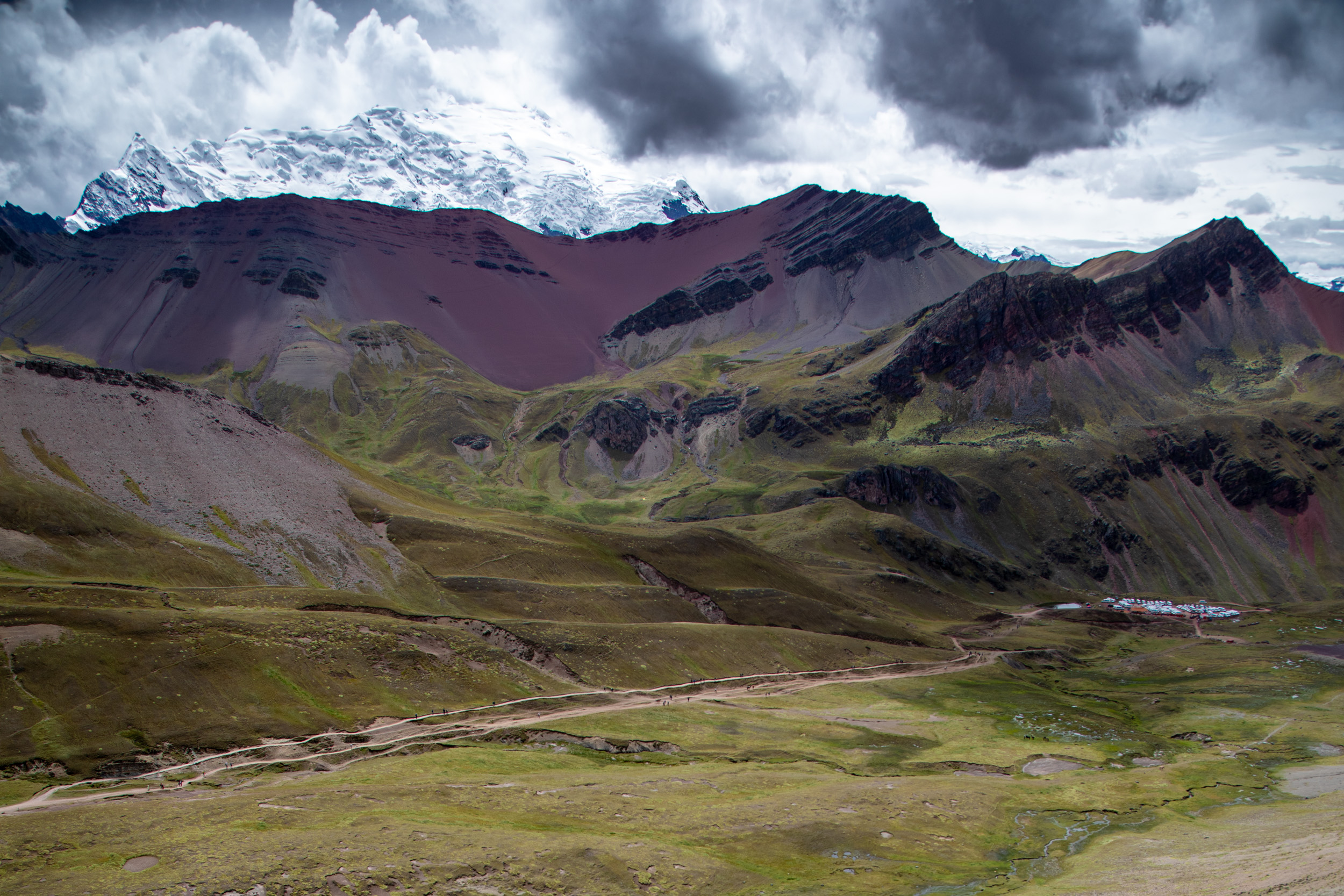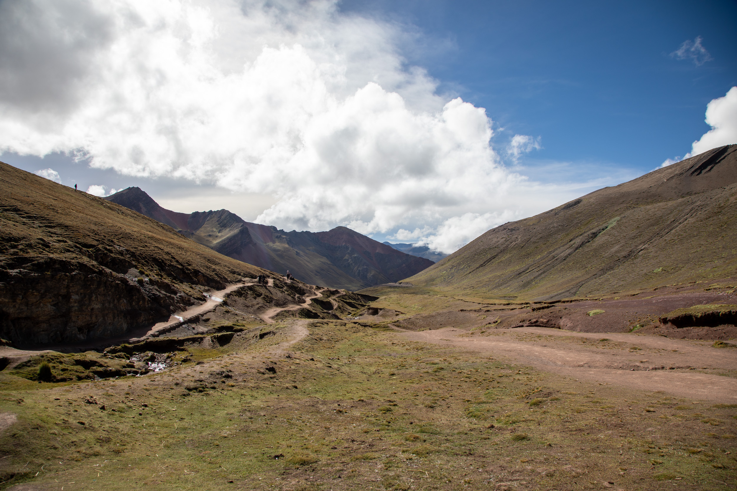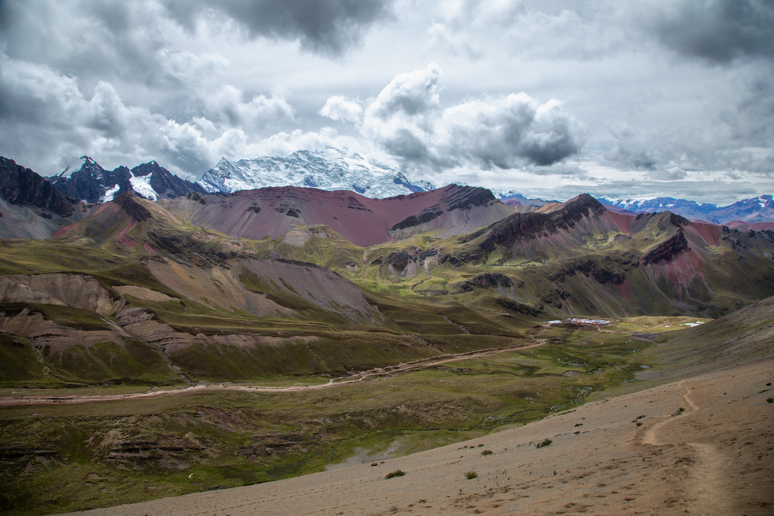 Le glacier est masqué par la couche de nuage qui s'accumule, quel paysage incroyable. On pensait que Vinicunca était surtout réputé pour sa montagne arc en ciel mais c'est en fait toute la zone qui est spectaculaire avec un paysage de haute montagne accessible plutôt facilement depuis Cusco.