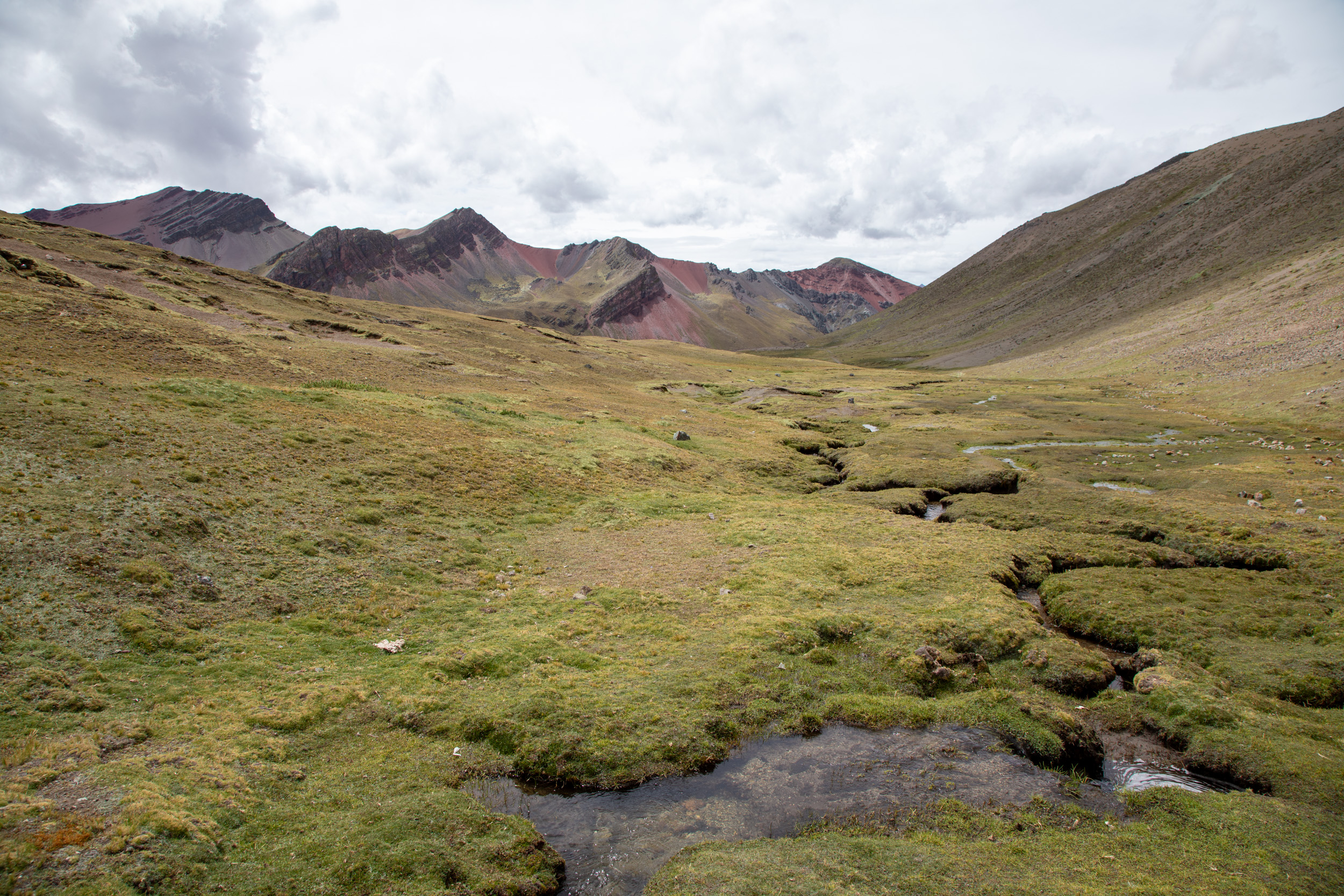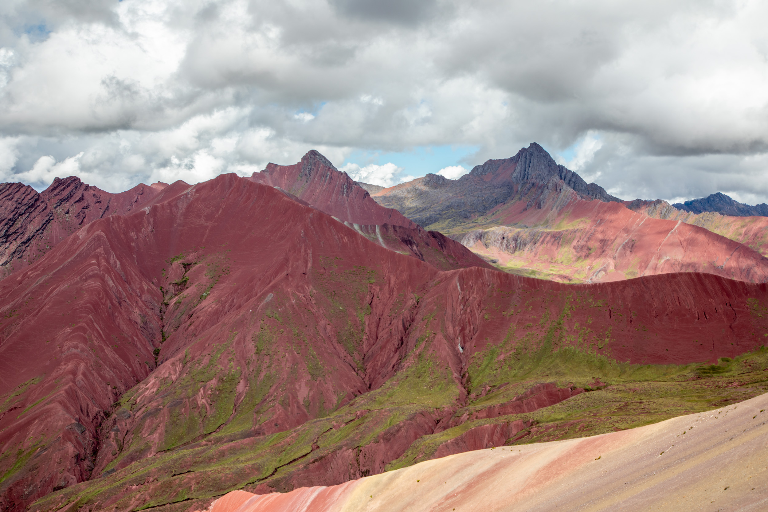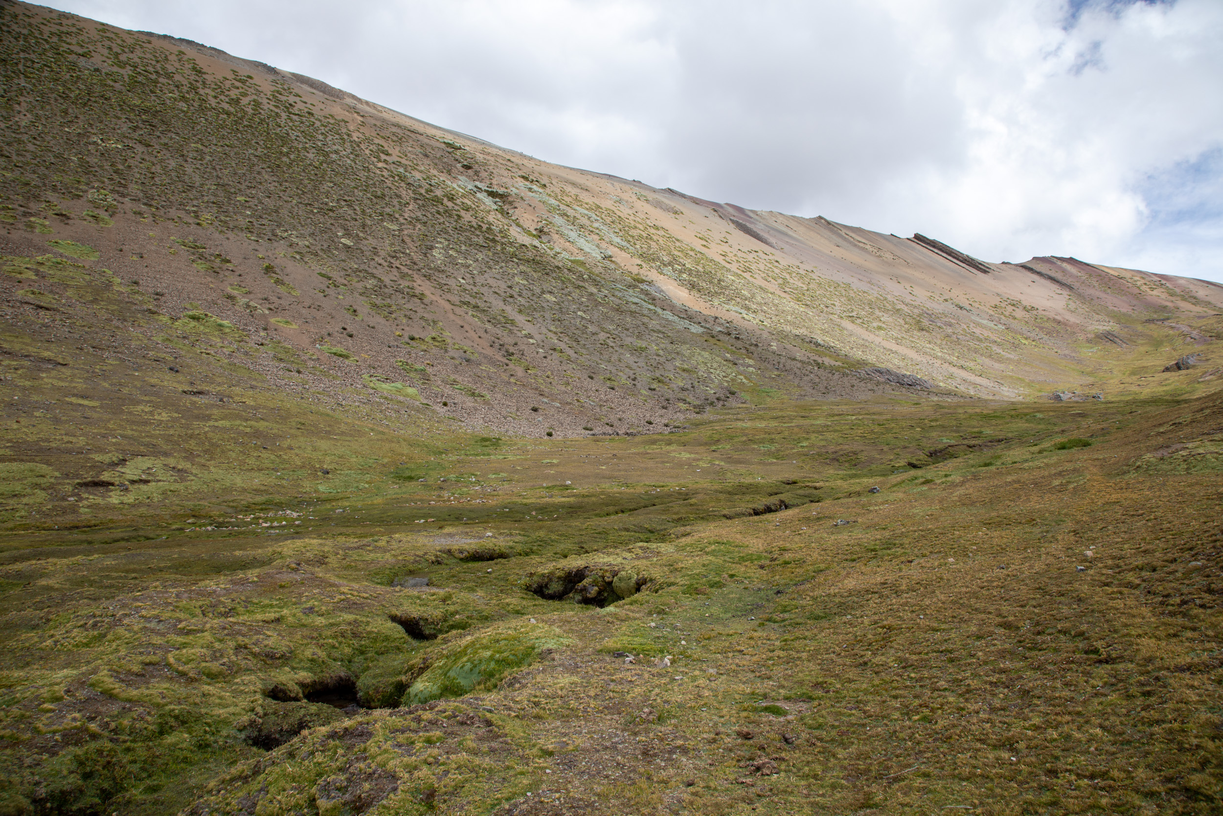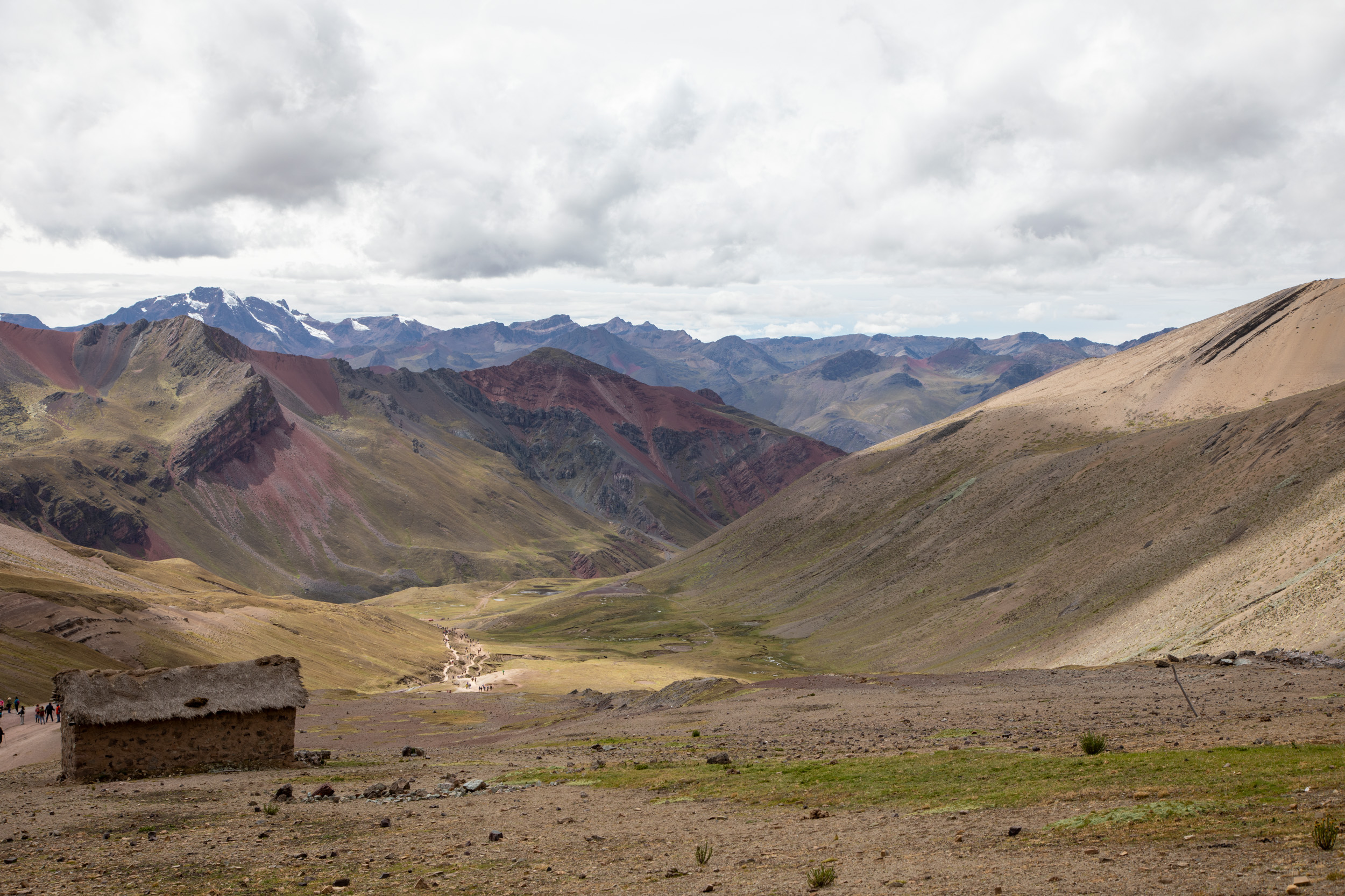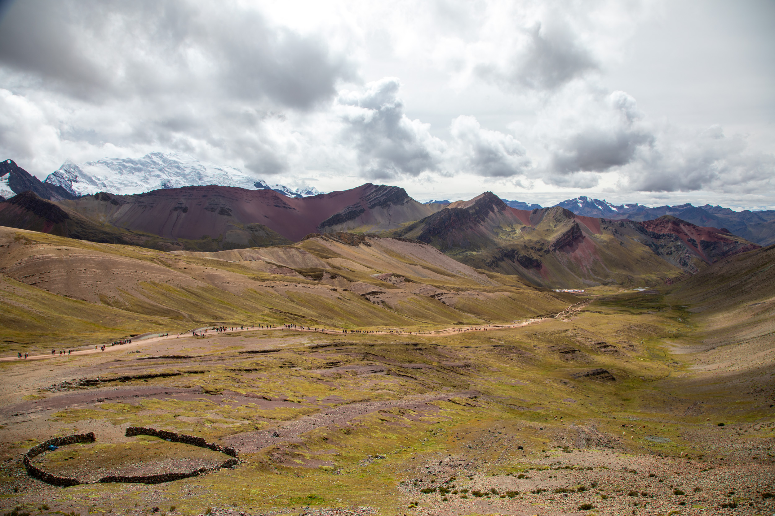 Le glacier est masqué par la couche de nuage qui s'accumule, quel paysage incroyable. On pensait que Vinicunca était surtout réputé pour sa montagne arc en ciel mais c'est en fait toute la zone qui est spectaculaire avec un paysage de haute montagne accessible plutôt facilement depuis Cusco.