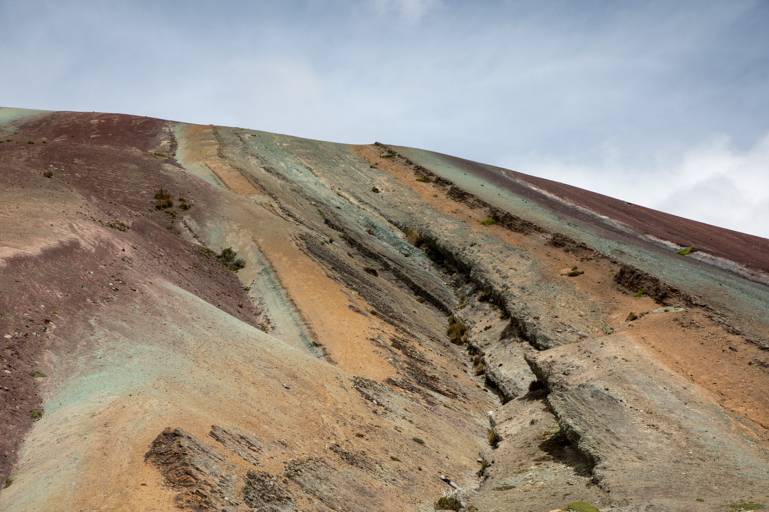 Un dernier regard vers la montagne arc en ciel, puis on la contourne par la gauche et on peut voir les formations rocheuses de près.