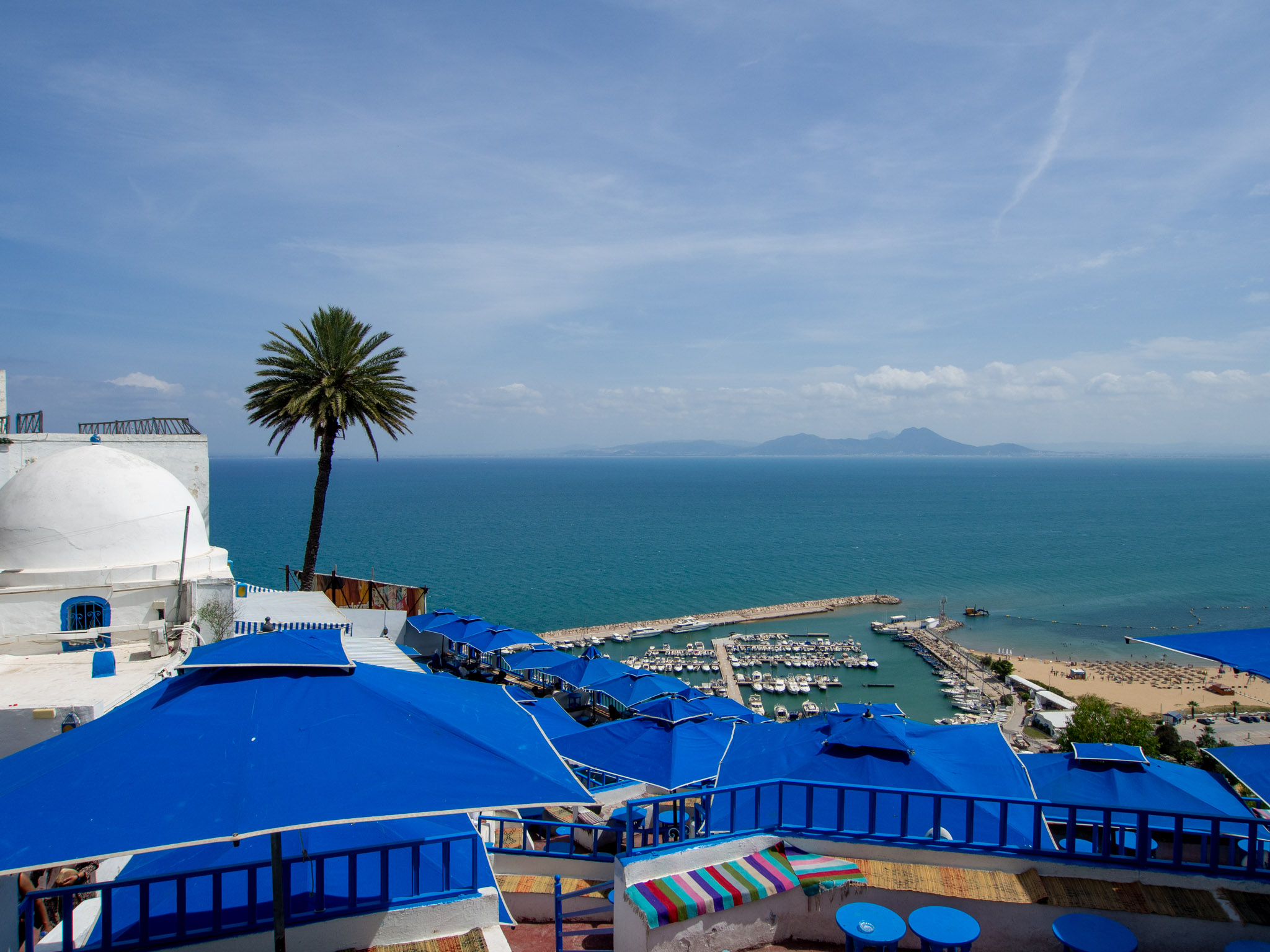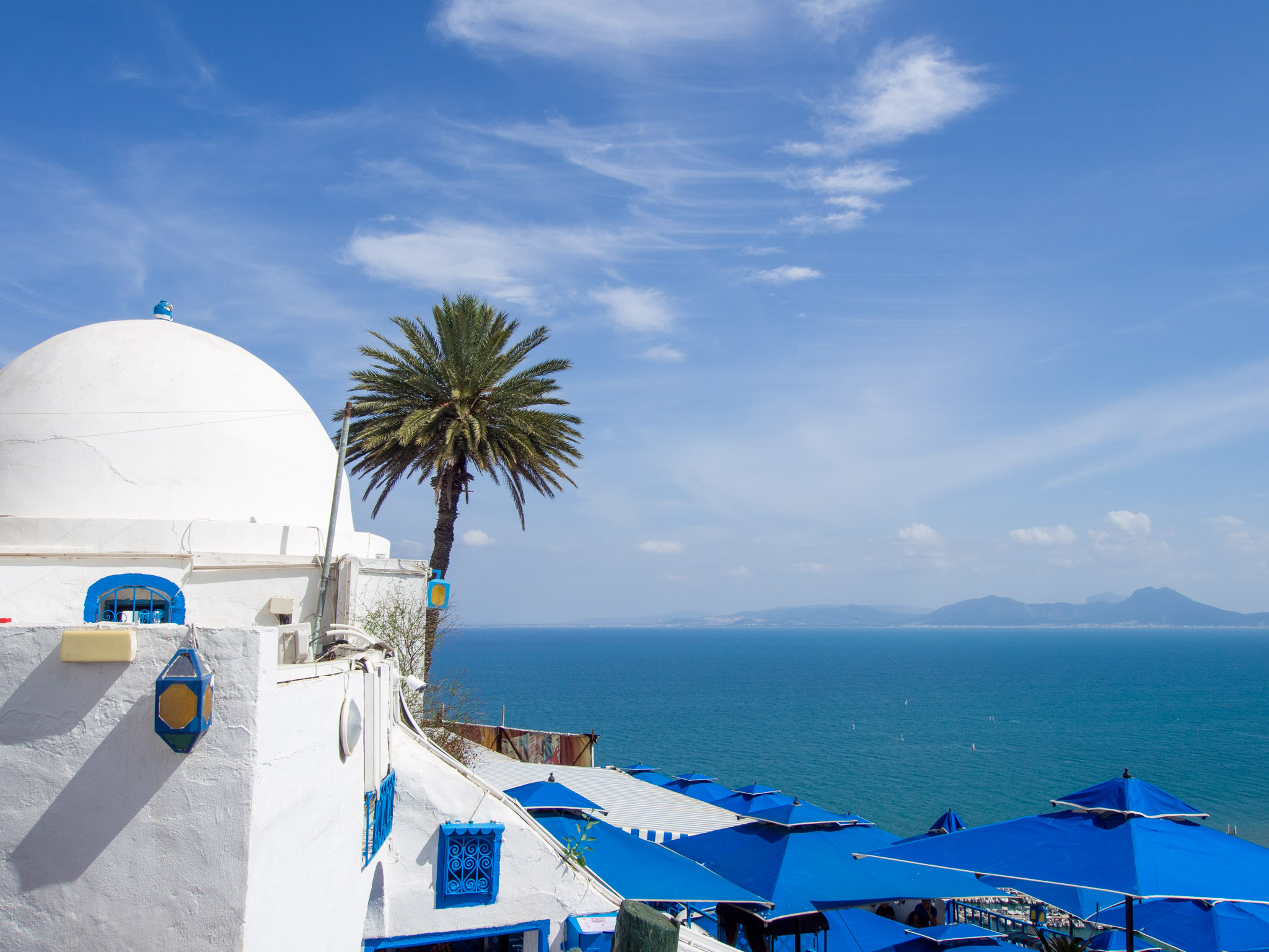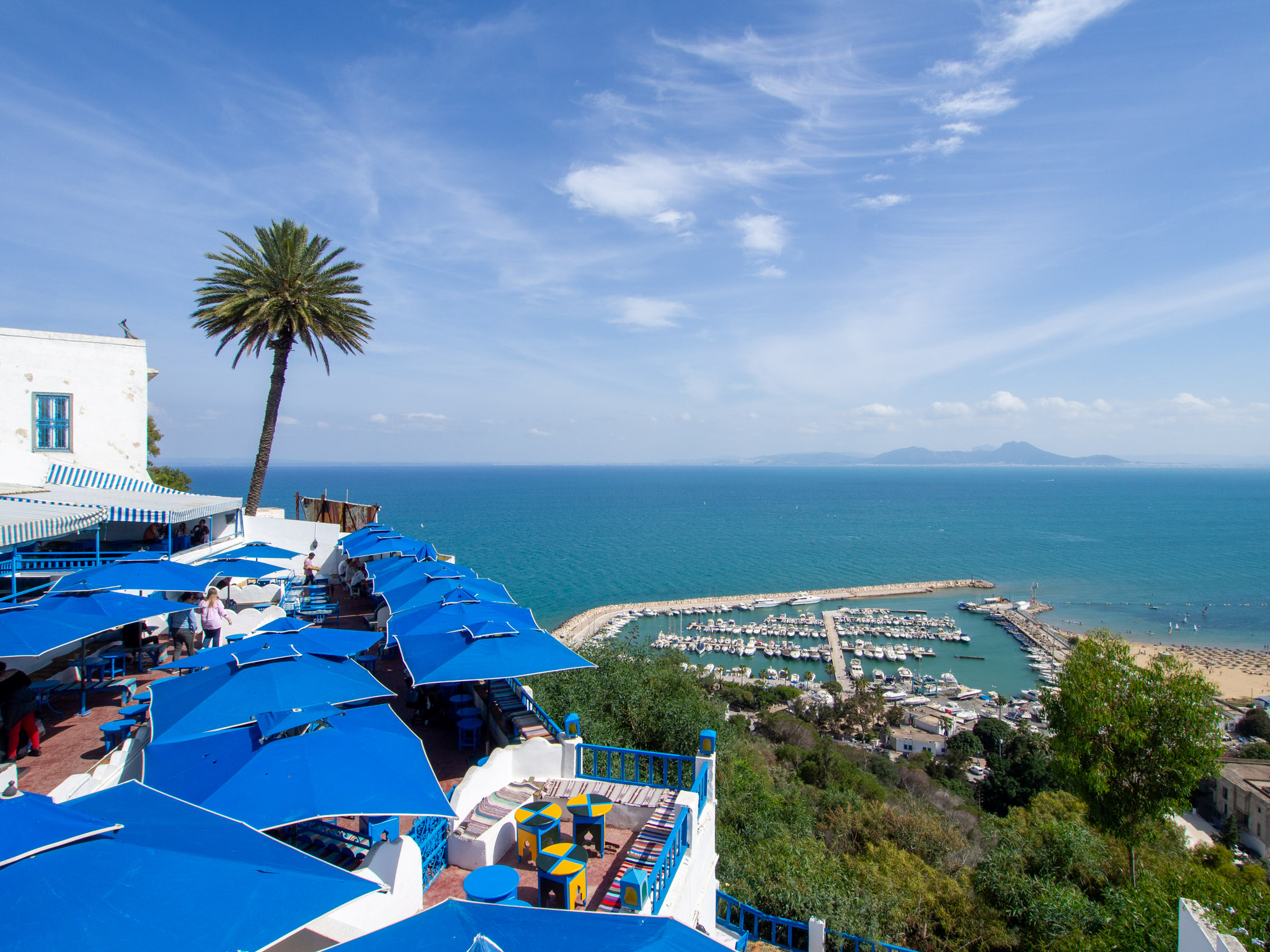 Sans doute le village le plus charmant de la région de Tunis avec ses maisons peintes en blanc et ses ruelles pavées fleuries. Sidi Bou Said est édifié sur une colline qui surplombe la Méditerranée offrant des vues époustouflantes sur la grande bleue.