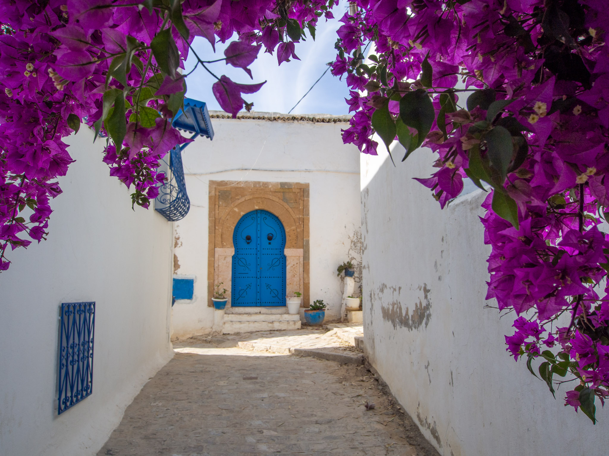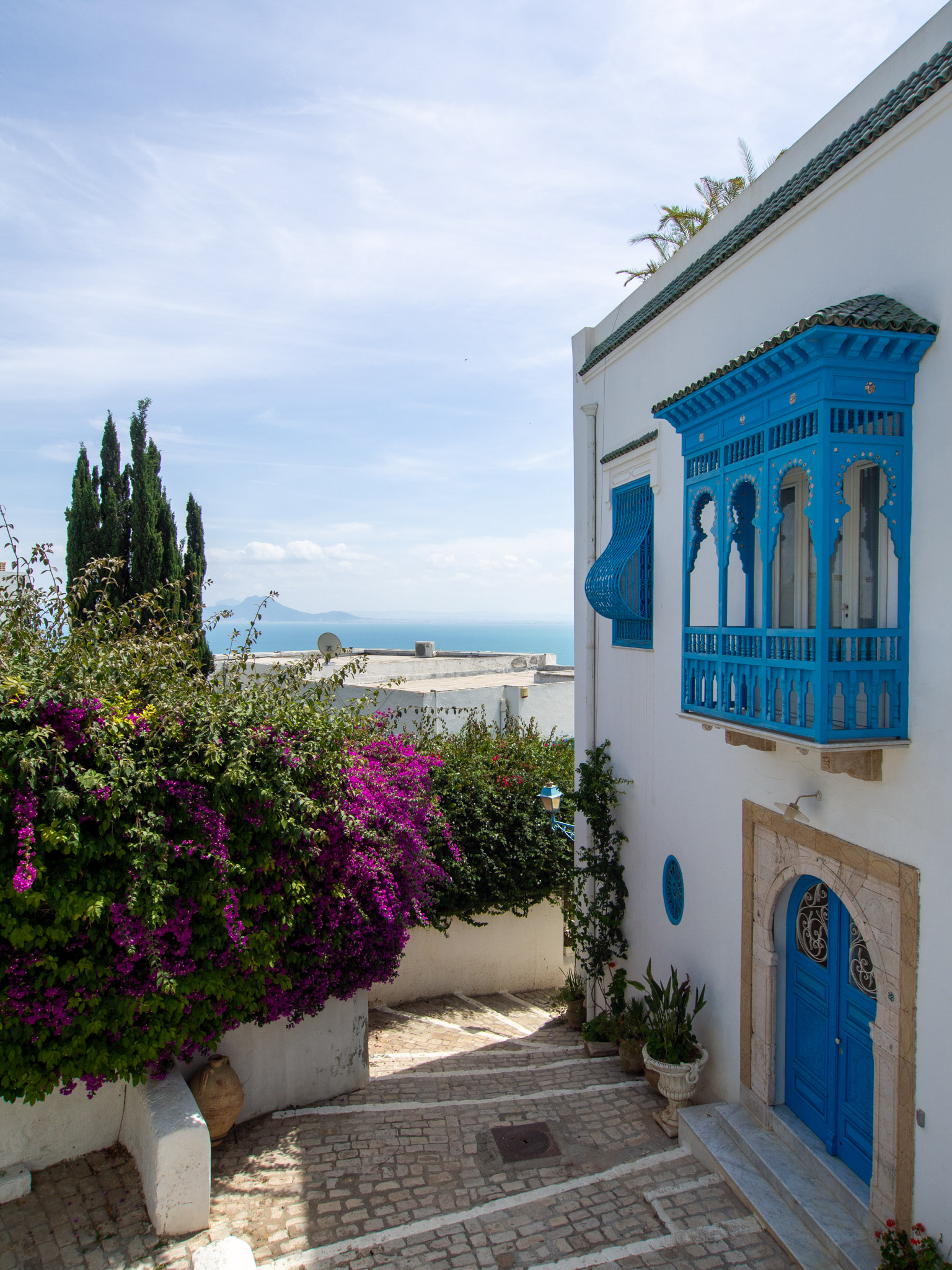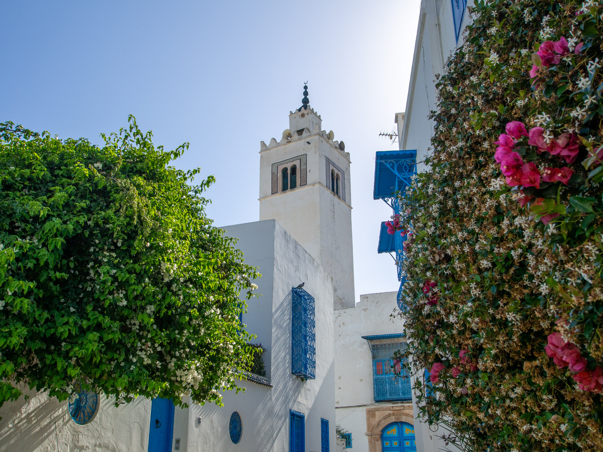Sans doute le village le plus charmant de la région de Tunis avec ses maisons peintes en blanc et ses ruelles pavées fleuries. Sidi Bou Said est édifié sur une colline qui surplombe la Méditerranée offrant des vues époustouflantes sur la grande bleue.