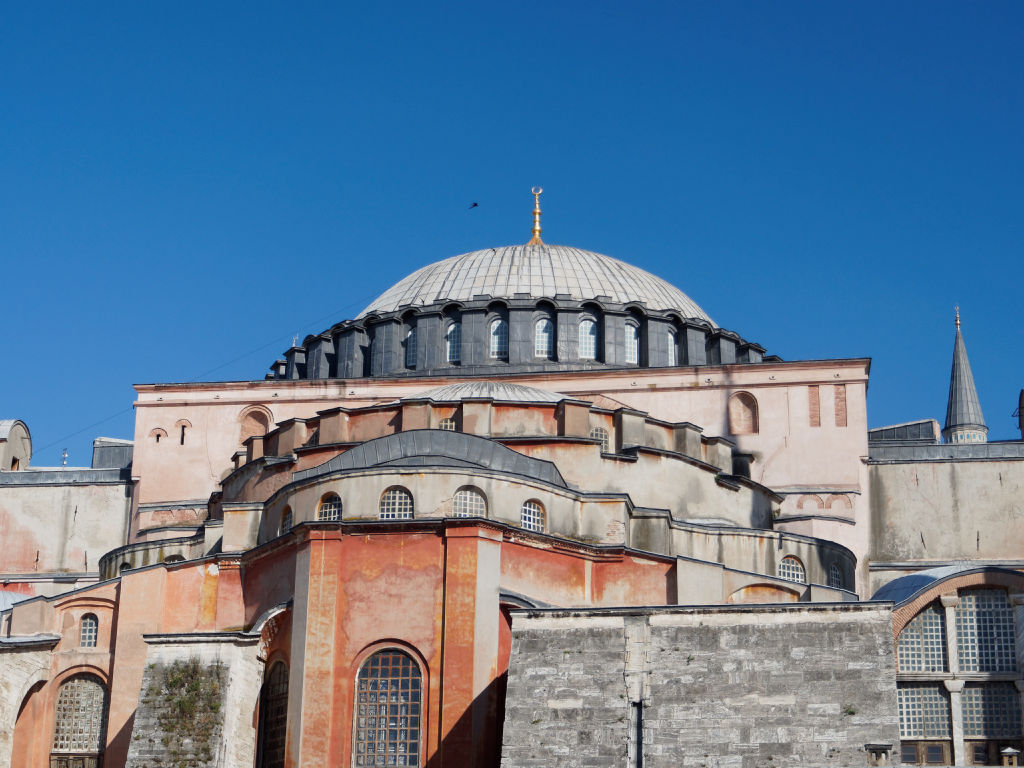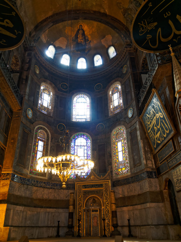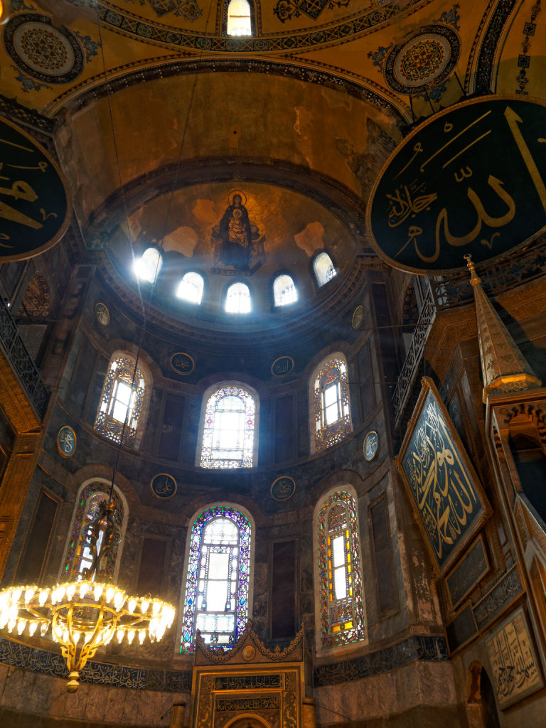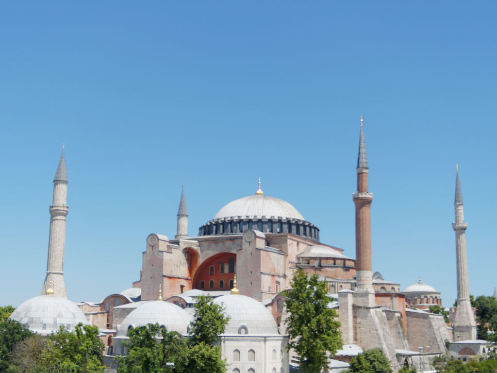La Basilique Saint Sophie est joyau de l’architecture byzantine qui avait été convertie en mosquée après la prise de Constantinople par les Ottomans musulmans et la chute finale de l’Empire Romain d’Orient, près de 1000 ans après la chute de Rome. Ensuite, avec l’ascension d’Atatürk à la tête de la Turquie moderne, faisant suite à la chute de l’Empire Ottoman cette fois suite à la première guerre mondiale, ce symbole de la ville avait été sécularisé et transformé en musée (Edit 2020 : en Juillet 2020, le président turc Erdogan a validé la conversion de ce monument en mosquée).