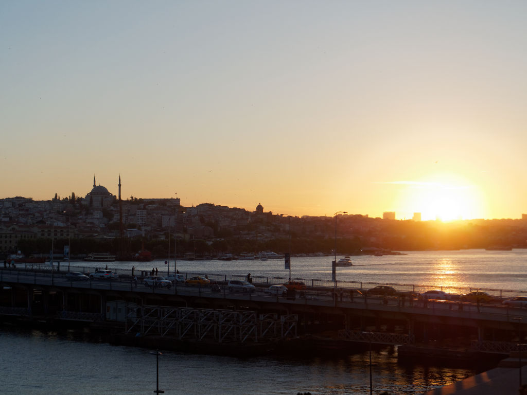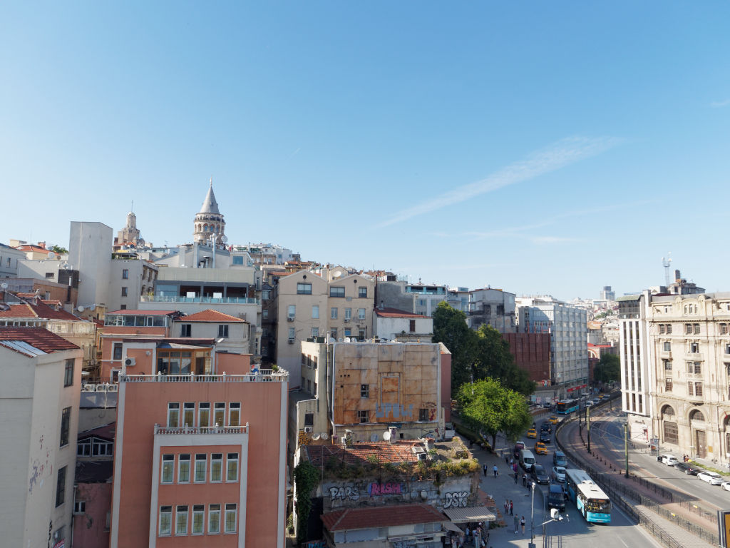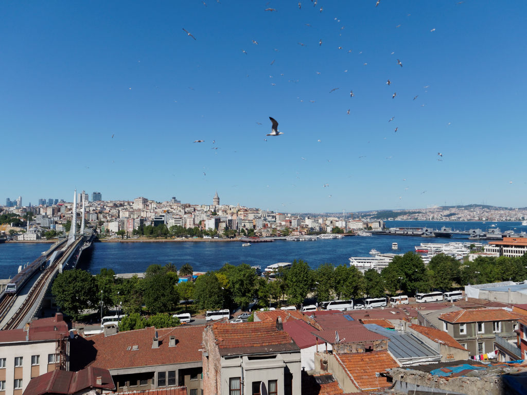 Nous arrivons aux aurores à Istanbul depuis Shanghai, le vol a été très agréable sur la compagnie Turkish Airlines. Il n'y a rien à redire sur le service, avec un départ de Chine à minuit, on arrive à 5h heure locale. Nous prenons un taxi directement jusqu’à notre hôtel, au bord du pont à proximité de Galata. La ville s'éveille à peine. Le quartier est dominé par une grande tour circulaire, la Tour Galata donc, et une place en contrebas avec le tramway qui s'arrête ici.