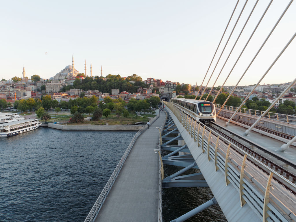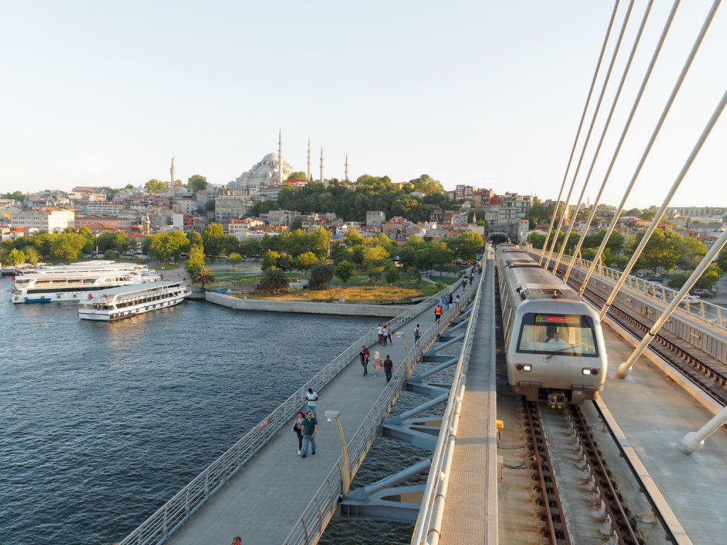 Le nouveau métro qui relie les deux rives, un superbe endroit pour profiter de la vue au coucher de soleil.