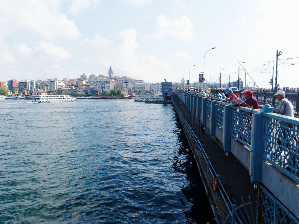 Le pont avec les pêcheurs, les minarets, le palais du sultan, le bruit de la ville, et ce premier café turc sur cette terrasse ensoleillée. Mais pas le temps de se reposer, on repart directement pour explorer Istanbul ! On traverse le pont de Galata pour monter la colline en direction de Sainte Sophie.