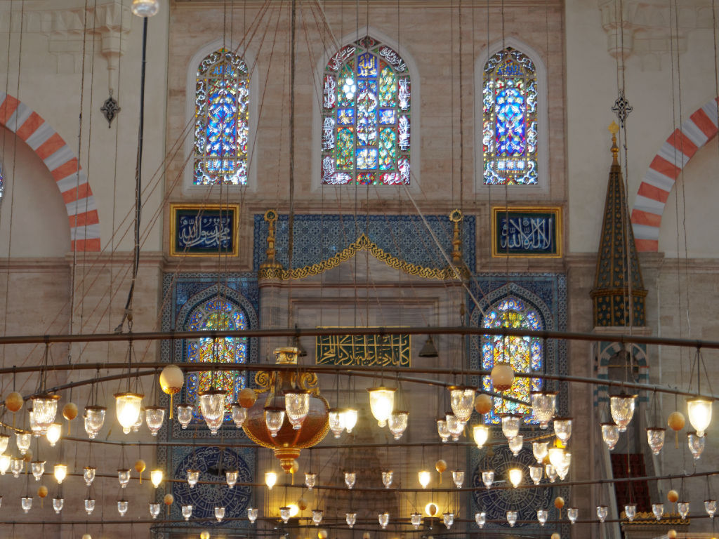 Les grands chandeliers caractéristiques des mosquées