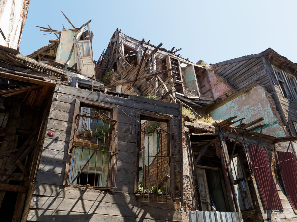Après que le soleil soit passé complétement de l’autre côté, il fait un peu frais sur le pont, le vent s’est levé, nous continuons notre promenade en passant dans un quartier à l’abandon.