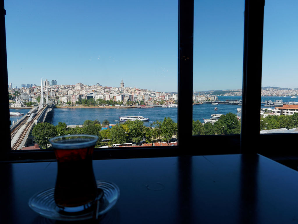 Depuis la terrasse, la vue sur Istanbul est parfaite.