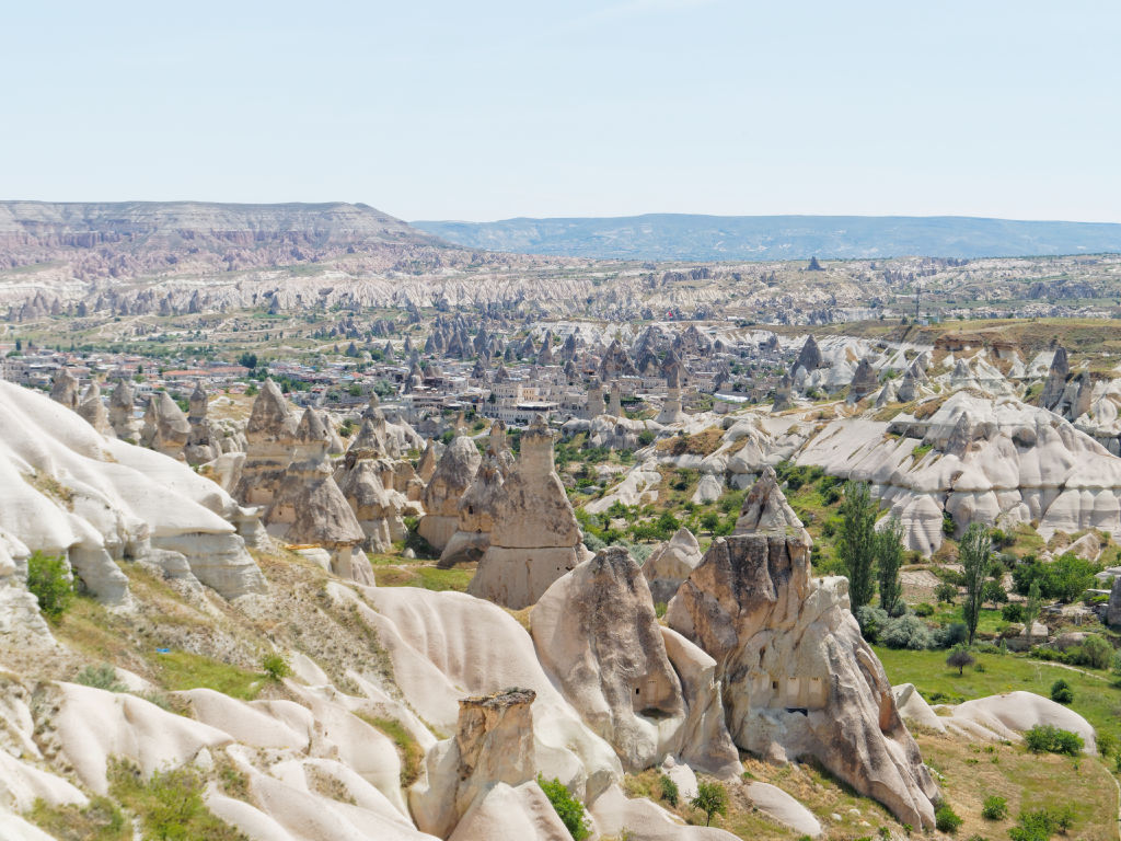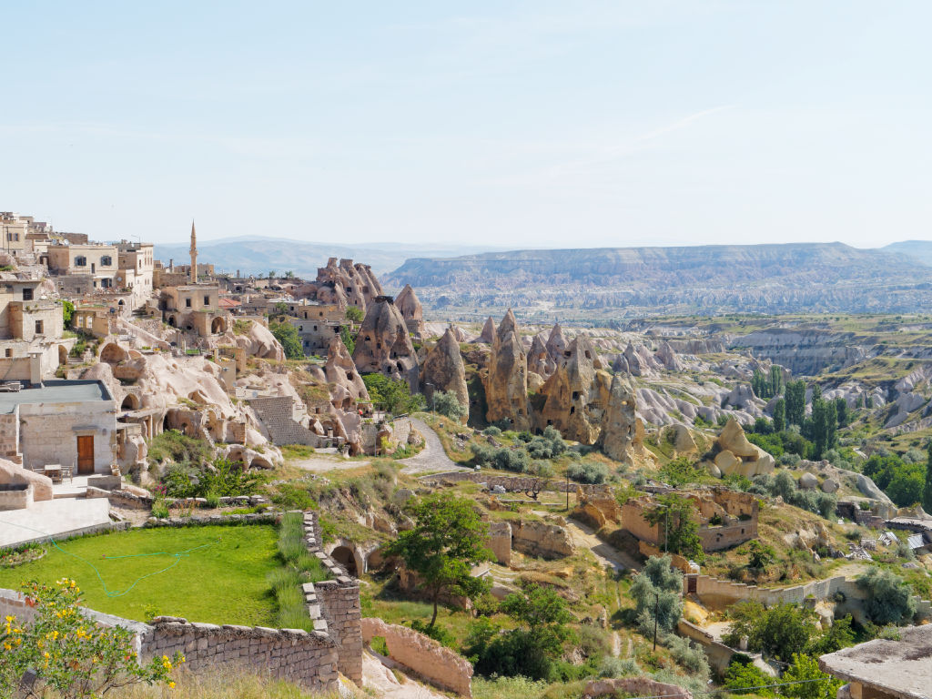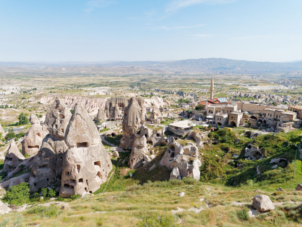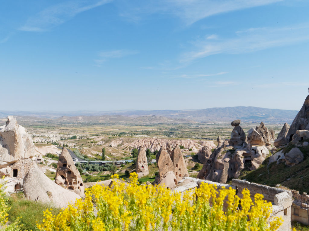 Notre avion vole en direction de l’aéroport de Nevsehir en plein cœur de la région touristique de Cappadoce. Le vol nous semble très court, peut-être une heure pendant laquelle nous survolons un paysage désertique. L’agence de location de voiture se trouve directement à l’aéroport, le prix de la location est vraiment abordable et permet une liberté de mouvement appréciable dans la campagne cappadocienne. On rejoint notre hôtel qui se trouve dans le village de Uchisar vers Goreme au cœur de ce paysage minéral incroyable typique de la région qui attire tant les touristes.