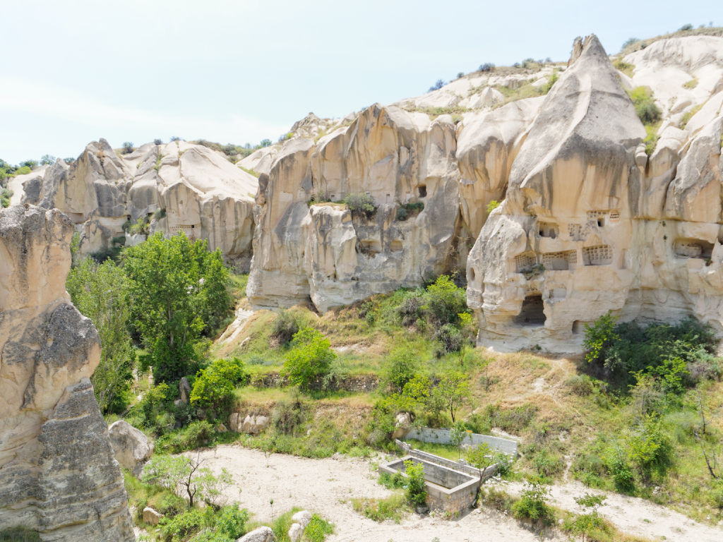 Après cette pause bien méritée, nous reprenons la route et allons dans la XXXX, qui se trouve de l’autre côté de Goreme. On arrive sur le parking de cette zone ouverte aux touristes et comme d’habitude, nous sommes les seuls à être venus ici. On ne va pas s’en plaindre même si le parc est immense et mérite vraiment le détour. Le long du chemin, on découvre une véritable ville creusée dans la roche, avec des églises, mais aussi pleins d’autres grottes creusés pour tous les usages. Ici on peut se permettre d’imaginer la vie rudimentaire des habitants.