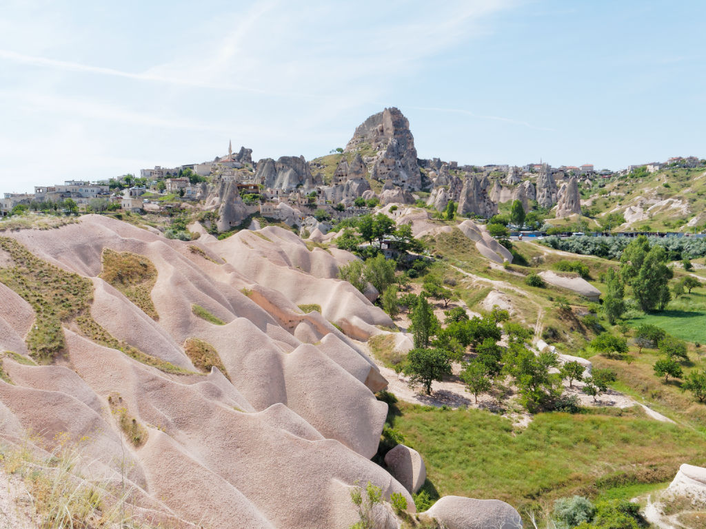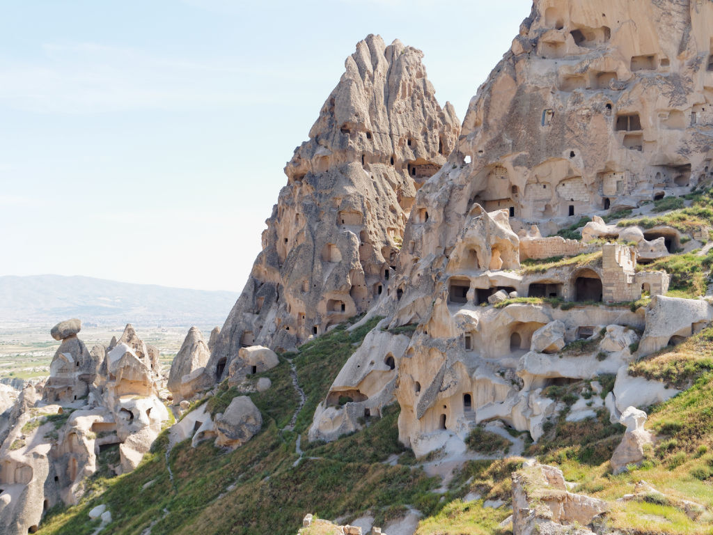 Ce village est en fait édifié face à une coulée de lave séchée à la roche tendre dans lesquels les habitants ont creusé des habitations. Vu de loin, le rocher d’Uchisar ressemblerait presque à un nid de guêpe.