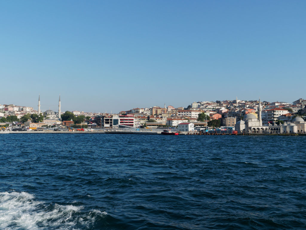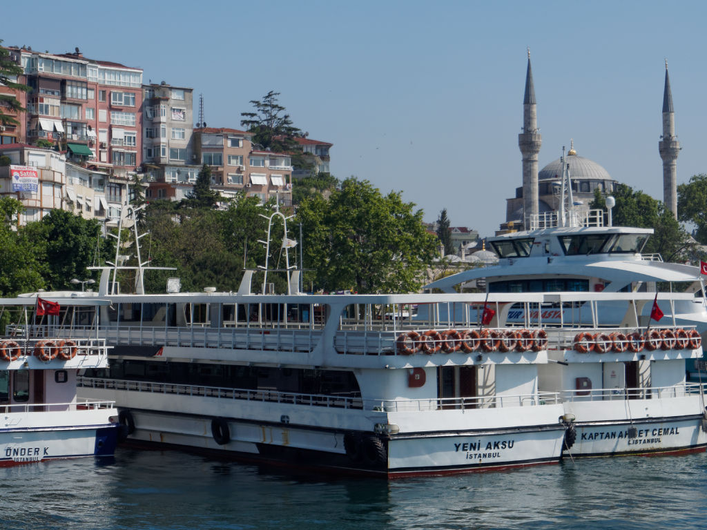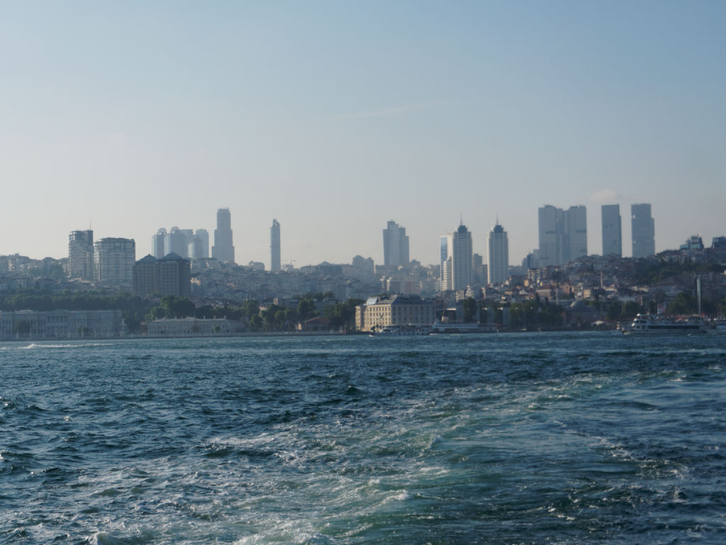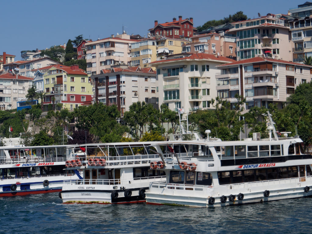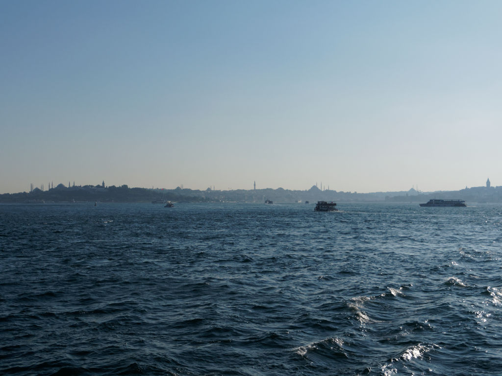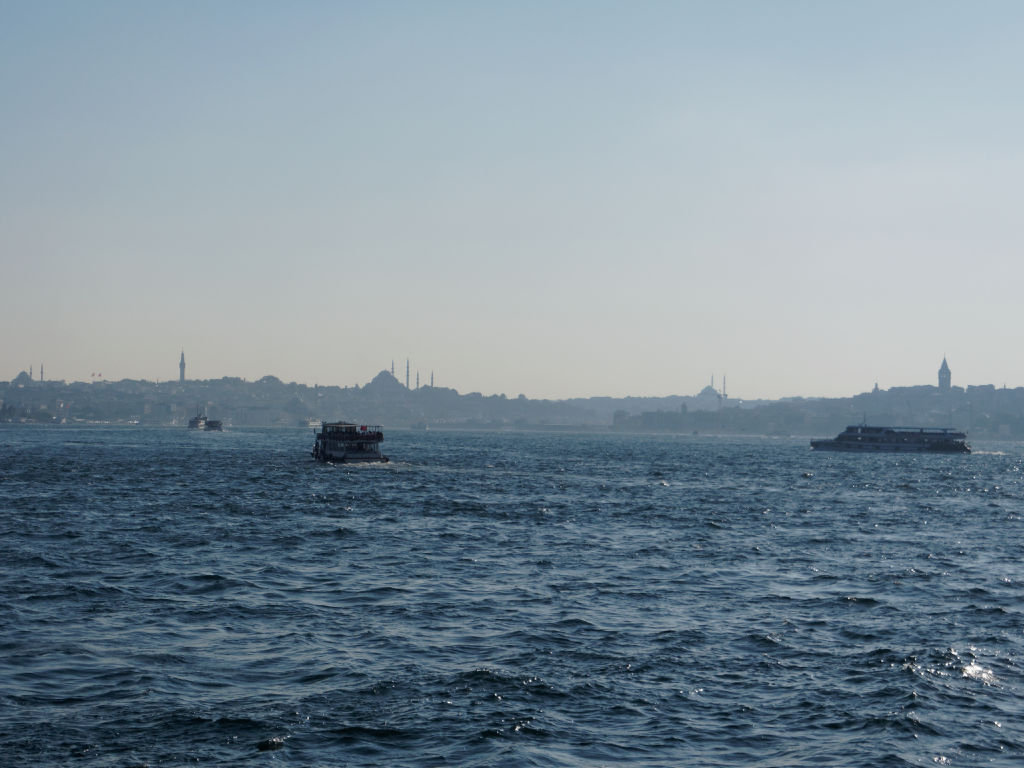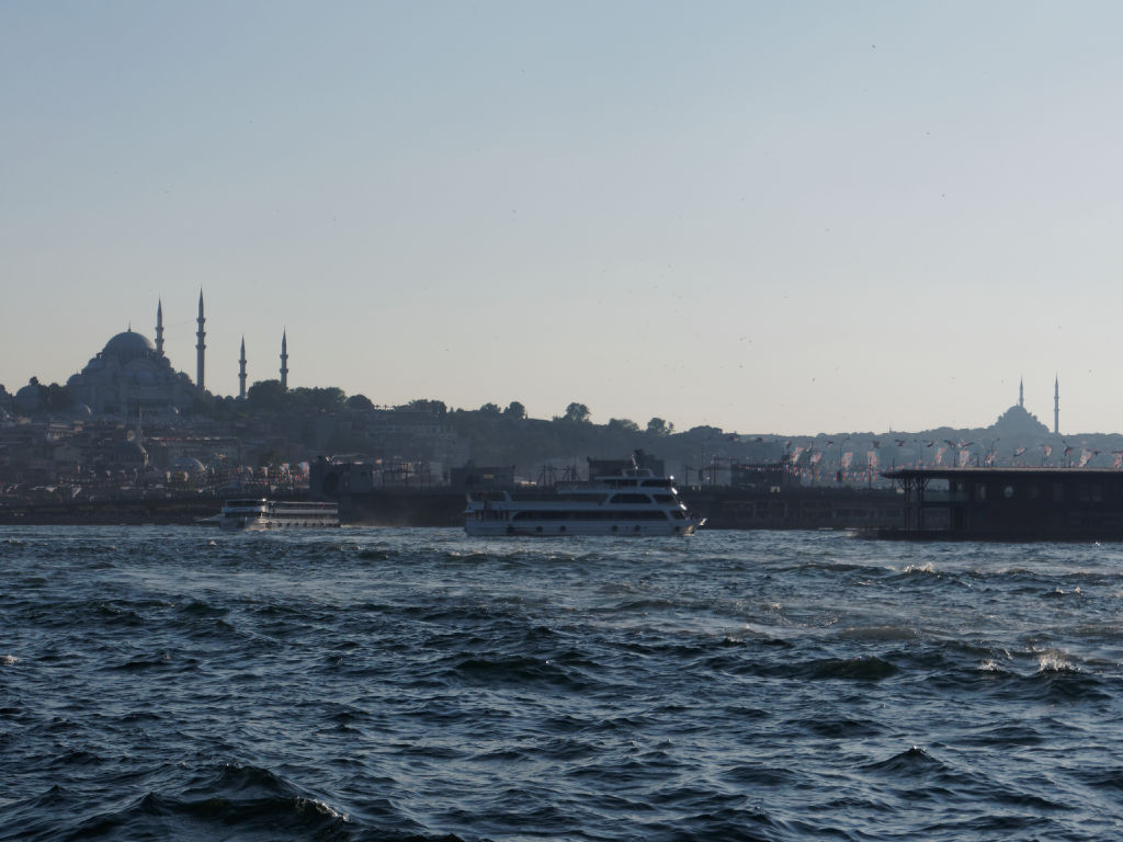 En provenance de Cappadoce, l'avion atterrit en fin de journée à Istanbul, les formalités sont rapides et on saute dans un taxi en direction de Galata et retrouvons nos bagages à l’hôtel. Il nous reste une dernière journée pleine à Istanbul avant de continuer notre itinéraire vers Genève. On préfère rester dans le quartier ce soir avant d'entamer une dernière journée pleine à Istanbul. Ce matin, après le petit déjeuner rituel, nous partons à la découverte de l’autre rive d’Istanbul. Pour cela nous prenons le bateau pour la traversée quasiment aux pieds de notre immeuble. Il y a énormément de bateaux qui font la liaison, mais c'est une cohue bien organisée finalement.