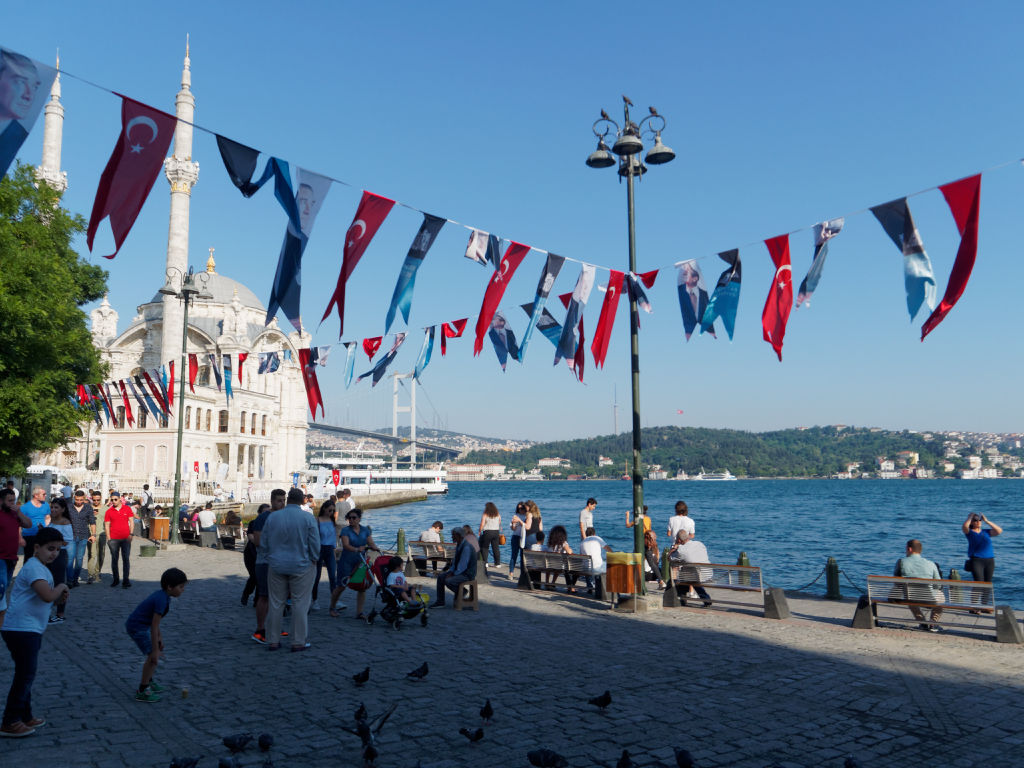 Puis on reprend le bateau en direction de la Mosquée Ortaköy qui est une des plus photogéniques d’Istanbul. Elle est posée au bord de l’eau, sous le grand pont qui relie les deux continents. Le quartier est très agréable, il y a beaucoup d’animation ici.