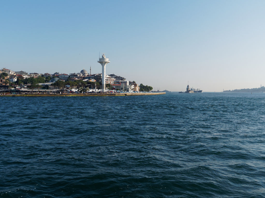 Nous arrivons dans une partie d’Istanbul qui nous semble un peu moins développée et nous marchons le long du bord de mer jusqu’à un petit bar qui s’est installée face à une petite île avec un phare. On s’installe et prend comme à notre habitude un café turc, avec vue sur la baie on est aux premiers loges.