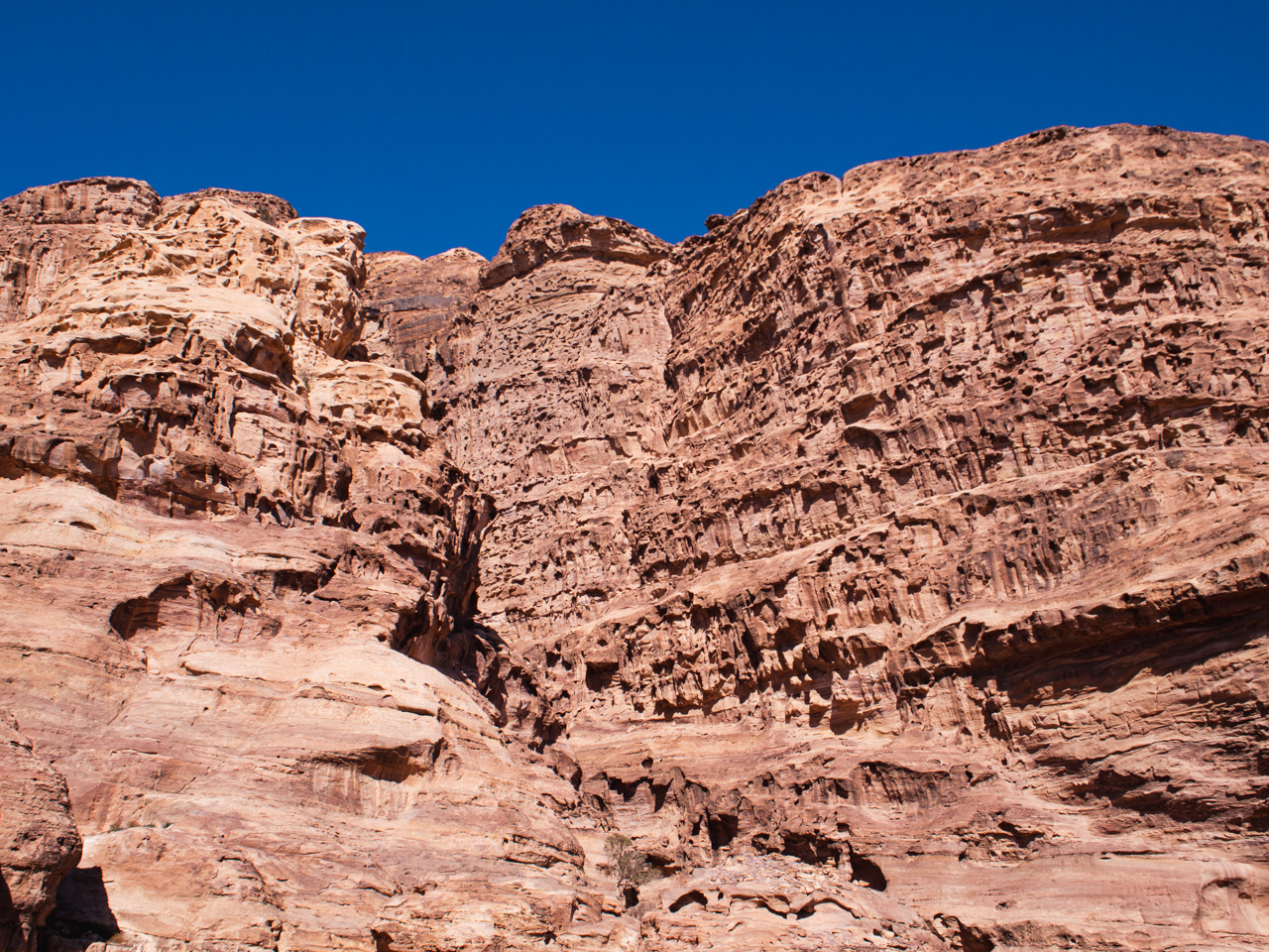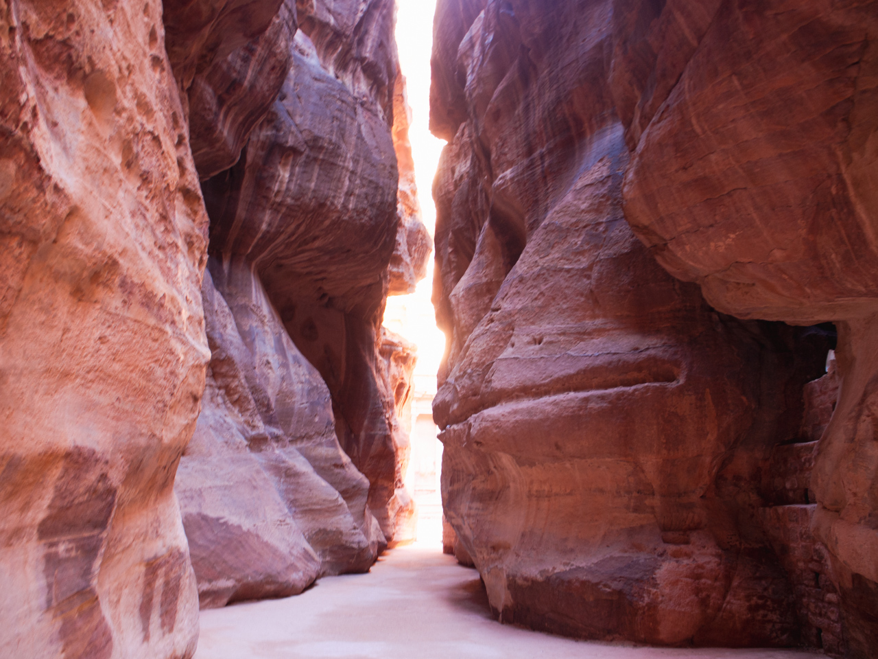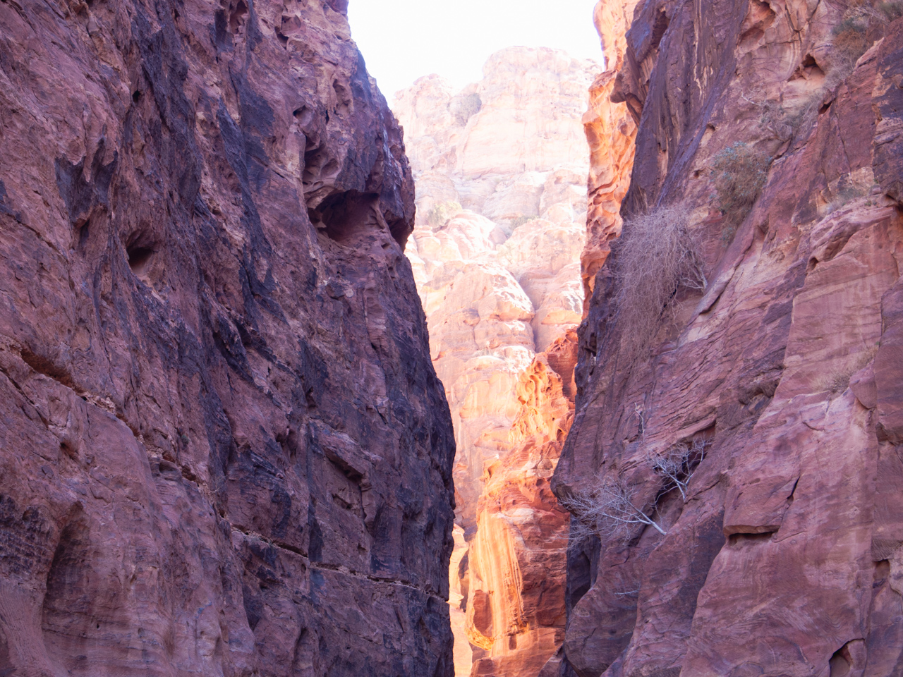 Le Siq est un long canyon profond plus ou moins large par endroits, il faut une quinzaine de minutes pour le traverser. On comprend parfaitement l’aspect défensif idéal du Siq, c’est très difficile pour une armée d’envahisseurs de pénétrer dans ce terrain étroit, mais pour nous simple touriste nous sommes dans la contemplation des différentes couleurs de roches.