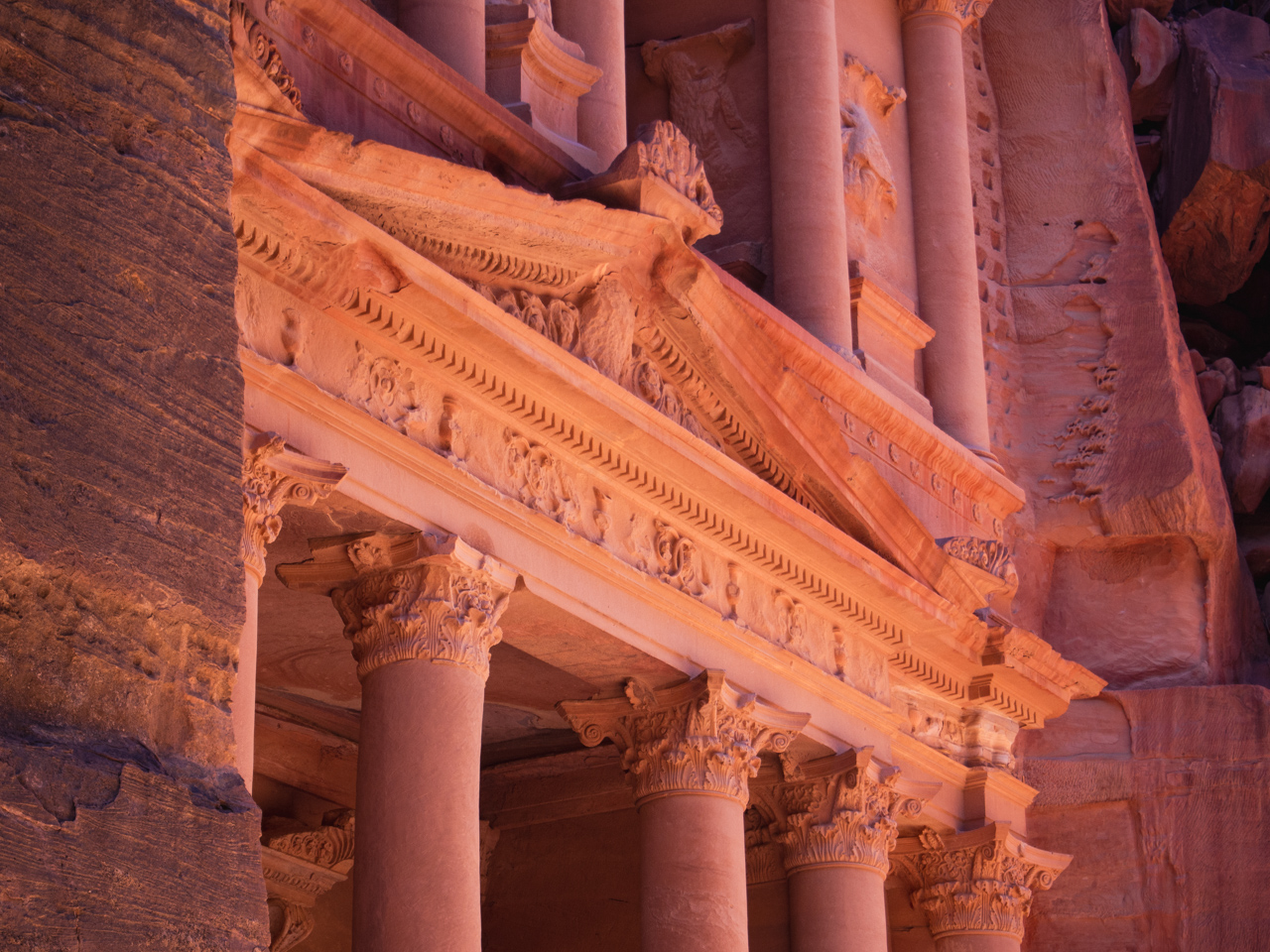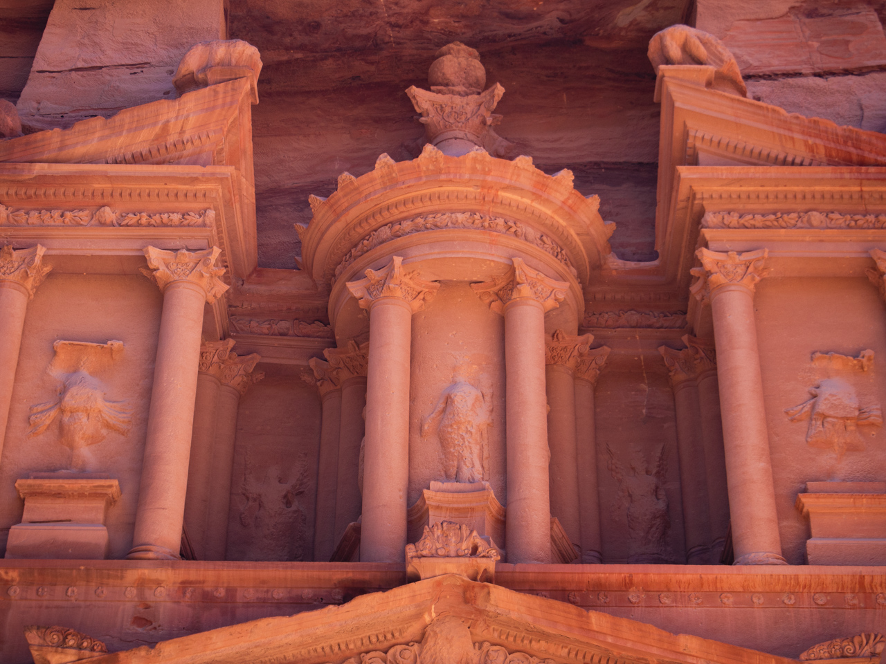 Sa façade est inspiré de l’architecture grecque, et les détails sont d’une grande finesse. Le matin, le soleil vient éclairer le trésor révélant sa couleur rose.