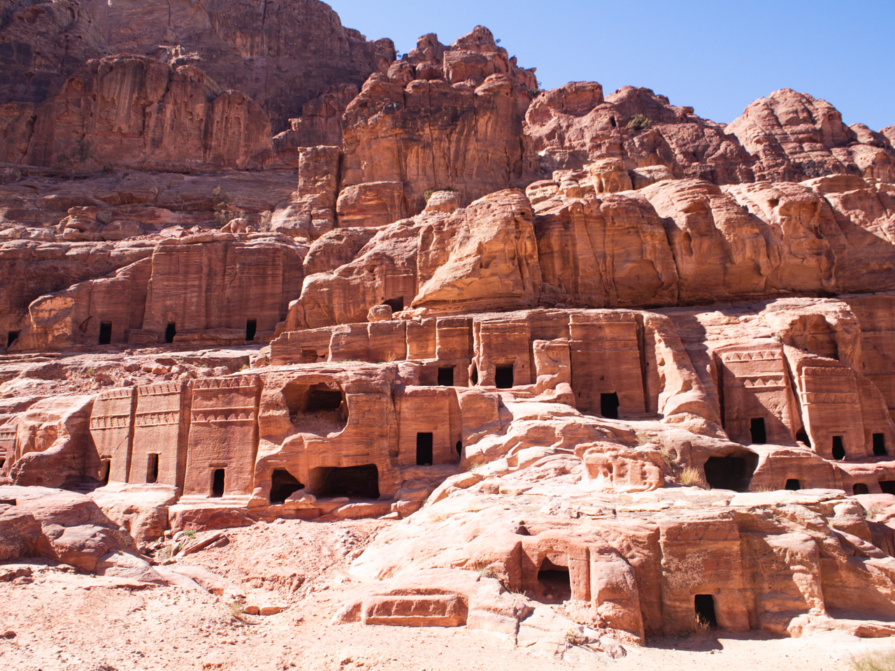 Les tombes royales faisaient face à la cité. De grandes façades creusées dans la paroi face au soleil couchant. Ici aussi la finesse du travail est impressionnante.