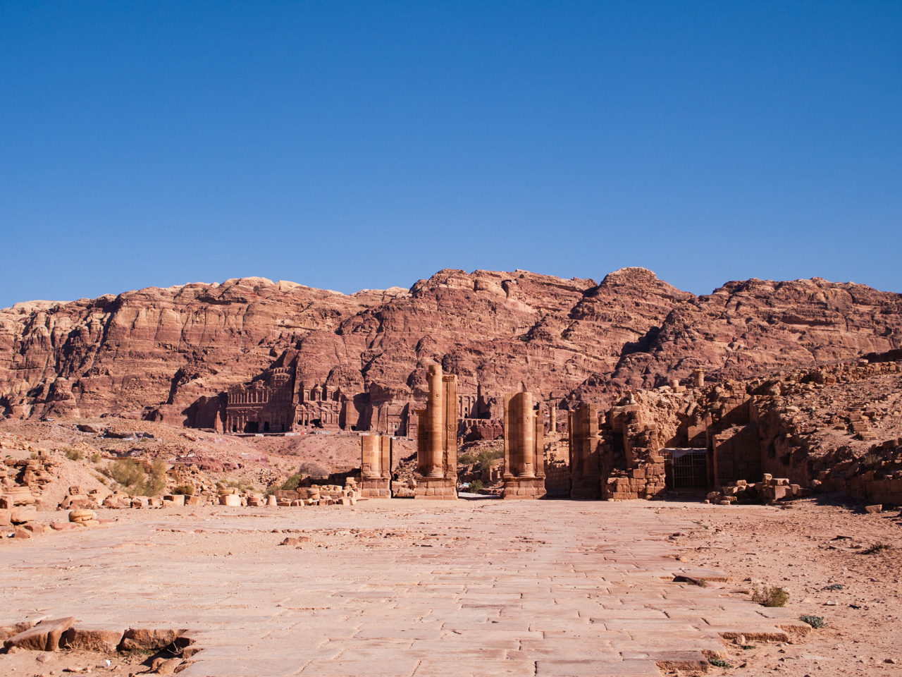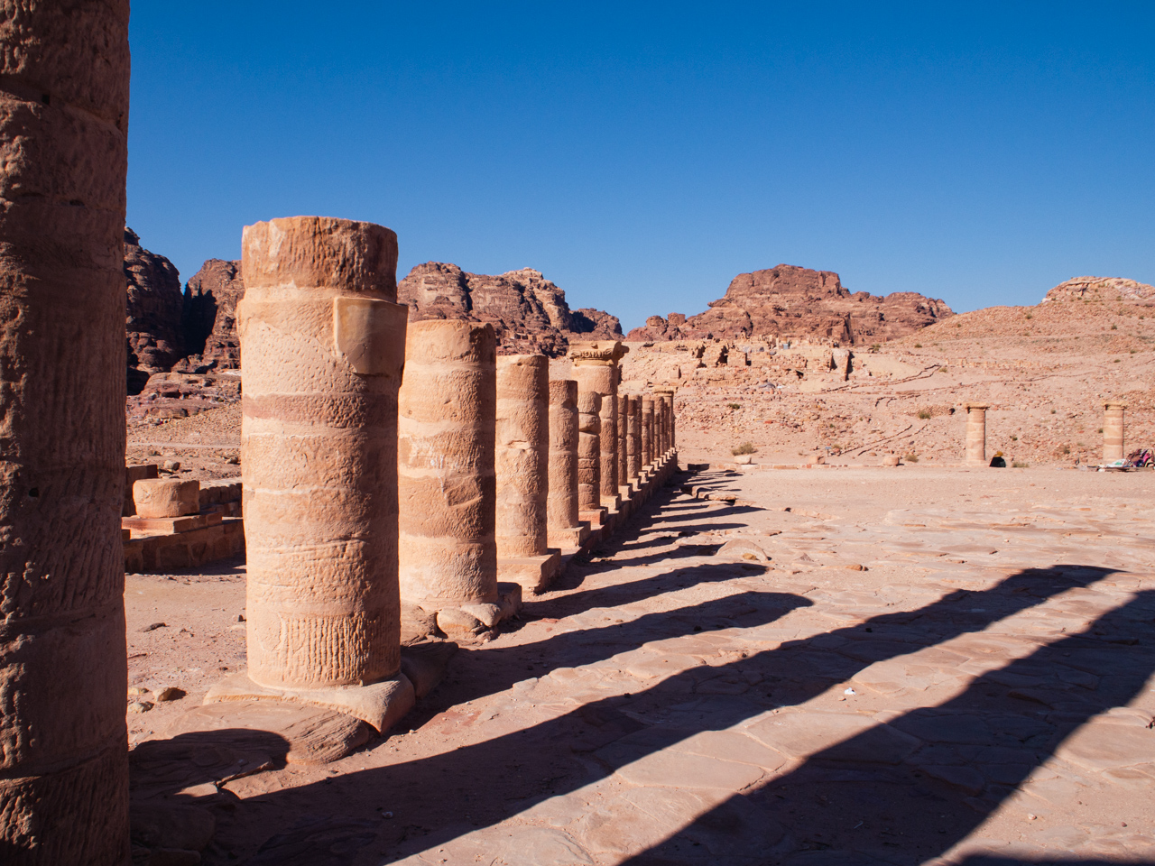 Au coeur de Pétra dans une zone moins escarpée se trouvait la capitale des Nabatéens. Celle-ci était alimentée en eau par un système de canaux qui passaient par le Siq. A son apogée, c’était une cité florissante. On pouvait y trouver tout ce que Rome faisait de grandiose, un grand palais, une fontaine romaine, un forum avec de nombreuses colonnades. Malheureusement cette partie de Pétra a subi les ravages de la nature, un tremblement de terre l’a grandement abimé et les archéologues doivent remettre les pièces dans le bon ordre petit à petit.